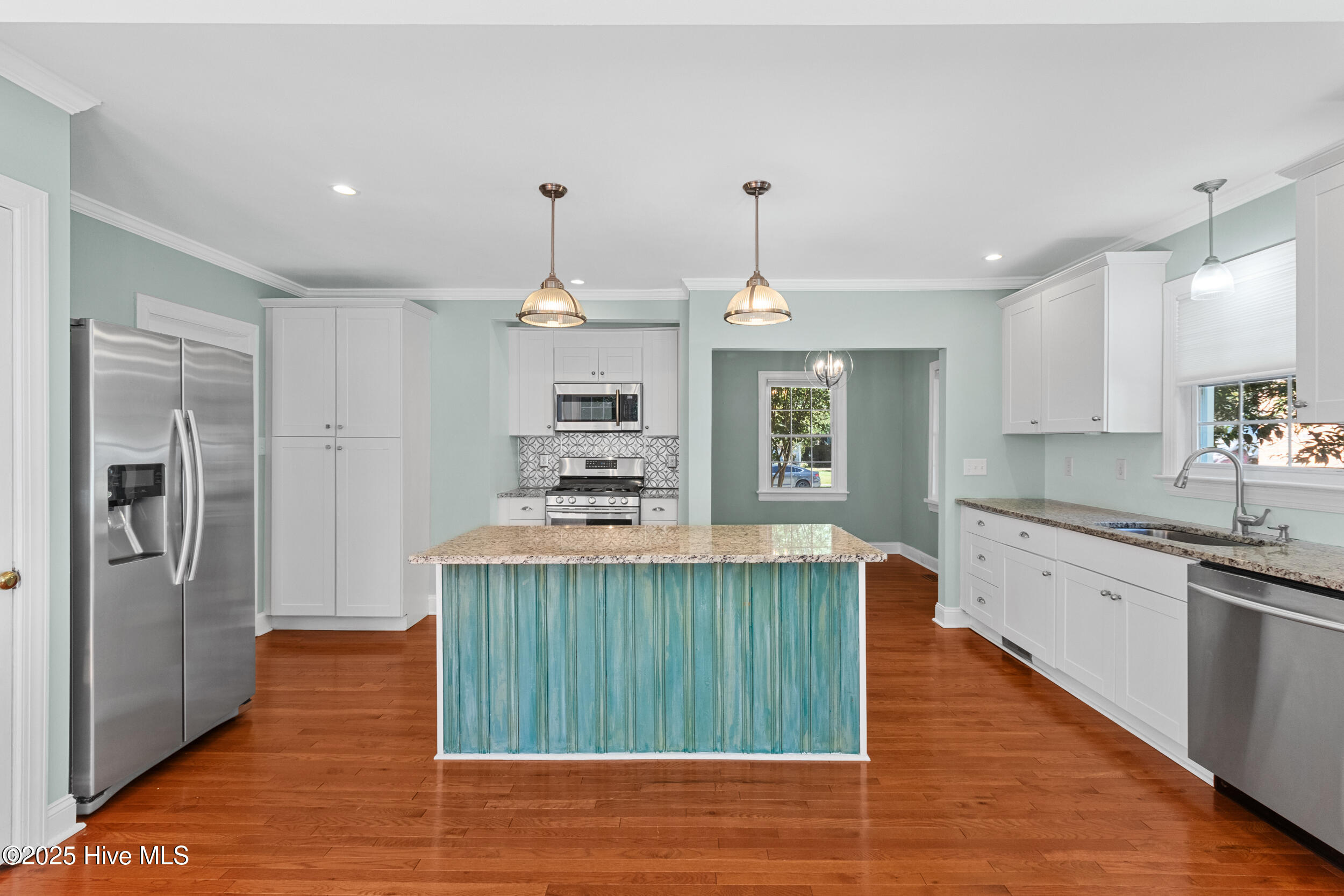 Beautifully updated cottage is just minutes from downtown Wilmington, convenient to Forest Hills, Carolina Place, Soda Pop District, and Cargo District. This charming home features an open floor plan, a dream kitchen with granite countertops, stainless steel appliances, and gas stove, plus a bright sunroom overlooking the lush backyard. Thoughtfully maintained and move-in ready with modern updates, off-street parking, no HOA, all appliances included with new washer/dryer and a new vapor barrier in the crawlspace. The fully fenced 0.25-acre lot is a gardener's paradise--or a dog's dream! With plenty of room to add a pool, you can create your own backyard oasis. Enjoy peaceful outdoor living and Wilmington charm in a prime location--don't miss this one!