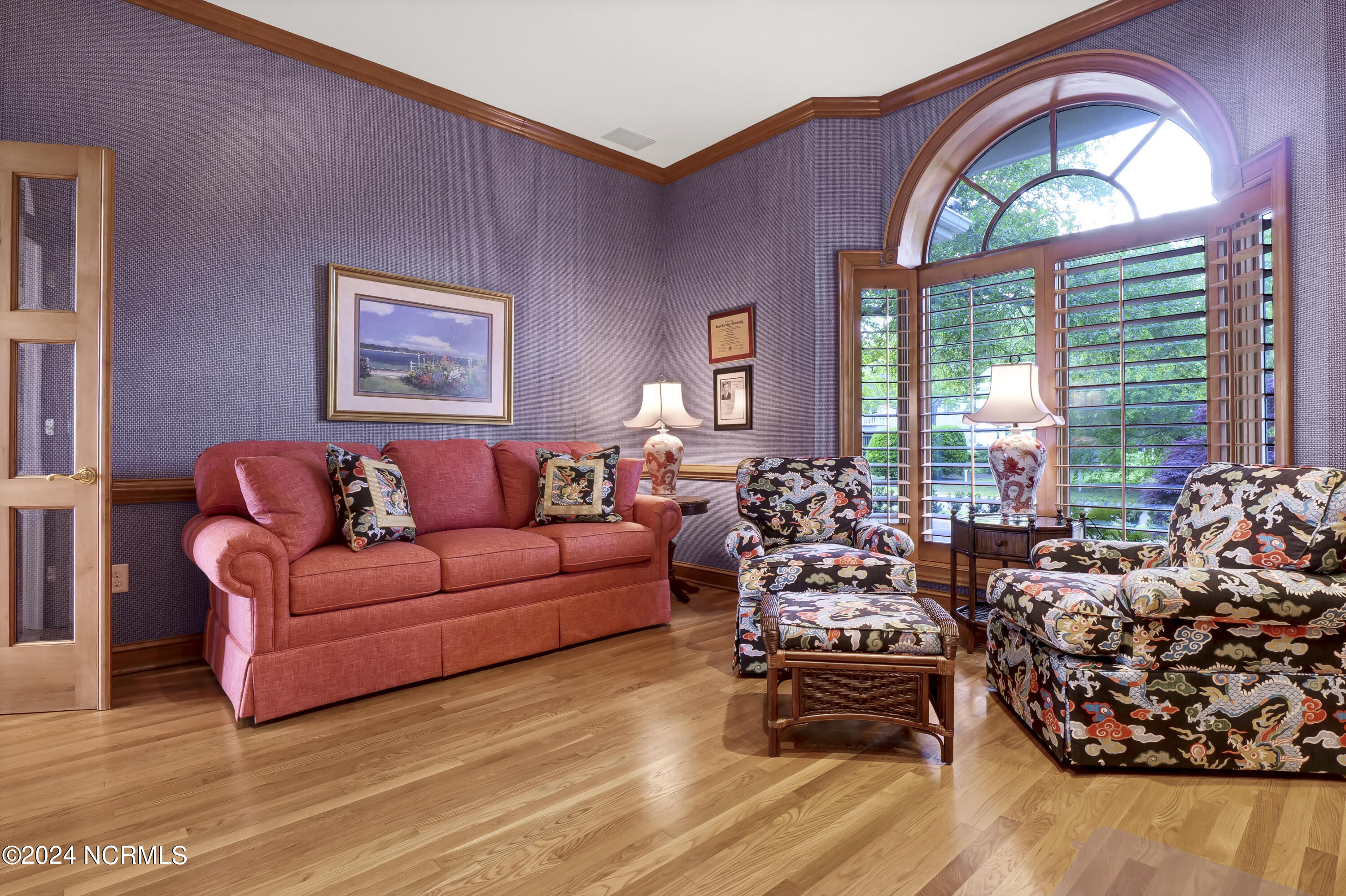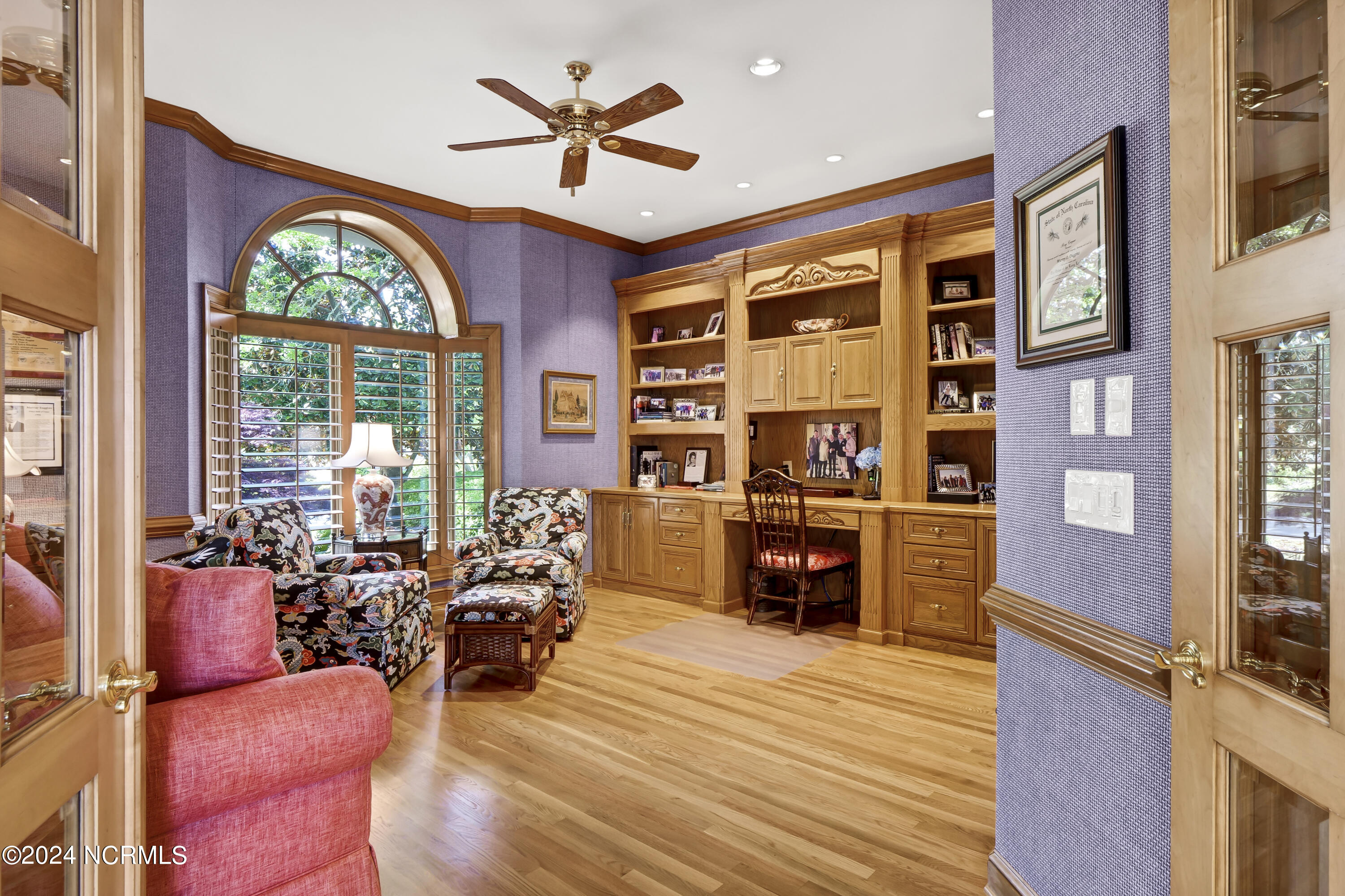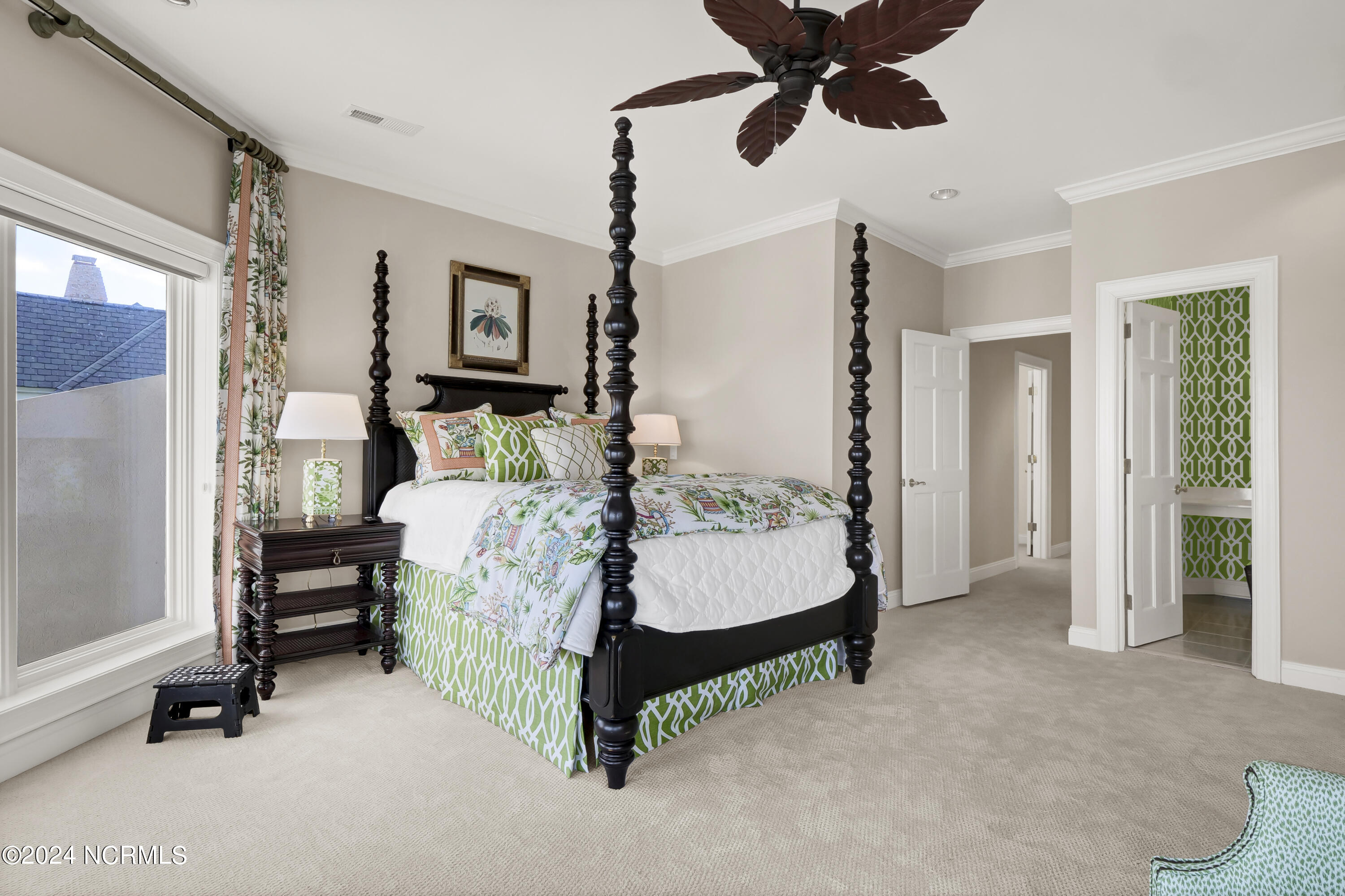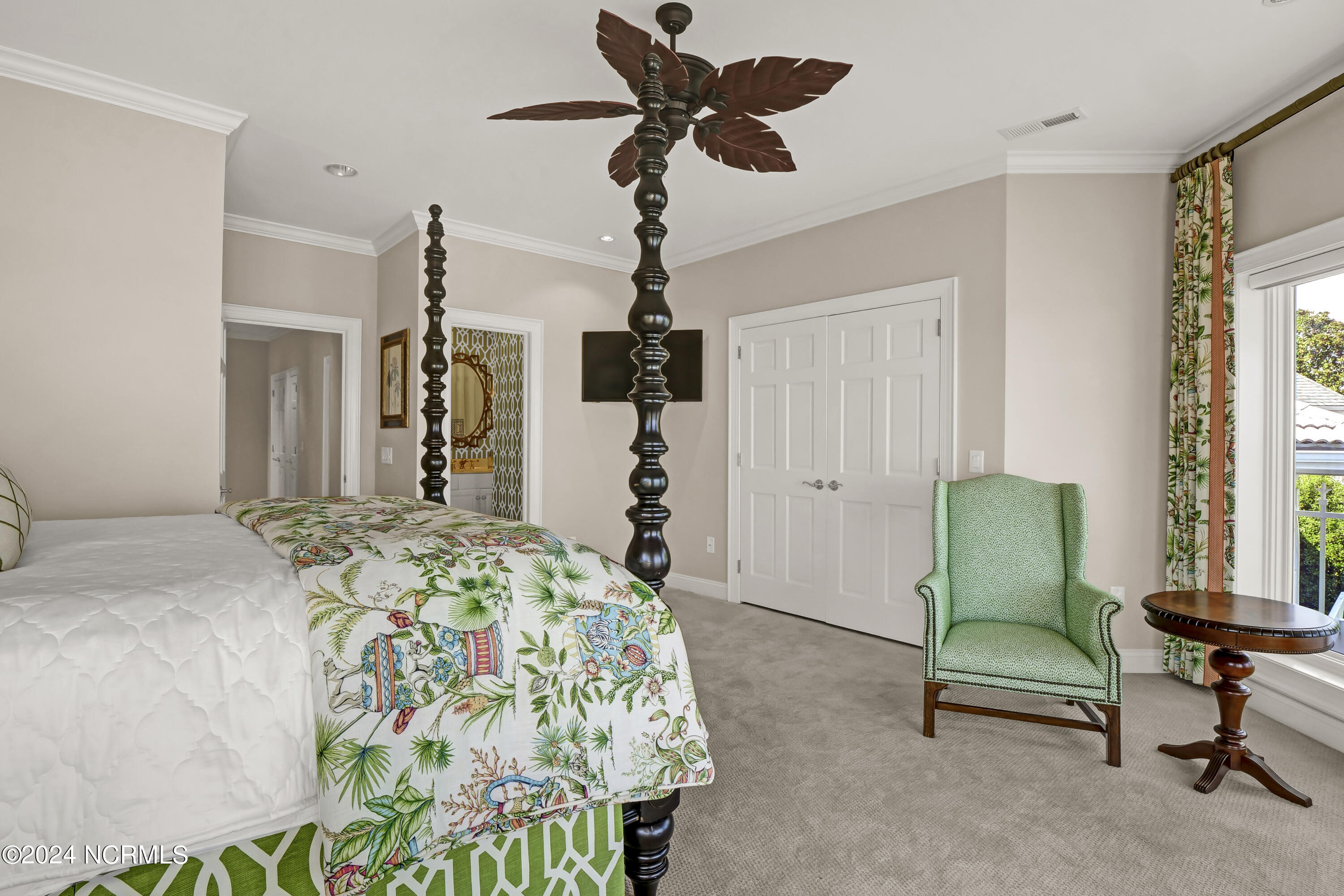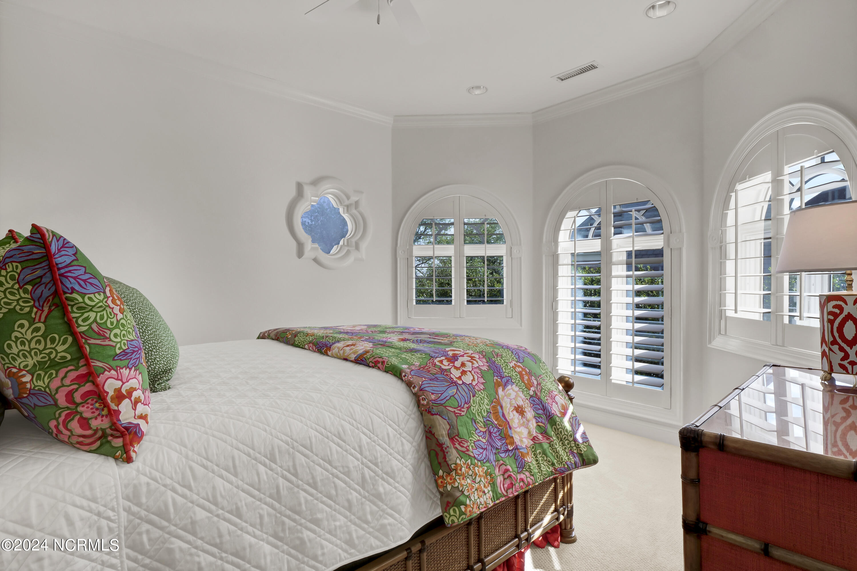 Situated on the Intracoastal Waterway in Landfall, with spectacular views of the ocean and Mason's Inlet, this home is an extraordinary Mediterranean-inspired masterpiece located on Ocean Ridge Drive. The grand entry foyer evokes warmth and luxury with its elegant marble floor, exquisite massive chandelier, and custom wood cathedral ceiling. Curved archways, stately columns, chandelier fixtures, detailed moldings, and gracious arched palladium windows frame the sweeping views of the Intracoastal Waterway, Wrightsville Beach, and Figure 8 Island. Outside, panoramic water views provide the perfect backdrop for outdoor entertaining on the expansive covered porch and patio. The kitchen features an oversized center island and breakfast nook, Thermador gas cooktop, Sub-Zero Designer Series refrigerator, and granite countertops. The kitchen opens up to an inviting sun and sitting room with marble fireplace and large windows overlooking the water views. The formal living great room features a custom wood burning, marble fireplace and walls of two-story palladium windows, a majestic wood cathedral ceiling, and formal dining area overlooking the water views. Entertain your guests from the adjoining full-sized custom bar area with beveled glass shelving, custom stained glass window, sink, cooler, and built-in wine rack. The generous sized main floor owner's suite has a tray ceiling with backlighting, crown molding, and wood-burning marble fireplace flanked by custom built-in cabinets and shelving, double walk-in closets. The marble tile bathroom features designer Sherle Wagner fixtures. Beautiful wallpaper accents the luxury ensuite as well as the two powder rooms and laundry room on the main floor. The three elegant guest rooms upstairs are also complemented with beautiful wall-papered ensuite baths, and one bedroom balcony overlooking water views. The second floor also boasts a beautiful custom walk-in closet and large bonus room.