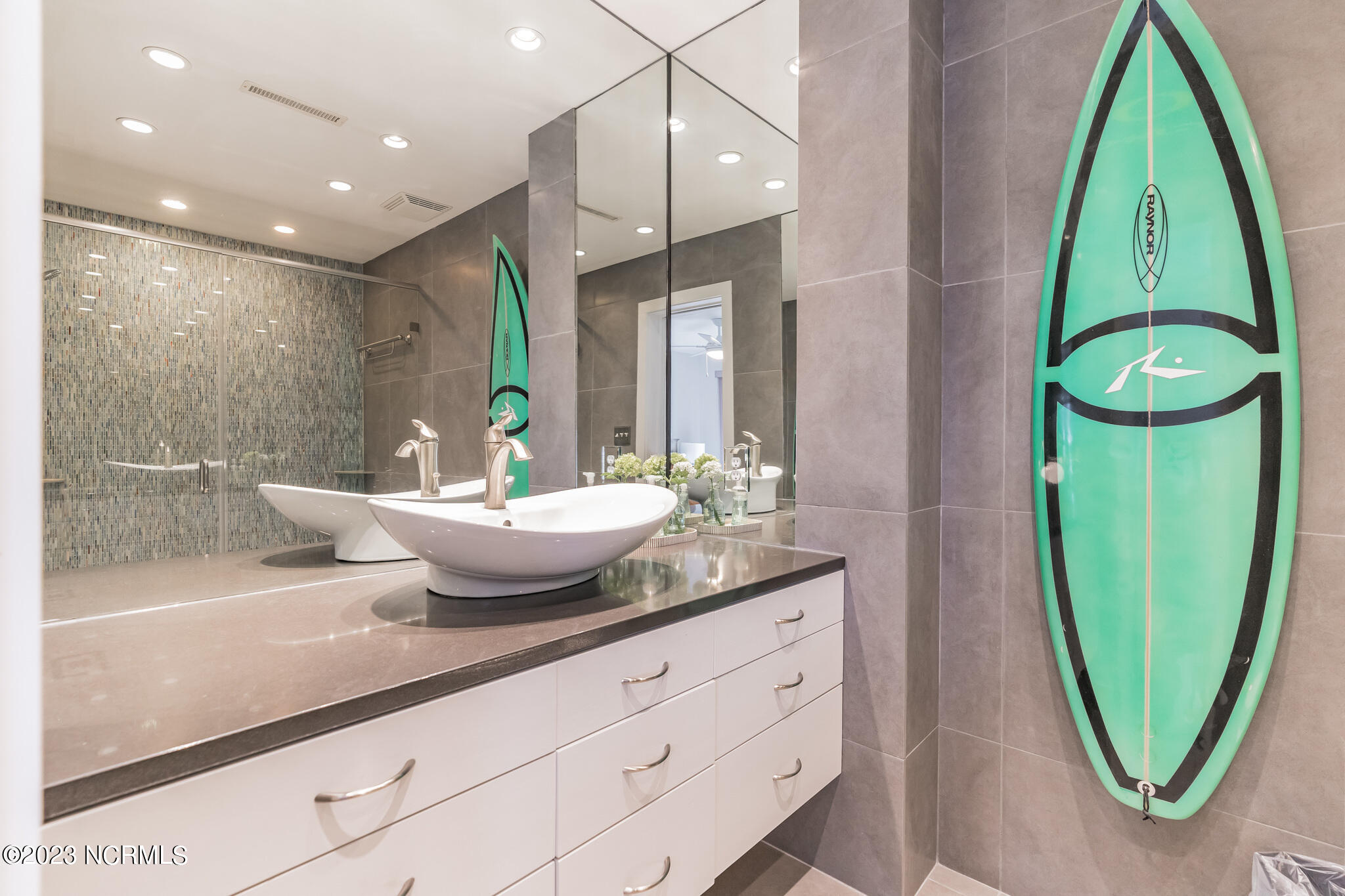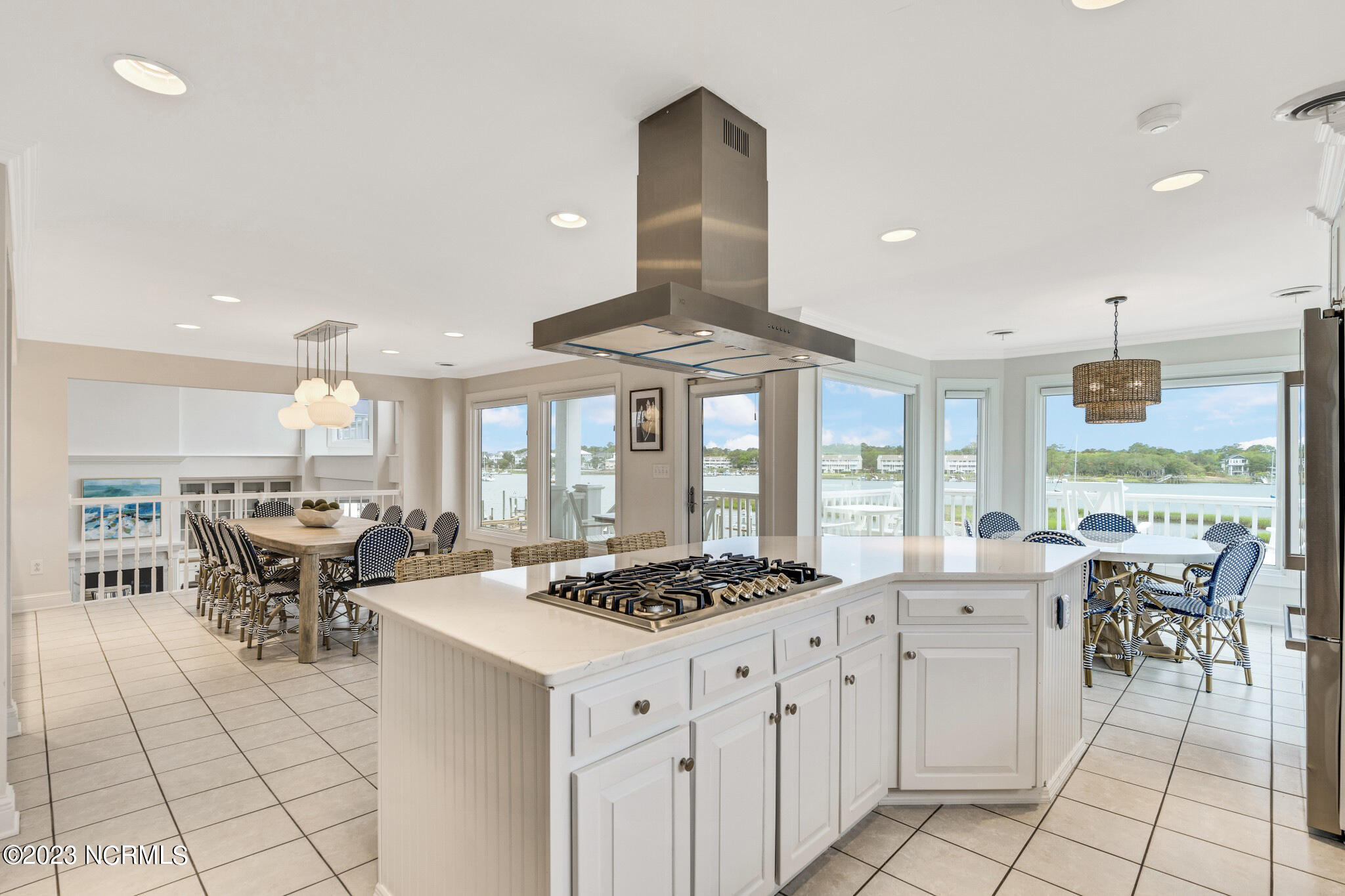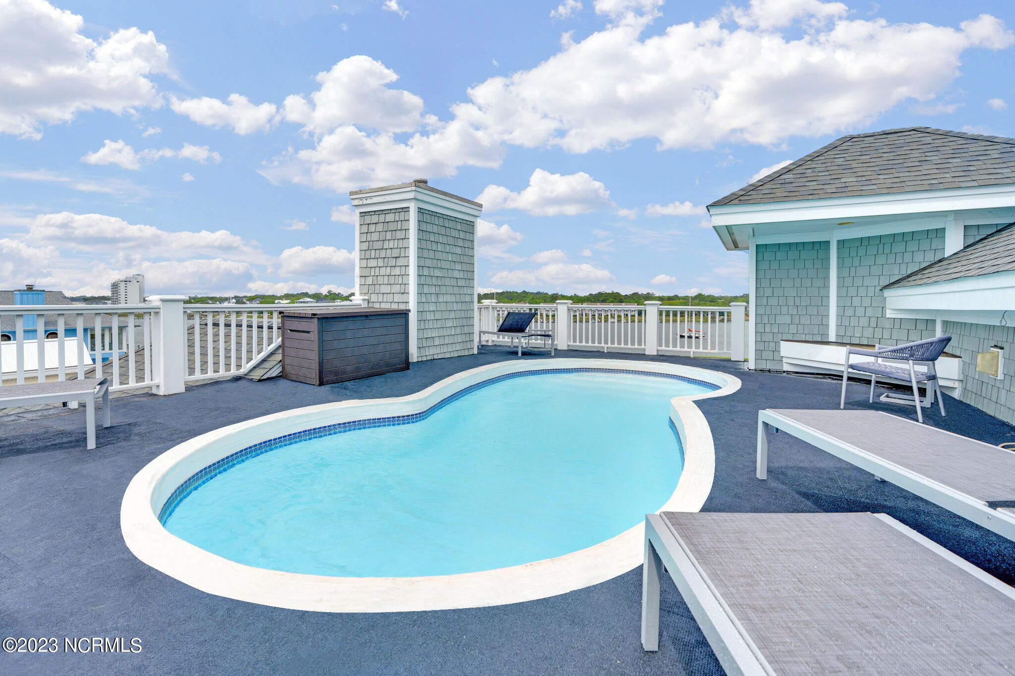This magnificent waterfront home in Carolina Beach features a private pier and dock with space for multiple boats, and is just a short walk to the beach as well. Ideal for a family retreat or vacation rental investment, the house features 7 bedrooms and space for 3 generations of family to gather and enjoy summer fun together. The elevator provides for ease of travel between levels. The rooftop pool offers panoramic water views while enjoying the ocean breezes.