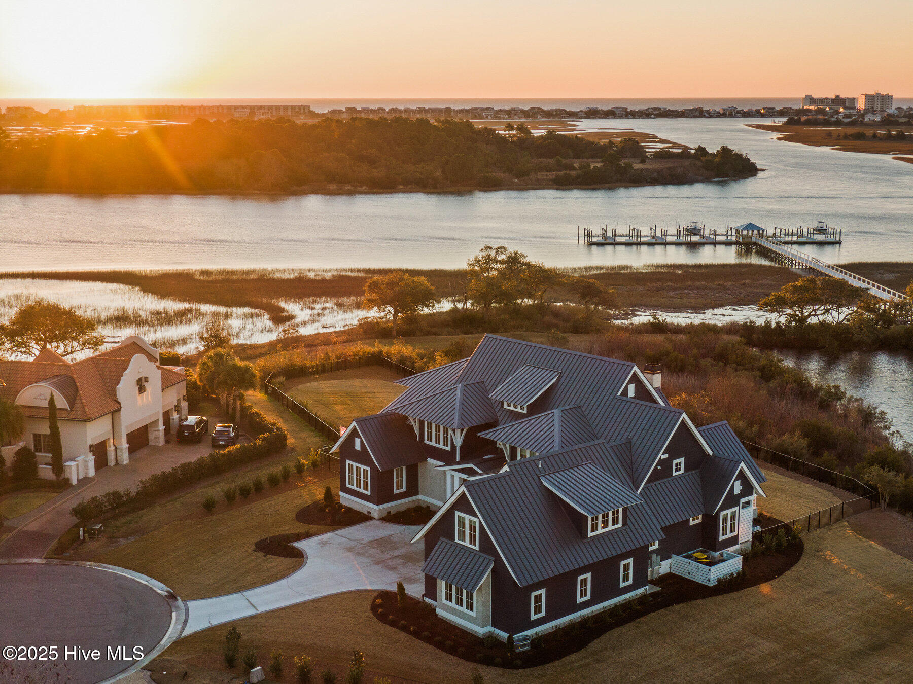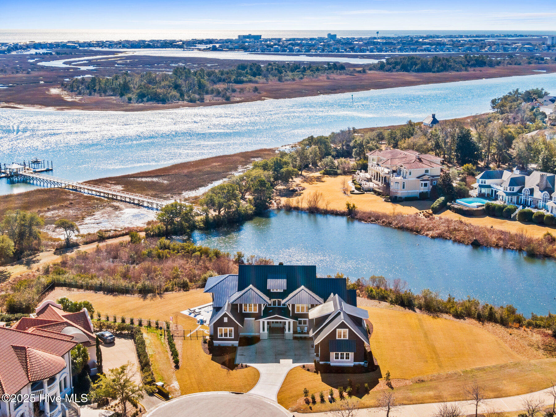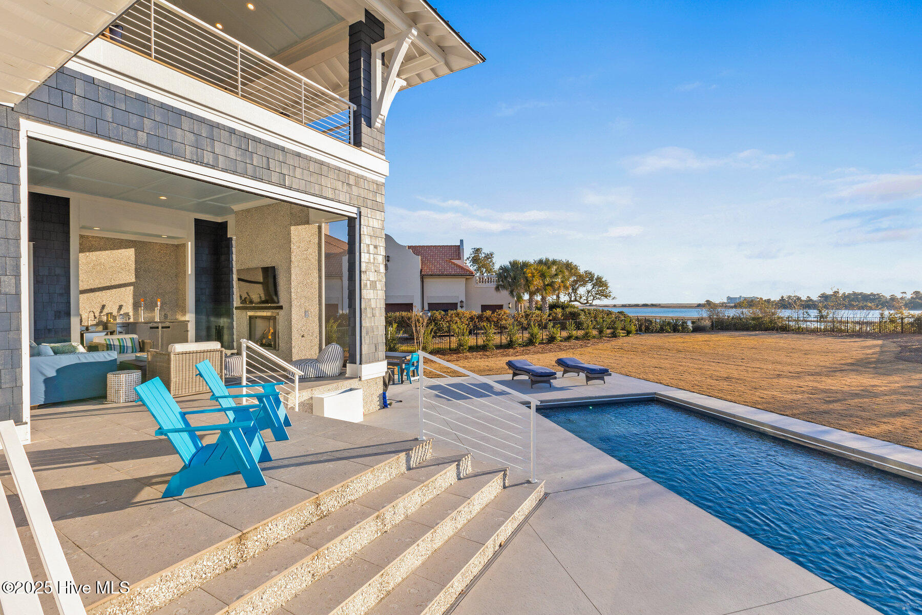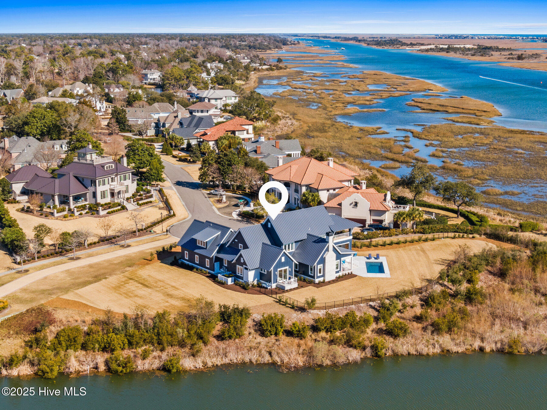 Nestled on one of the most coveted homesites in the prestigious gated community of Landfall, this newly constructed waterfront estate is a true masterpiece of modern coastal luxury. Perfectly positioned between the Intracoastal Waterway and the tranquil waters of Landfall Lake, this breathtaking residence offers unparalleled water views, capturing sunrises over the Intracoastal and the soft glow of sunset reflections over Landfall Lake. Designed for the discerning homeowner, this 6-bed, 6-bath estate showcases refined elegance and contemporary coastal sophistication. An open, light-filled floor plan creates an inviting ambiance, complemented by bespoke finishes, conditioned wine cellar, designer lighting, and high-end appliances throughout. The home is truly turnkey, blending coastal style with effortless livability. Featuring exceptional outdoor living & private boating access, this is one of only ten residences in Landfall with a private boat slip and dock, complete with power, water, and a storage locker, a rare and highly sought-after amenity. Just a brief walk from the home, the newly renovated dock offers effortless access to the Intracoastal Waterway and Atlantic Ocean. Imagine stepping from your home onto your boat for a sunset cruise or watching dolphins and herons from your outdoor patio. The resort-style outdoor living areas are designed for both grand entertaining and intimate relaxation. A covered patio overlooking the pool and boat dock features a kegerator, outdoor fireplace, retractable screens, and an unrivaled waterfront backdrop. A second-floor covered terrace provides yet another inviting space to take in sweeping water views. A sanctuary of sophisticated comfort, the expansive primary suite is a true retreat, featuring a private balcony with serene views over the water, spacious his-and-hers closets, a spa-like bath with a soaking tub, and private outdoor shower. Upstairs, three additional bedrooms, all with en-suite baths, offer luxurious accommodations, and a secluded additional guest suite on the second floor ensures privacy and comfort. With unparalleled amenities & thoughtful design, every detail of this home has been meticulously curated to offer both luxury and functionality: gourmet kitchen and scullery with top-tier appliances and a filtered water bottle filler; private second-floor office with adjacent workout space; workout/fitness room; conditioned wine cellar; coffee and bar station featuring a wine fridge, beverage fridge, and a rapid crushed ice maker; spacious kids' bonus room with a cozy movie nook; sixth bedroom that can serve as a second office; three-car garage with 9 foot doors; and so much more.