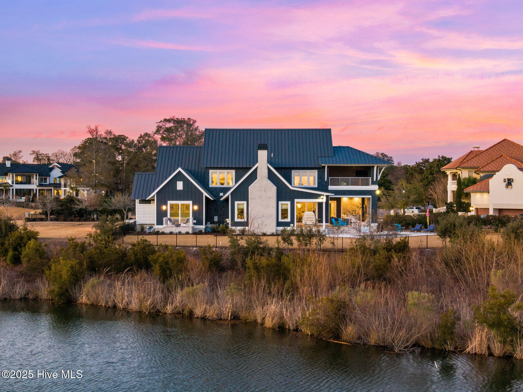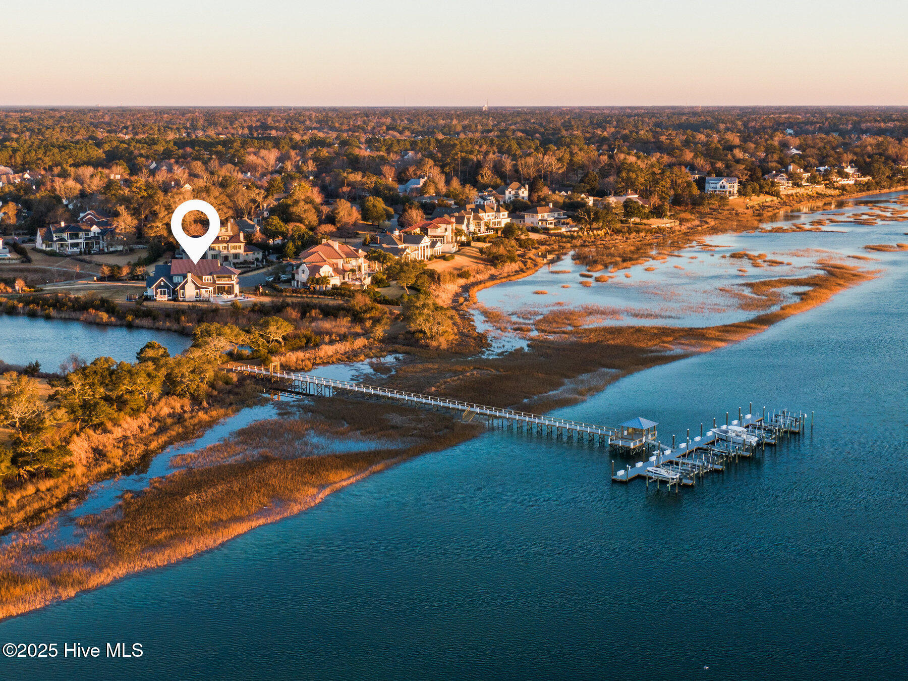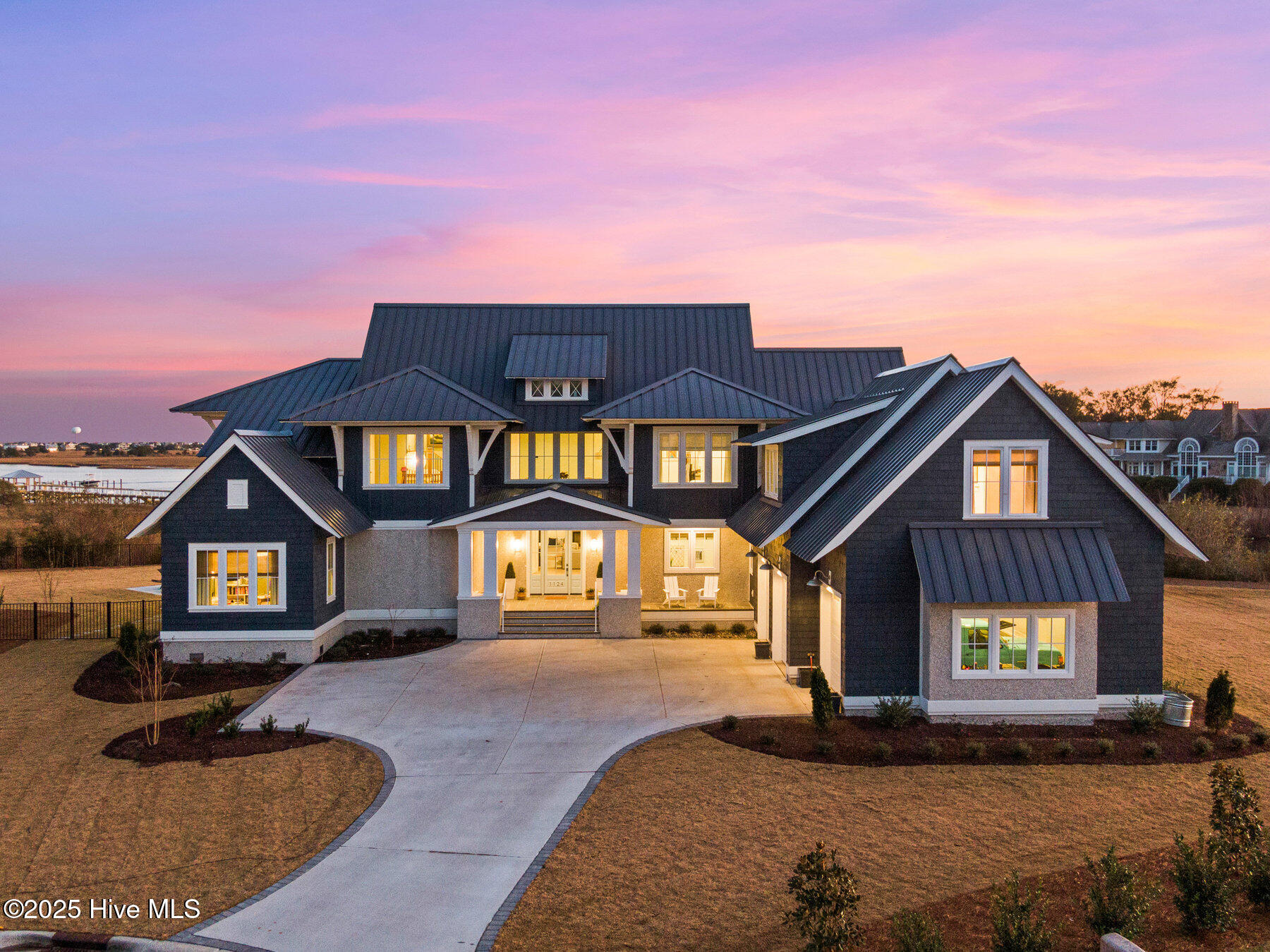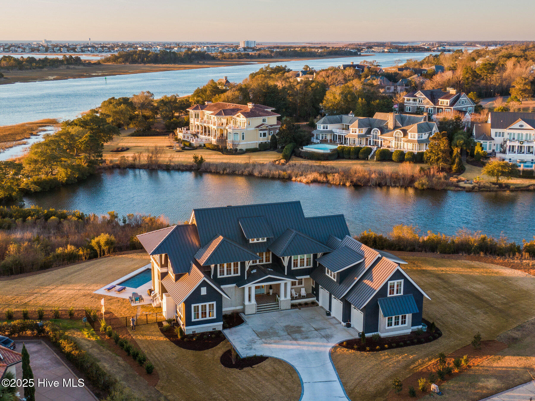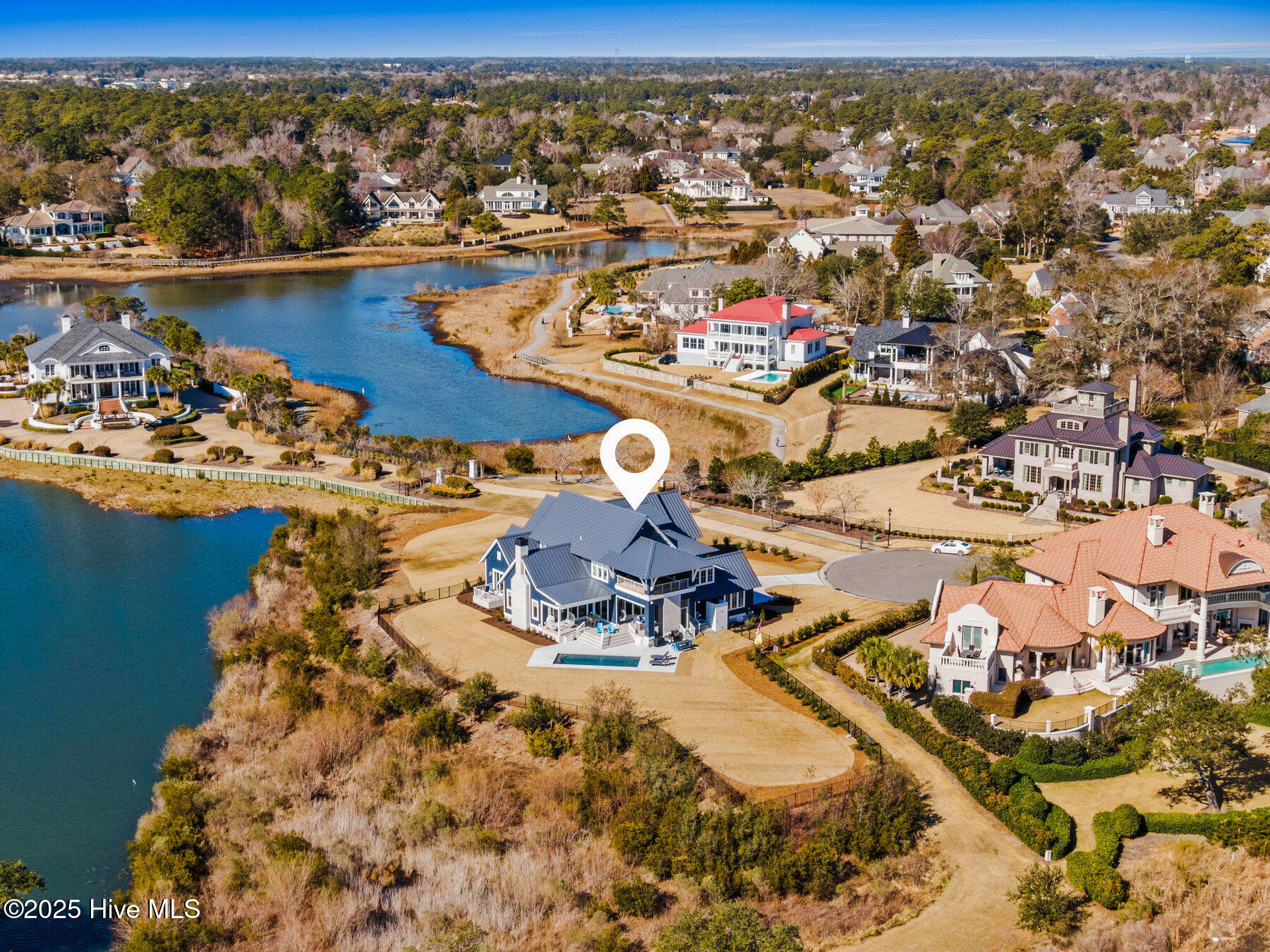 Nestled on one of the most coveted homesites in the prestigious gated community of Landfall, this newly constructed waterfront estate is a true masterpiece of modern coastal luxury. Perfectly positioned between the Intracoastal Waterway and the tranquil waters of Landfall Lake, this breathtaking residence offers unparalleled water views, capturing sunrises over the Intracoastal and the soft glow of sunset reflections over Landfall Lake. Designed for the discerning homeowner, this 6-bed, 6-bath estate showcases refined elegance and contemporary coastal sophistication. An open, light-filled floor plan creates an inviting ambiance, complemented by bespoke finishes, conditioned wine cellar, designer lighting, and high-end appliances throughout. The home is truly turnkey, blending coastal style with effortless livability. Featuring exceptional outdoor living & private boating access, this is one of only ten residences in Landfall with a private boat slip and dock, complete with power, water, and a storage locker, a rare and highly sought-after amenity. Just a brief walk from the home, the newly renovated dock offers effortless access to the Intracoastal Waterway and Atlantic Ocean. Imagine stepping from your home onto your boat for a sunset cruise or watching dolphins and herons from your outdoor patio. The resort-style outdoor living areas are designed for both grand entertaining and intimate relaxation. A covered patio overlooking the pool and boat dock features a kegerator, outdoor fireplace, retractable screens, and an unrivaled waterfront backdrop. A second-floor covered terrace provides yet another inviting space to take in sweeping water views. A sanctuary of sophisticated comfort, the expansive primary suite is a true retreat, featuring a private balcony with serene views over the water, spacious his-and-hers closets, a spa-like bath with a soaking tub, and private outdoor shower. Upstairs, three additional bedrooms, all with en-suite baths, offer luxurious accommodations, and a secluded additional guest suite on the second floor ensures privacy and comfort. With unparalleled amenities & thoughtful design, every detail of this home has been meticulously curated to offer both luxury and functionality: gourmet kitchen and scullery with top-tier appliances and a filtered water bottle filler; private second-floor office with adjacent workout space; workout/fitness room; conditioned wine cellar; coffee and bar station featuring a wine fridge, beverage fridge, and a rapid crushed ice maker; spacious kids' bonus room with a cozy movie nook; sixth bedroom that can serve as a second office; three-car garage with 9 foot doors; and so much more.