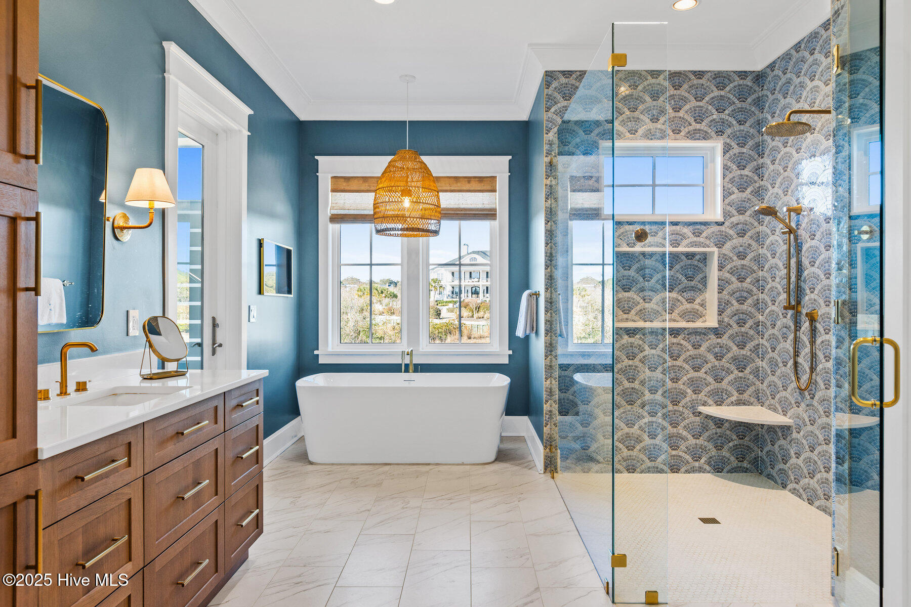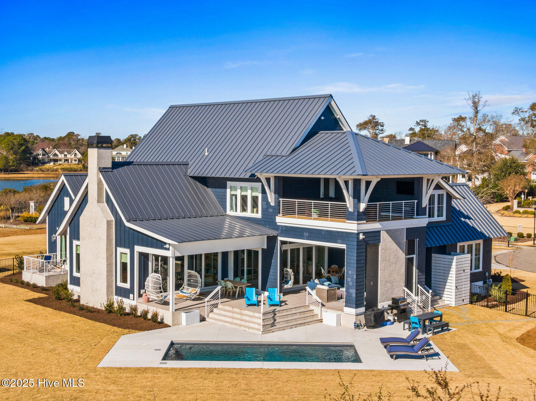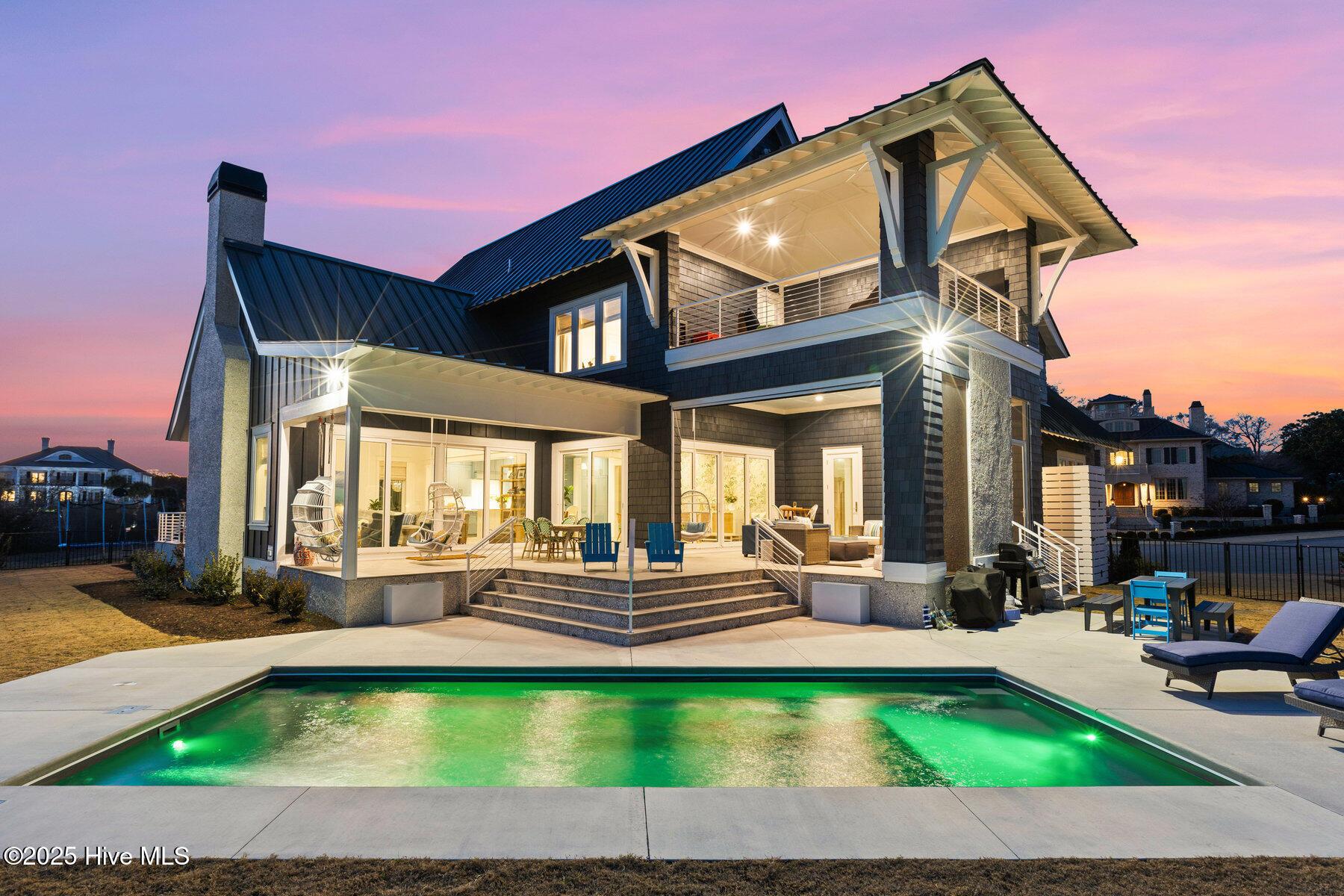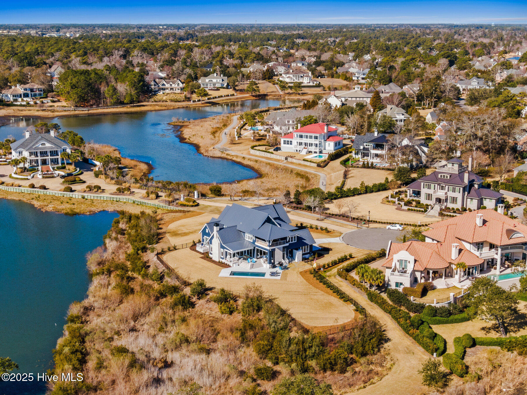 Nestled on one of the most coveted homesites in the prestigious gated community of Landfall, this newly constructed waterfront estate is a true masterpiece of modern coastal luxury. Perfectly positioned between the Intracoastal Waterway and the tranquil waters of Landfall Lake, this breathtaking residence offers unparalleled water views, capturing sunrises over the Intracoastal and the soft glow of sunset reflections over Landfall Lake. Designed for the discerning homeowner, this 6-bed, 6-bath estate showcases refined elegance and contemporary coastal sophistication. An open, light-filled floor plan creates an inviting ambiance, complemented by bespoke finishes, conditioned wine cellar, designer lighting, and high-end appliances throughout. The home is truly turnkey, blending coastal style with effortless livability. Featuring exceptional outdoor living & private boating access, this is one of only ten residences in Landfall with a private boat slip and dock, complete with power, water, and a storage locker, a rare and highly sought-after amenity. Just a brief walk from the home, the newly renovated dock offers effortless access to the Intracoastal Waterway and Atlantic Ocean. Imagine stepping from your home onto your boat for a sunset cruise or watching dolphins and herons from your outdoor patio. The resort-style outdoor living areas are designed for both grand entertaining and intimate relaxation. A covered patio overlooking the pool and boat dock features a kegerator, outdoor fireplace, retractable screens, and an unrivaled waterfront backdrop. A second-floor covered terrace provides yet another inviting space to take in sweeping water views. A sanctuary of sophisticated comfort, the expansive primary suite is a true retreat, featuring a private balcony with serene views over the water, spacious his-and-hers closets, a spa-like bath with a soaking tub, and private outdoor shower. Upstairs, three additional bedrooms, all with en-suite baths, offer luxurious accommodations, and a secluded additional guest suite on the second floor ensures privacy and comfort. With unparalleled amenities & thoughtful design, every detail of this home has been meticulously curated to offer both luxury and functionality: gourmet kitchen and scullery with top-tier appliances and a filtered water bottle filler; private second-floor office with adjacent workout space; workout/fitness room; conditioned wine cellar; coffee and bar station featuring a wine fridge, beverage fridge, and a rapid crushed ice maker; spacious kids' bonus room with a cozy movie nook; sixth bedroom that can serve as a second office; three-car garage with 9 foot doors; and so much more.