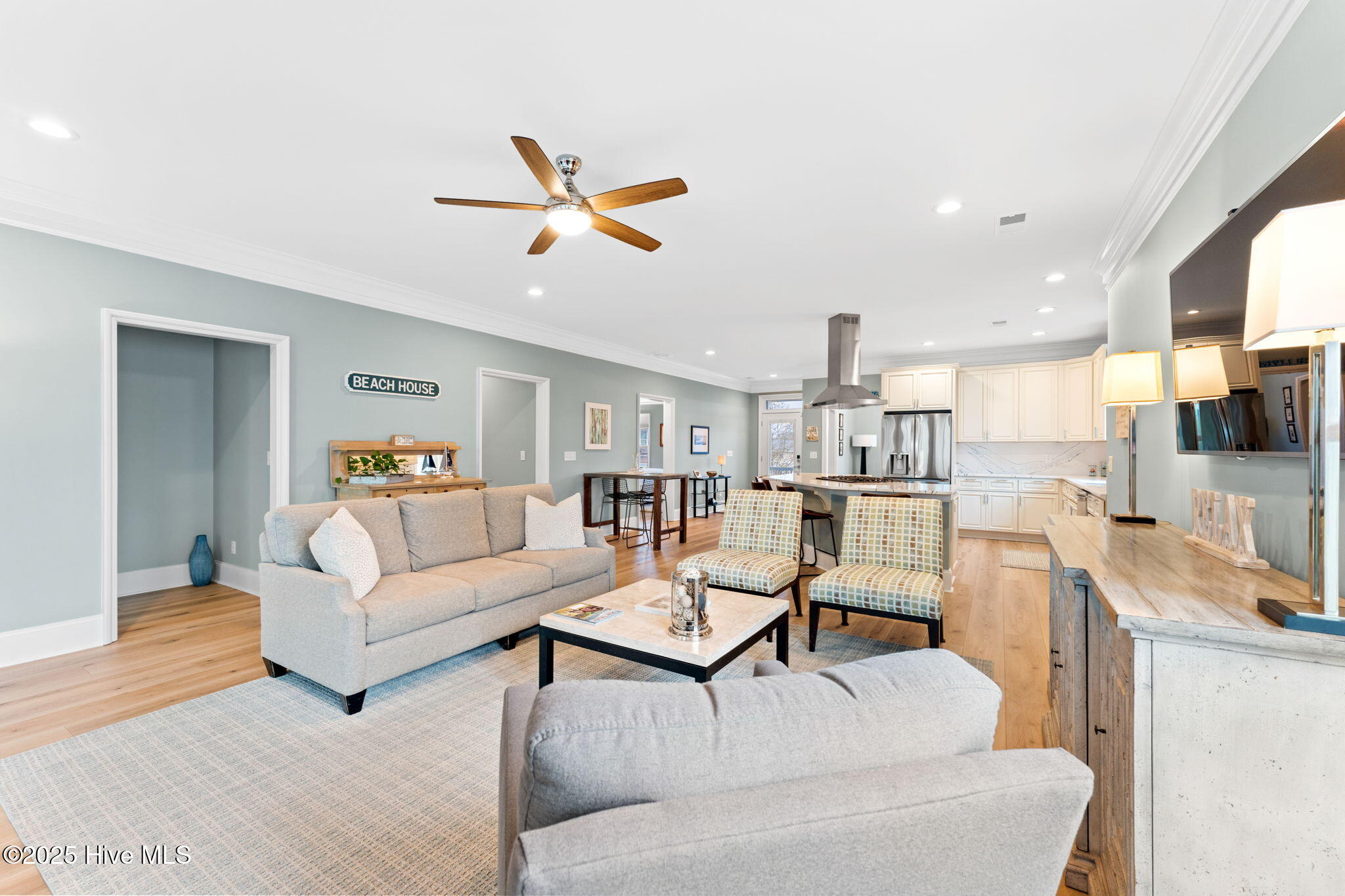 Perfect for both relaxing and entertaining, the home includes a spacious enclosed Carolina room, a back patio ideal for outdoor gatherings, and a professionally landscaped yard that adds to its coastal charm. A dedicated golf cart garage makes beach trips and island exploration a breeze.