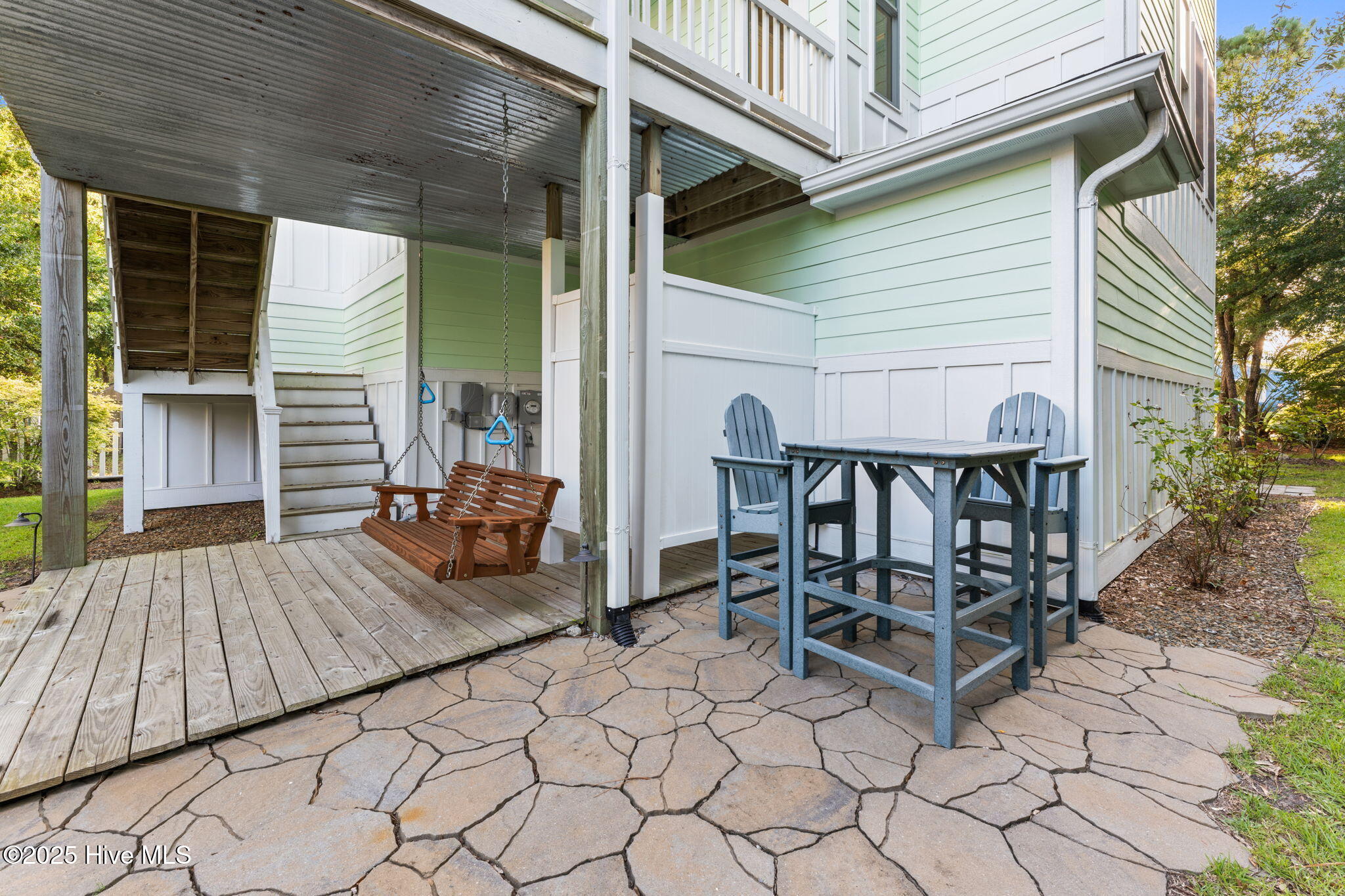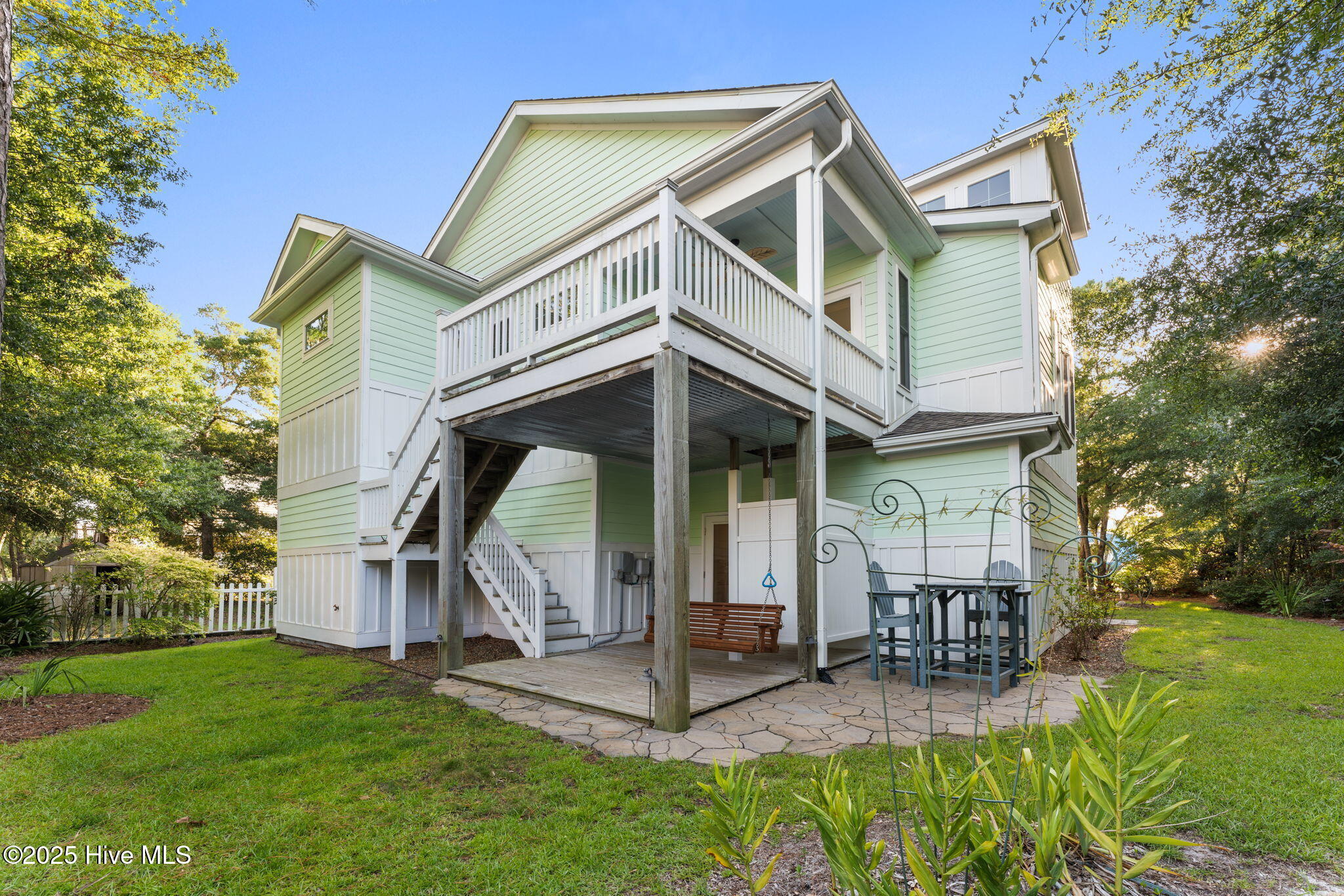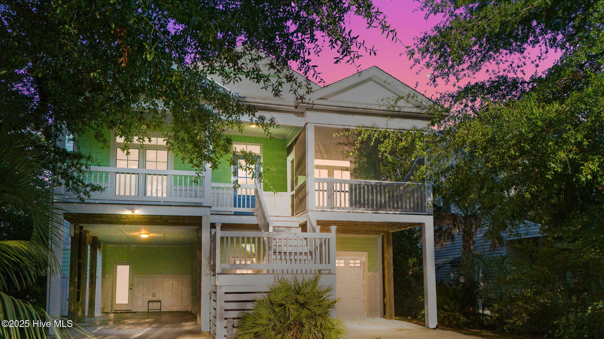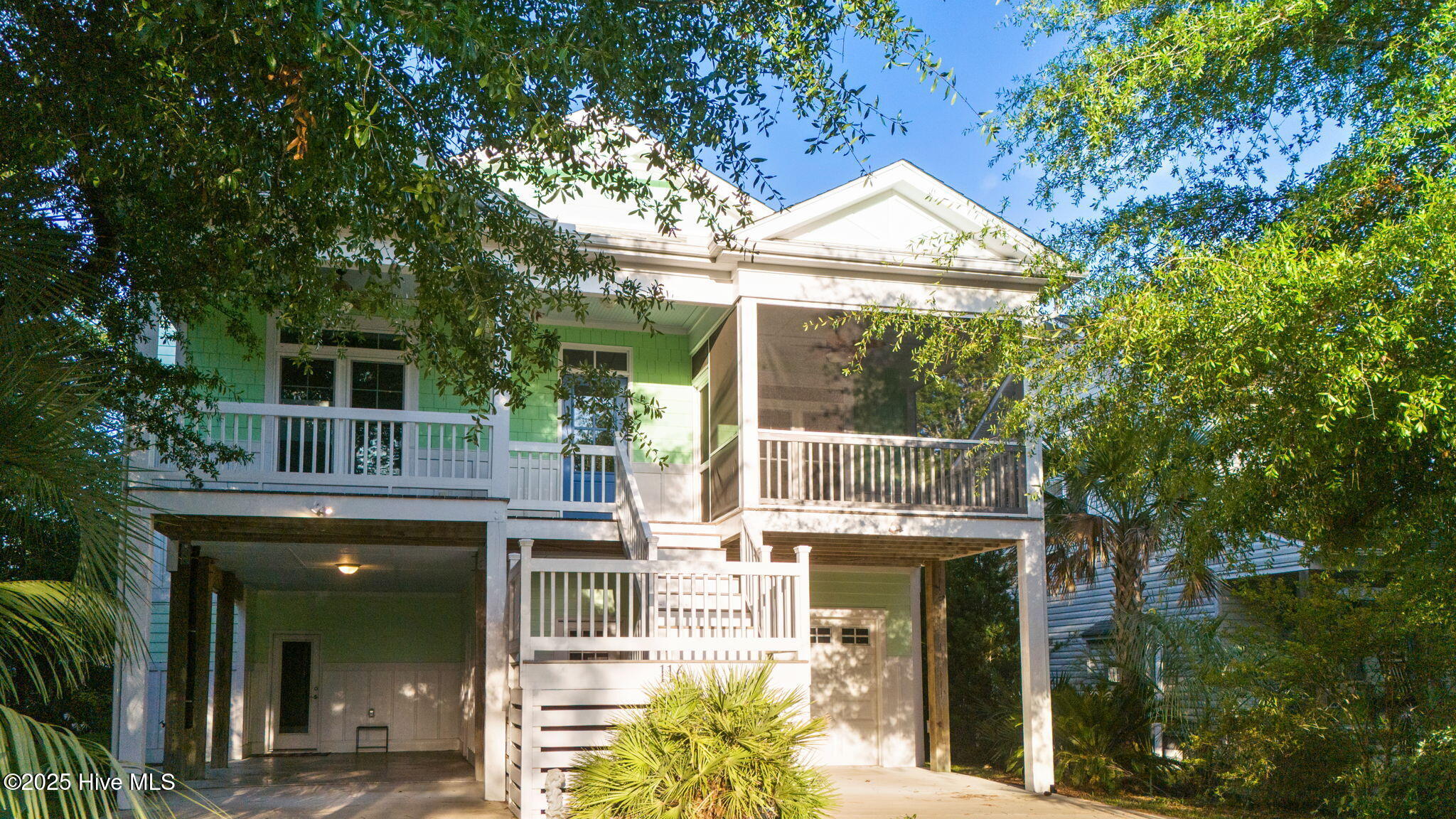 Dry entry with interior elevator and staircase welcomes you to this bright, well-maintained coastal home. Enjoy multiple outdoor living spaces like covered, screened, and open-air porches, decks, and a backyard patio with an outdoor shower. Inside, you'll find hardwood floors, tiled baths, and cozy carpeted bedrooms. Extras include a whole house water filtration system, irrigation with separate meter, spacious master walk-in closet, half bath on the ground level, and bonus appliances like a freezer and second fridge. The oversized garage offers ample storage, a workbench, and shelving. Close to the scenic 9th Street beach walkover!