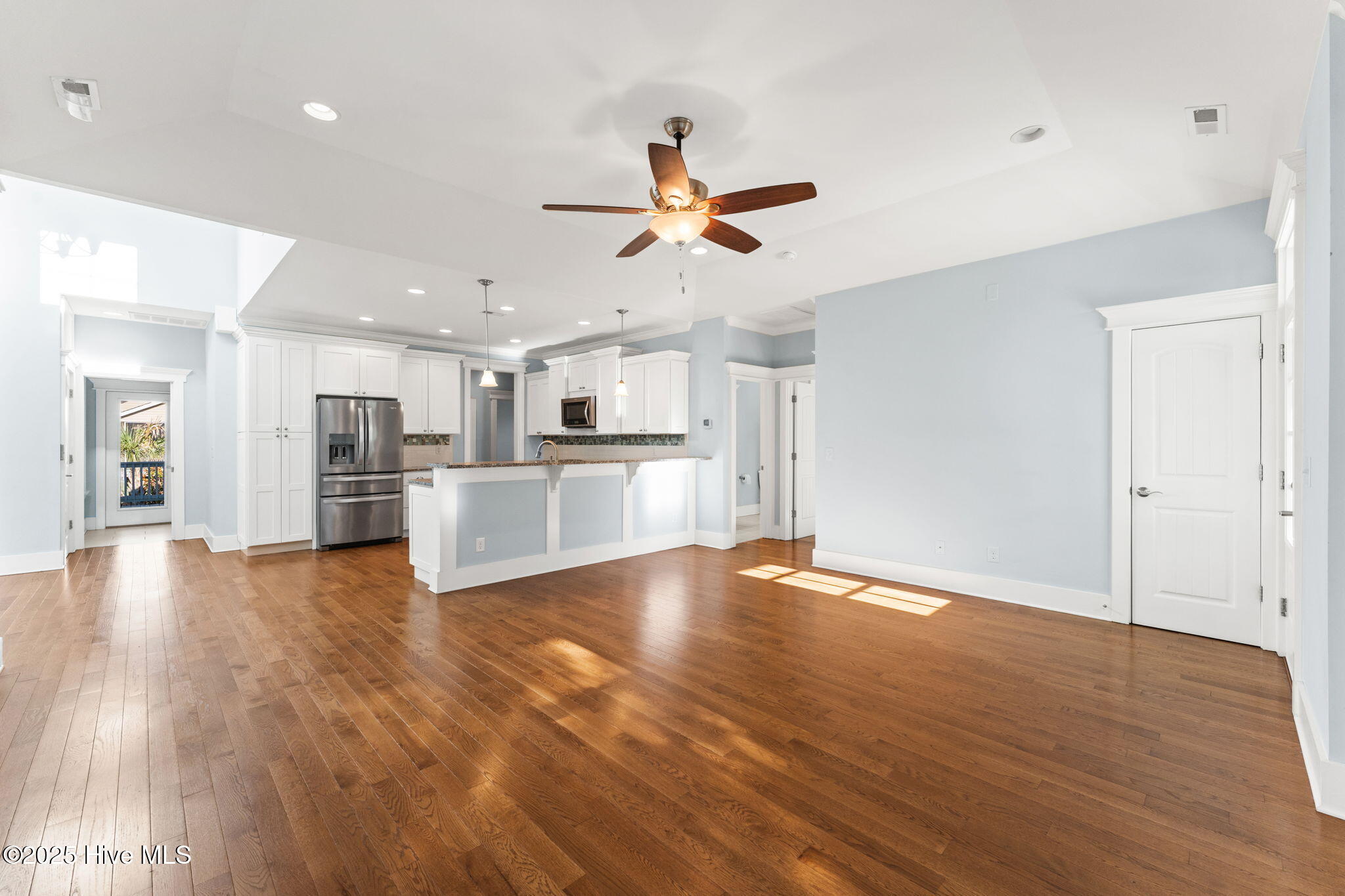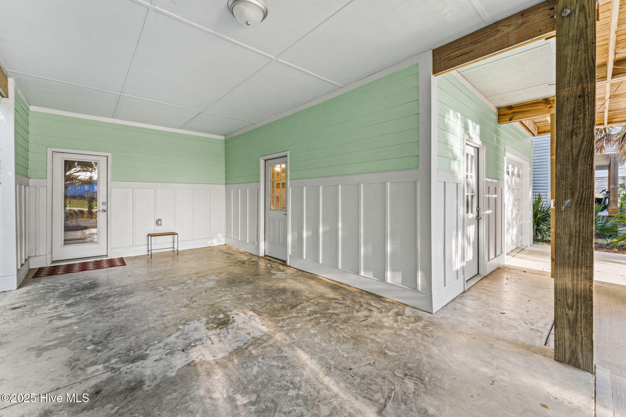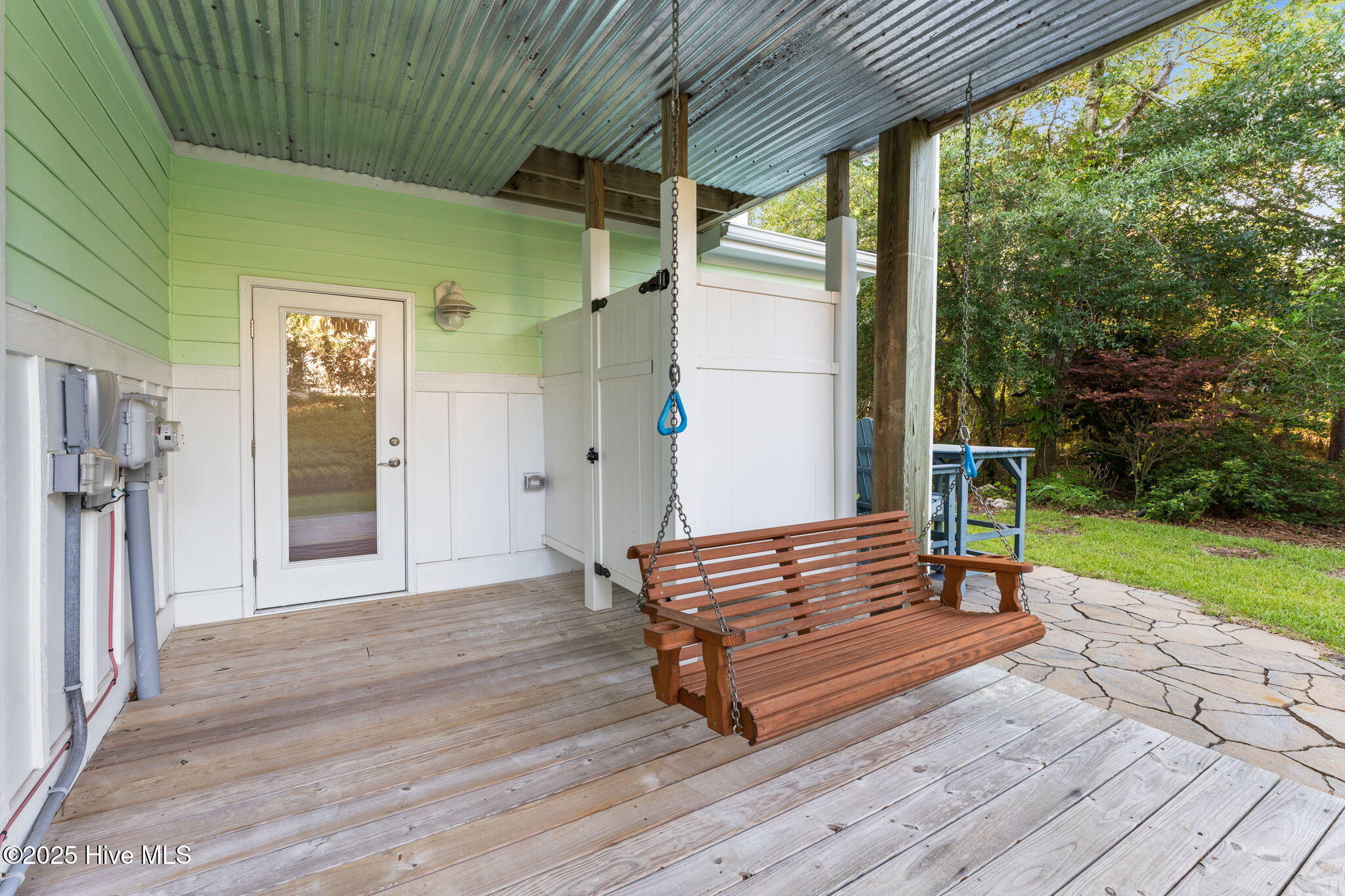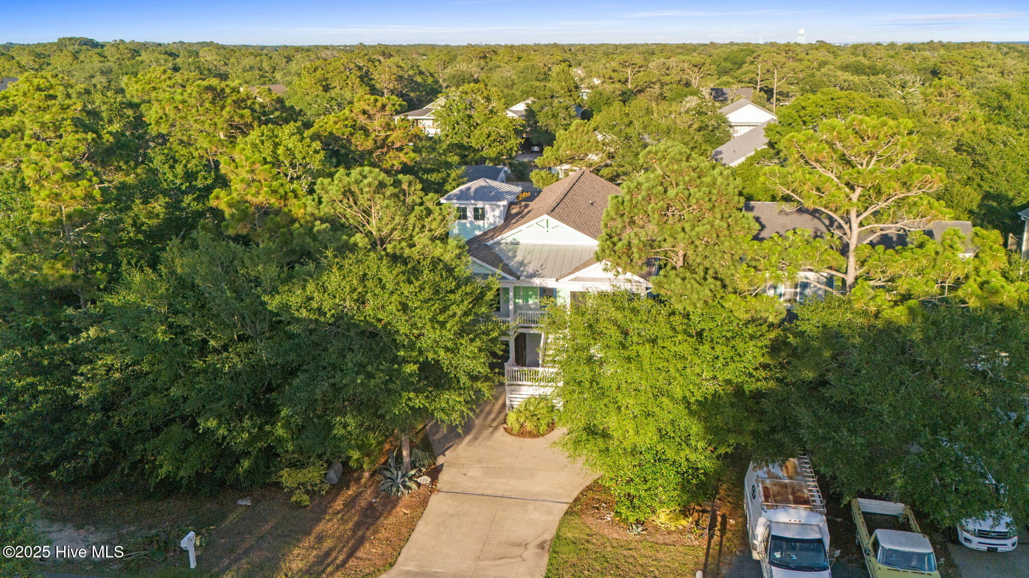 Dry entry with interior elevator and staircase welcomes you to this bright, well-maintained coastal home. Enjoy multiple outdoor living spaces like covered, screened, and open-air porches, decks, and a backyard patio with an outdoor shower. Inside, you'll find hardwood floors, tiled baths, and cozy carpeted bedrooms. Extras include a whole house water filtration system, irrigation with separate meter, spacious master walk-in closet, half bath on the ground level, and bonus appliances like a freezer and second fridge. The oversized garage offers ample storage, a workbench, and shelving. Close to the scenic 9th Street beach walkover!