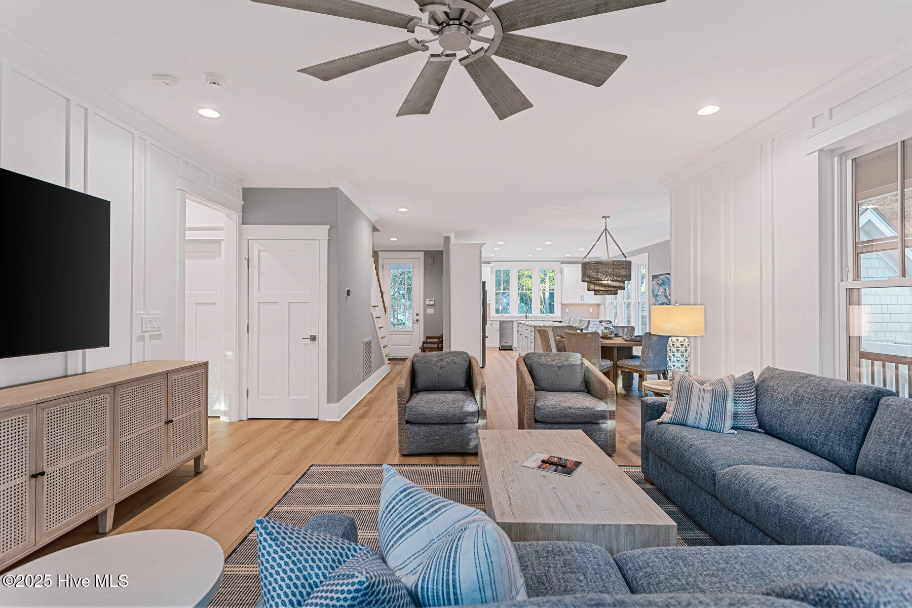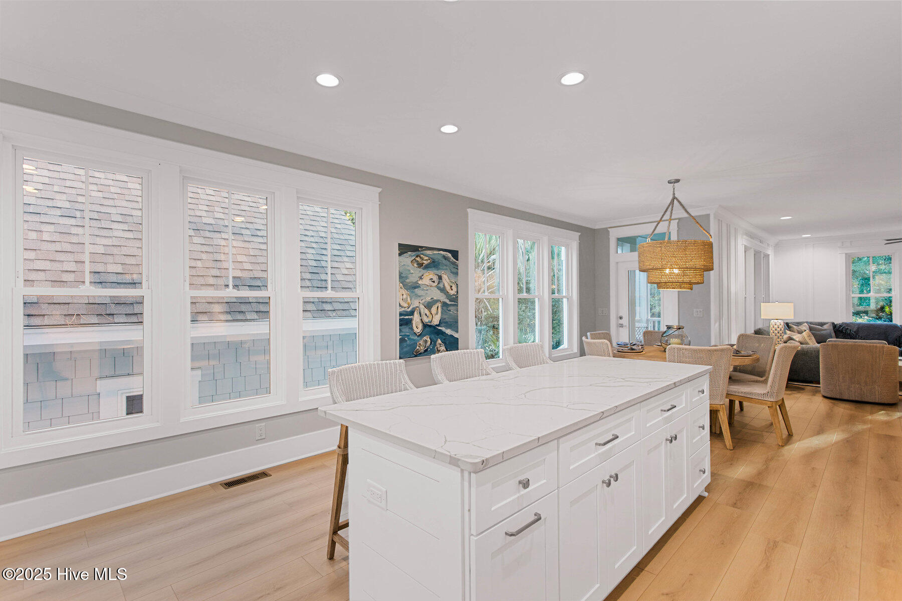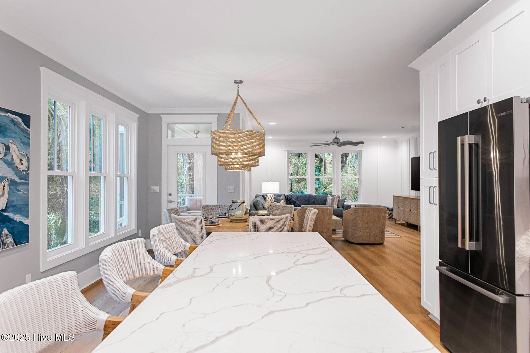 A welcoming front porch swing sets the tone for relaxed island living, while inside, the owners partnered with a professional interior designer to curate a fully furnished, turnkey retreat. The result is a warm yet polished aesthetic, where every room feels both beautiful and functional.
