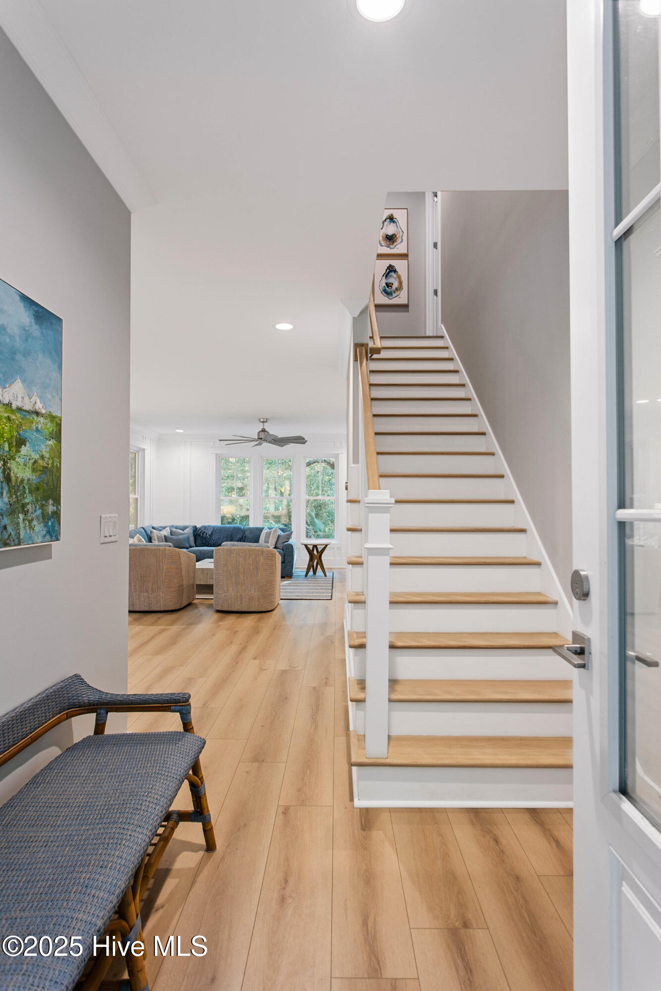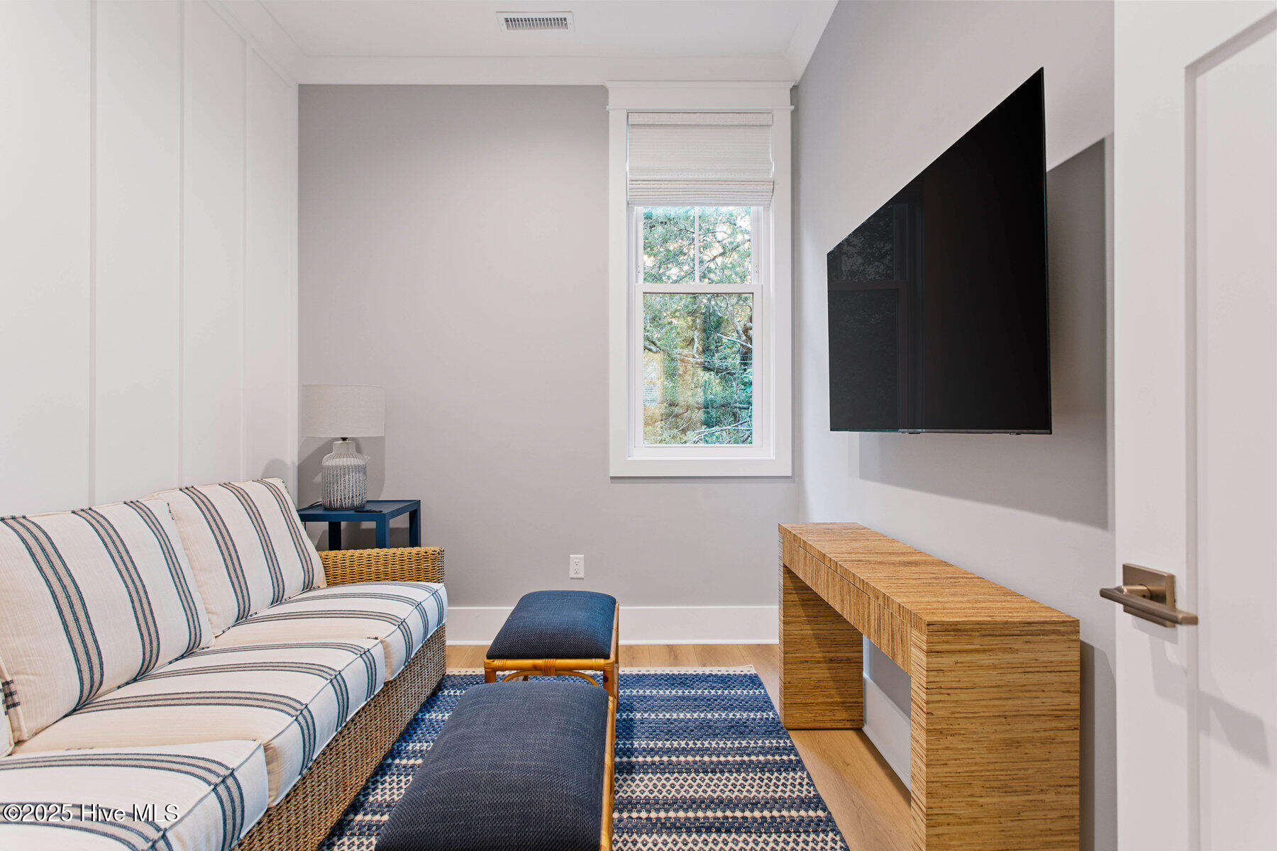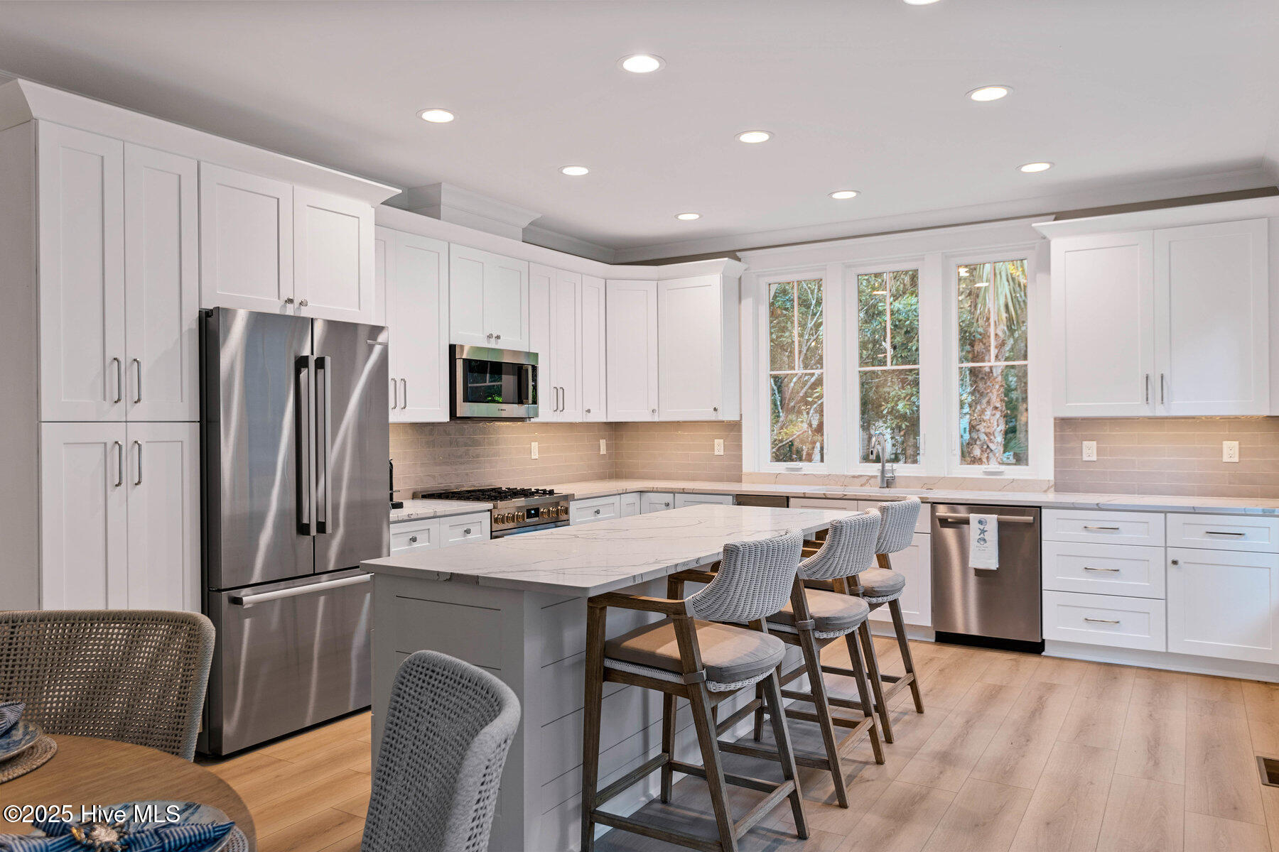 A welcoming front porch swing sets the tone for relaxed island living, while inside, the owners partnered with a professional interior designer to curate a fully furnished, turnkey retreat. The result is a warm yet polished aesthetic, where every room feels both beautiful and functional.