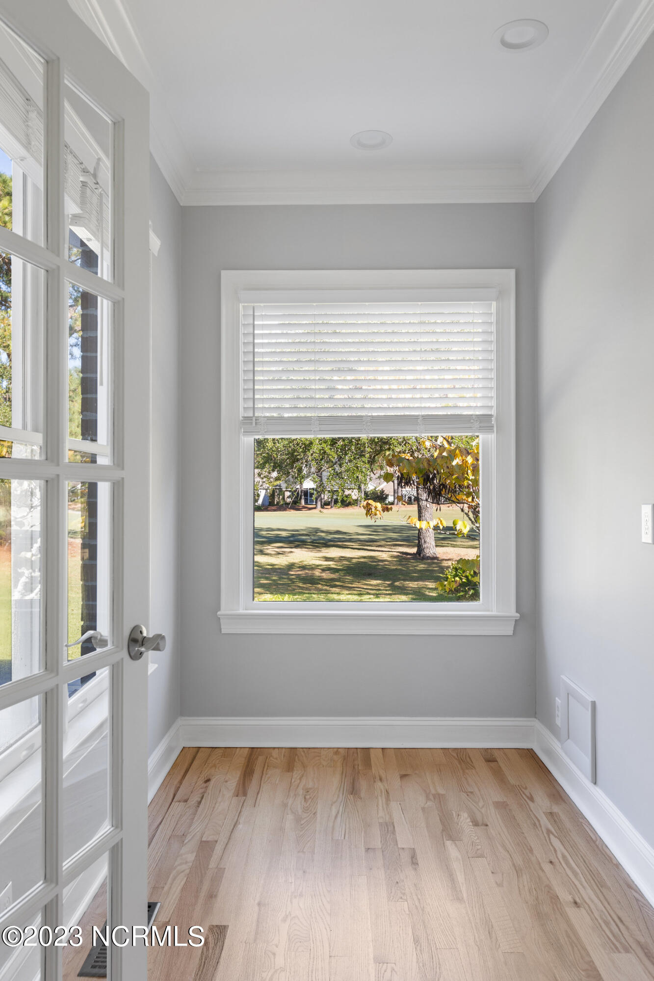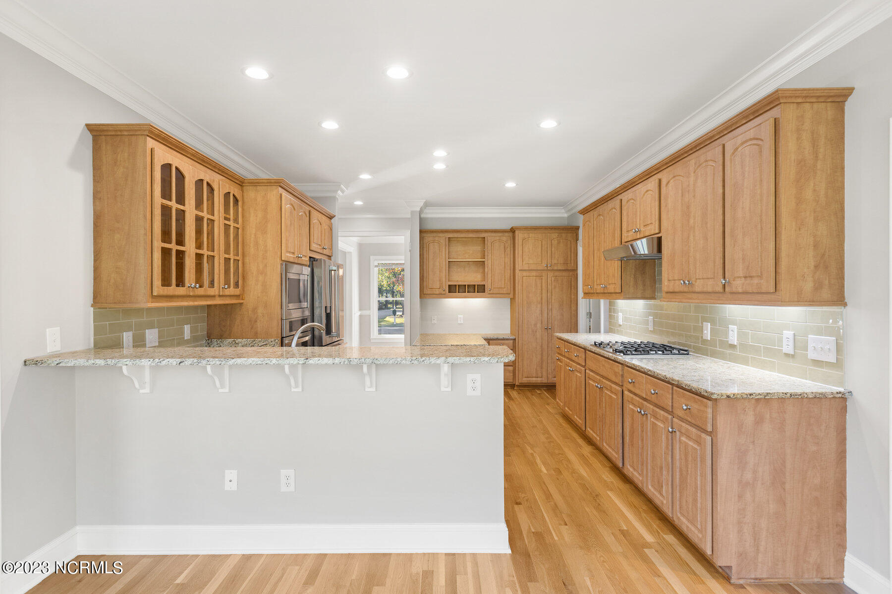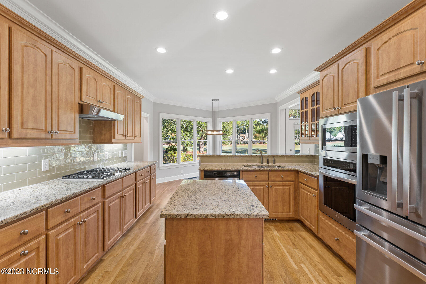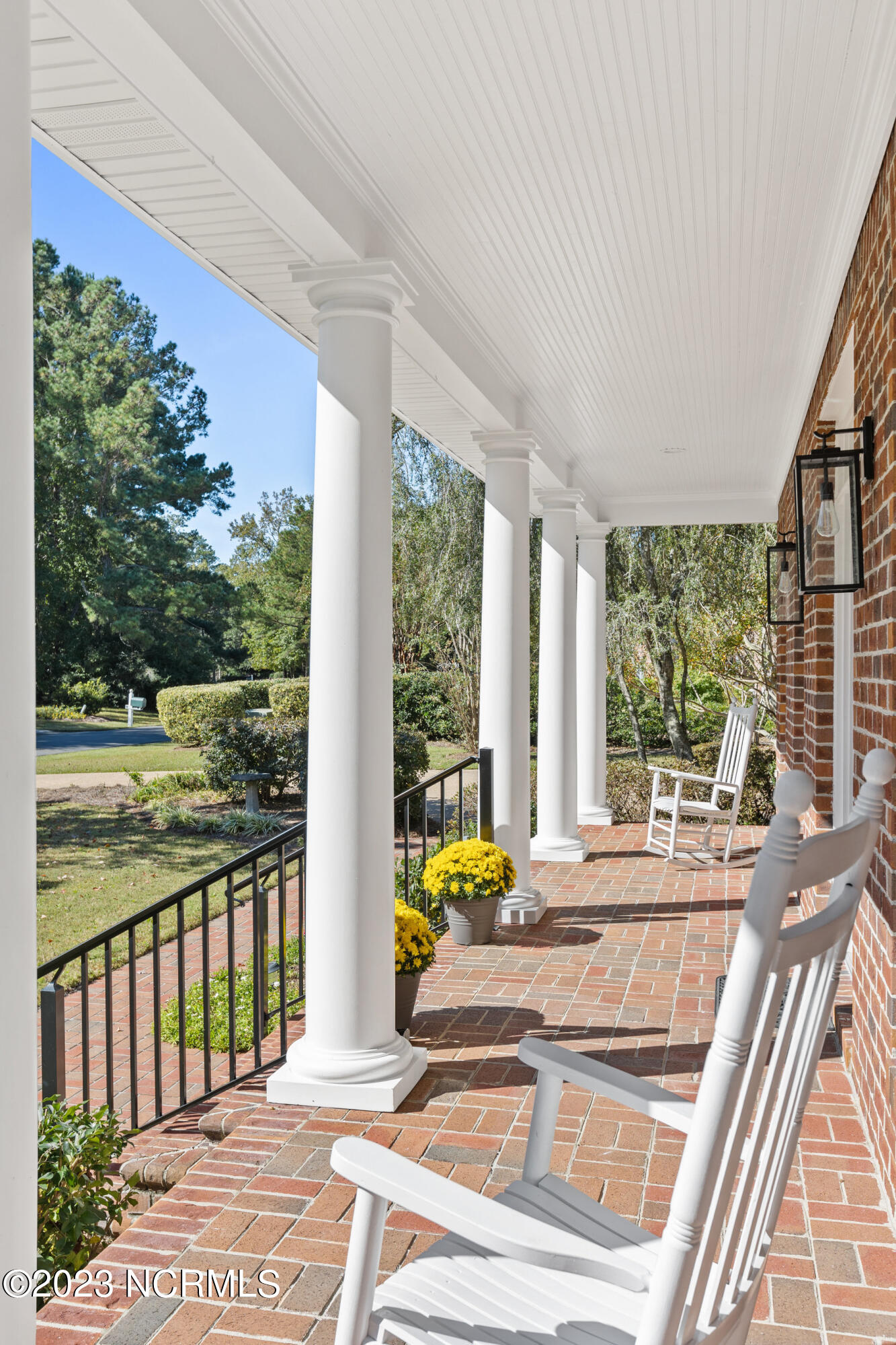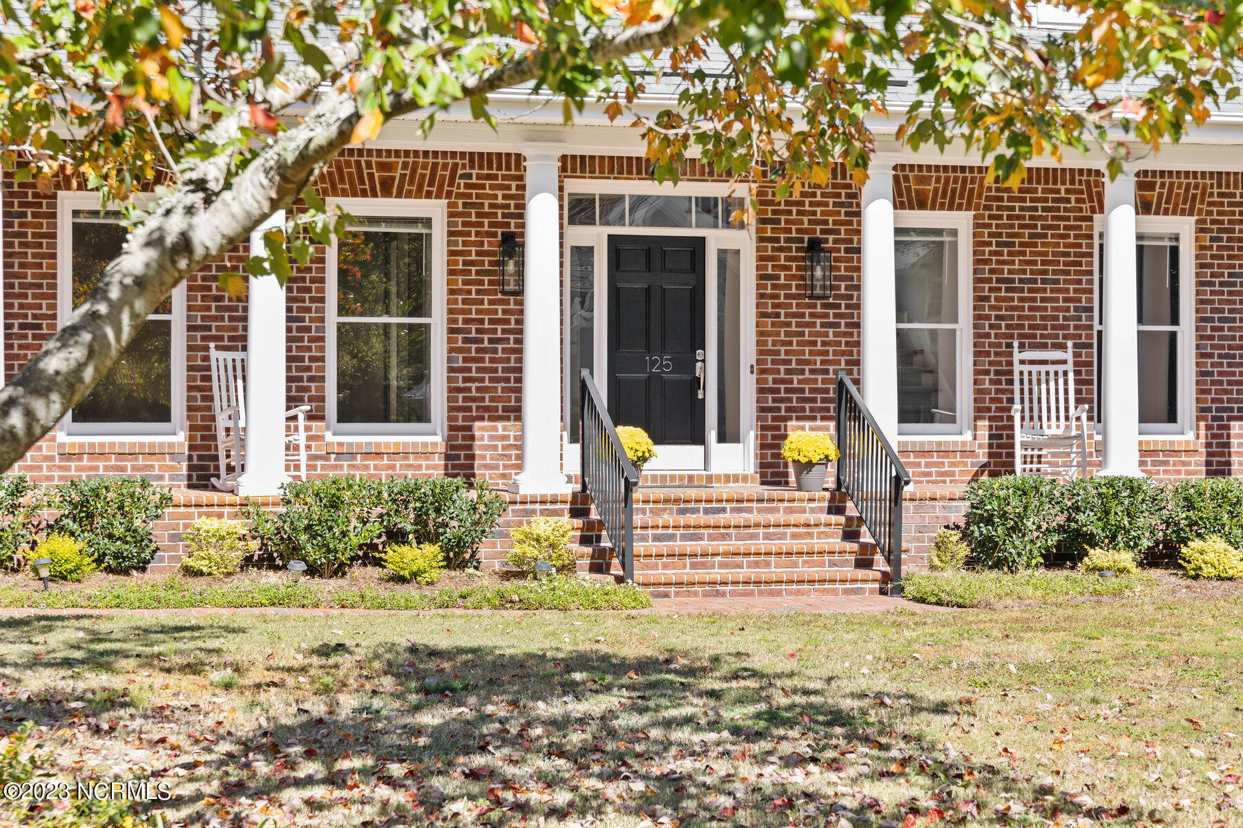 Explore the timeless charm of 125 Hallbrook Farms Circle--a delightful 4-bedroom, 4-bath brick Cape Cod residence nestled on a quiet street, offering captivating golf views of the 5th fairway. This elegant home seamlessly combines classic sophistication with modern convenience. As you step inside you'll discover a meticulously designed interior featuring spacious rooms and top-of-the-line finishes. The elegant moldings and beautiful Oak flooring flow into a sunlit two-story great room with skylights and a cozy gas logs fireplace. The kitchen is complete with custom cabinetry, granite countertops, and quality stainless appliances, and flows into a sunny breakfast room that's ideal for get-togethers. The luxurious master suite offers a spa-like bath, while an en suite office provides an inviting space to work or relax. The private bonus room with a separate staircase is the perfect getaway for a man cave, playroom, or office. The second level is complete with two beds and two full baths. Enjoy leisurely evenings on the sprawling front porch or take in the golf views on the back deck. Recent updates include a new roof, HVAC, water heater, fresh paint, new carpet, new deck, and railing. The appeal of this gated community is that residents have access to the boat ramp and picnic area on the Intracoastal Waterway. Membership to the top-rated Porters Neck Country Club is available and amenities include golf, tennis, fitness, dining, pool, and pickleball. Experience the perfect blend of classic beauty and modern comfort at 125 Hallbrook Farms, your private paradise on the greens.