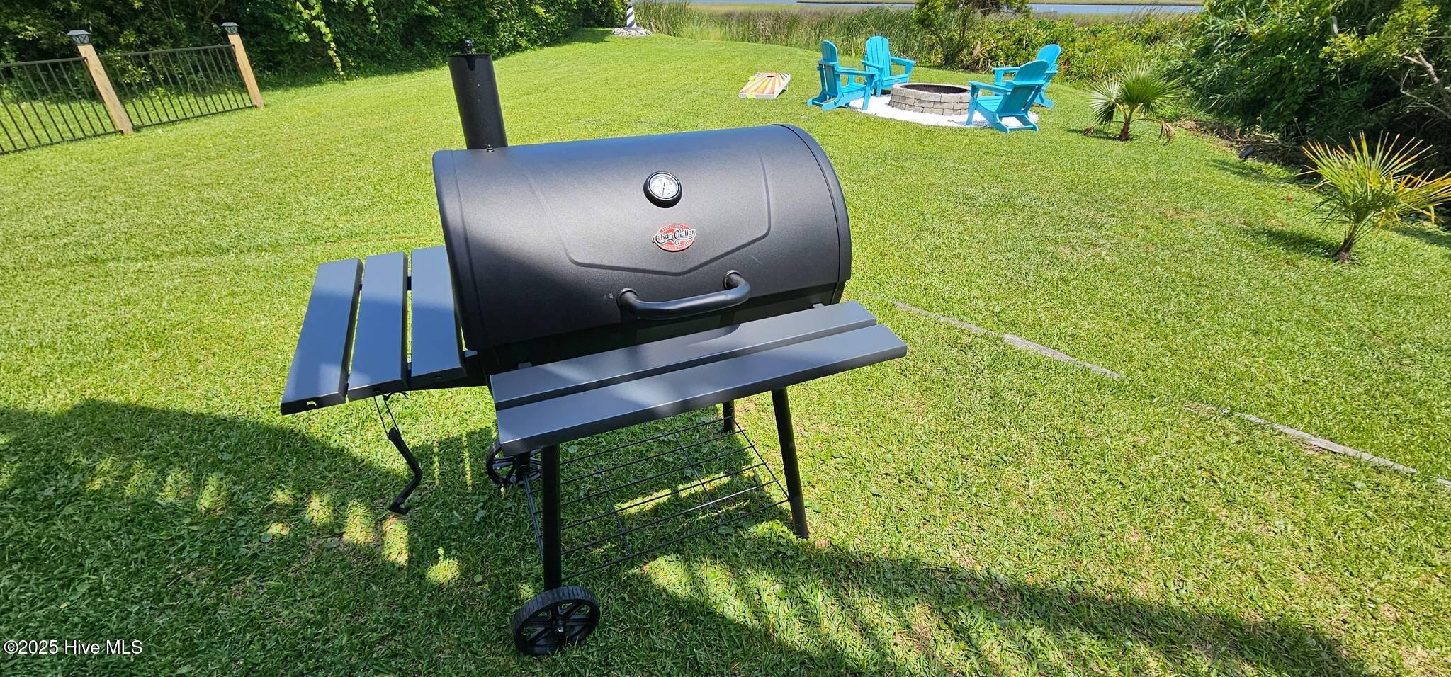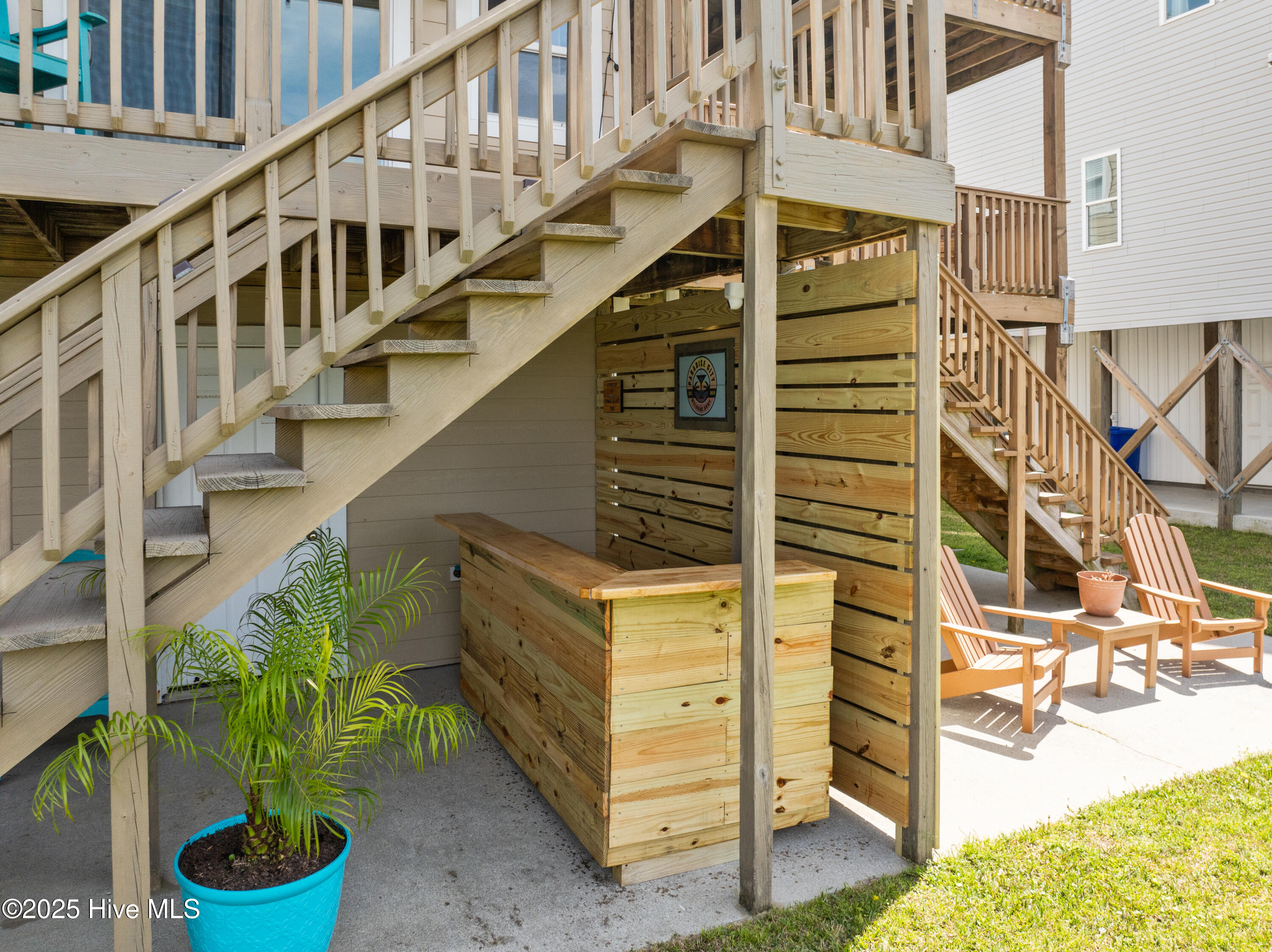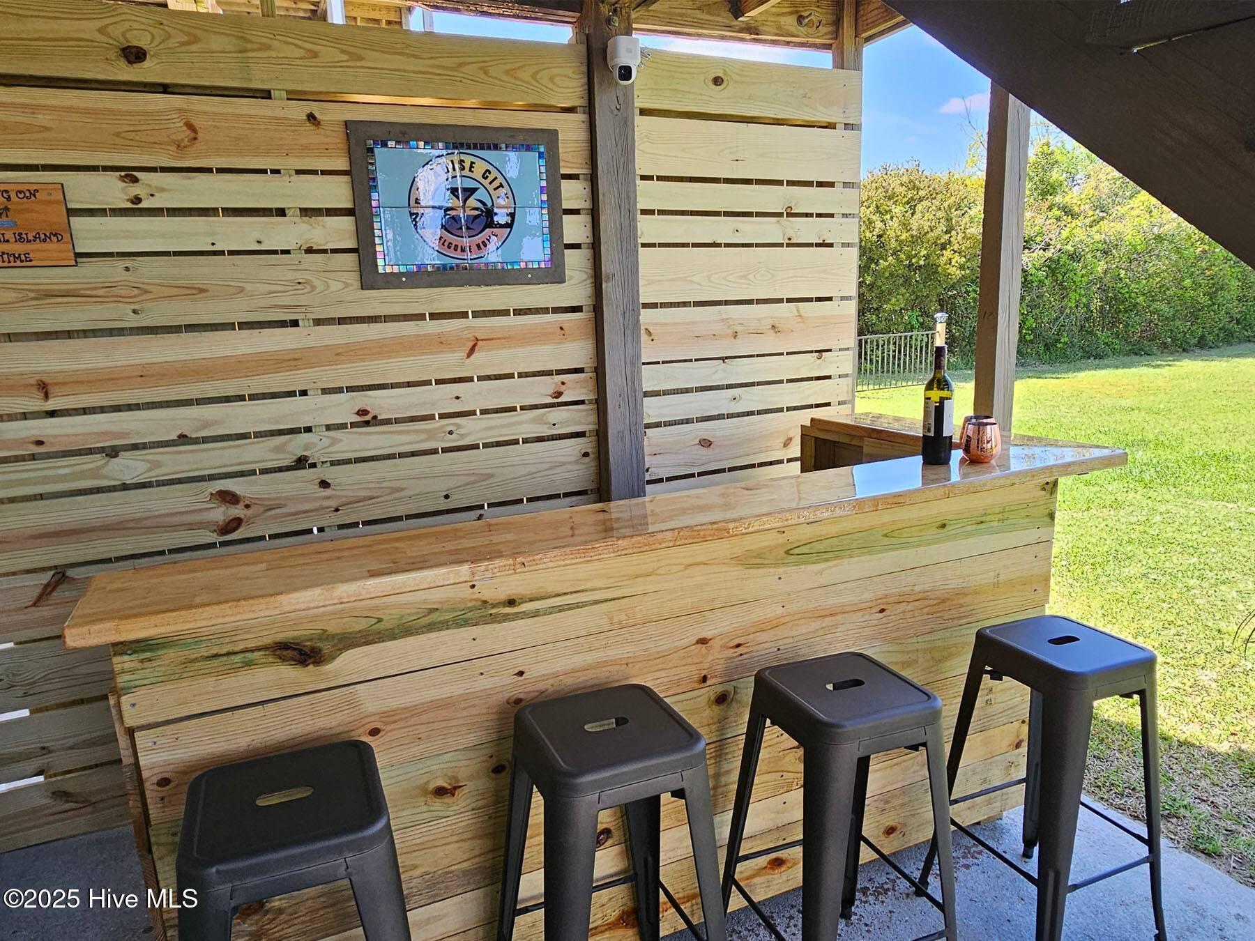 The outdoor spaces are thoughtfully appointed with an outdoor bar, firepit, smoker grill, corn hole set, and bikes for exploring the island. A beach wagon, pack and play, and booster chair add an extra layer of ease for families with young children.