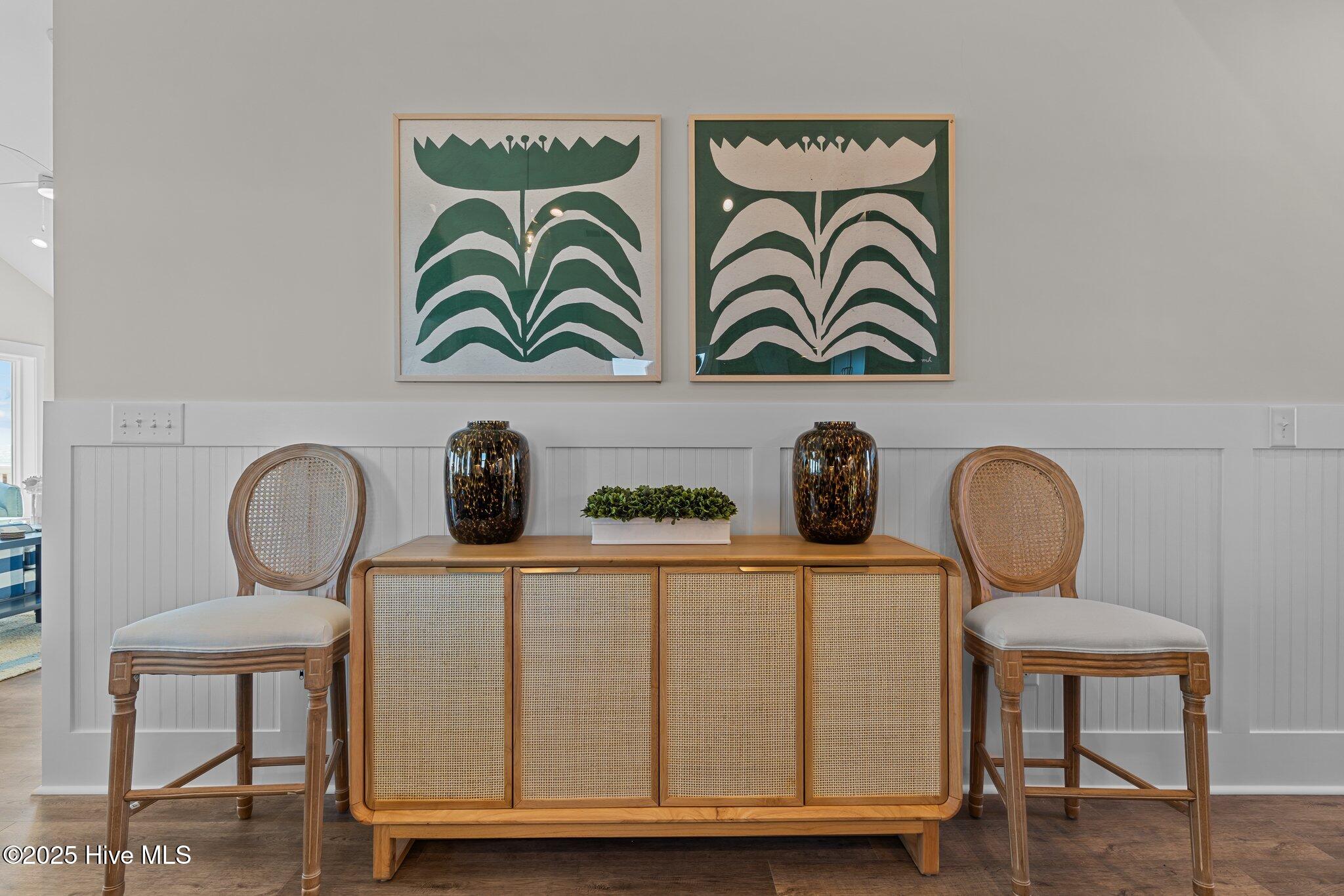 With a reverse floor plan to take full advantage of the sweeping ocean views, the top floor features a vaulted ceiling and an open-concept living area filled with natural light. The beautifully appointed kitchen includes wainscoting details, a classic subway tile backsplash, and access to a spacious deck overlooking the Atlantic--perfect for morning coffee or evening cocktails with a sea breeze.