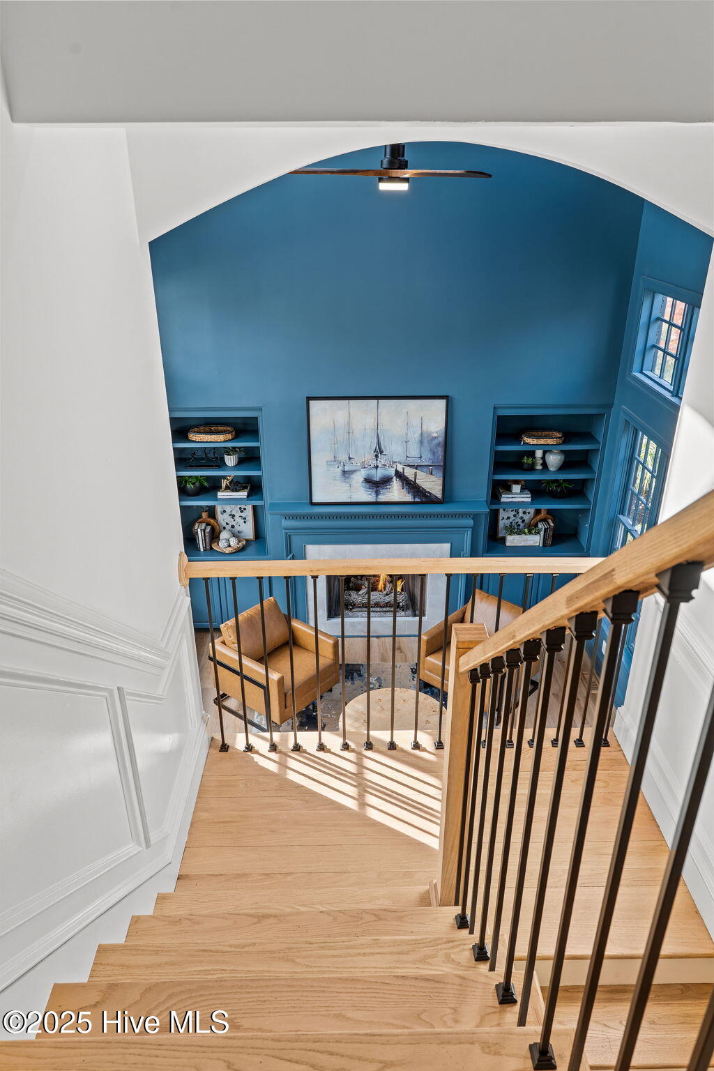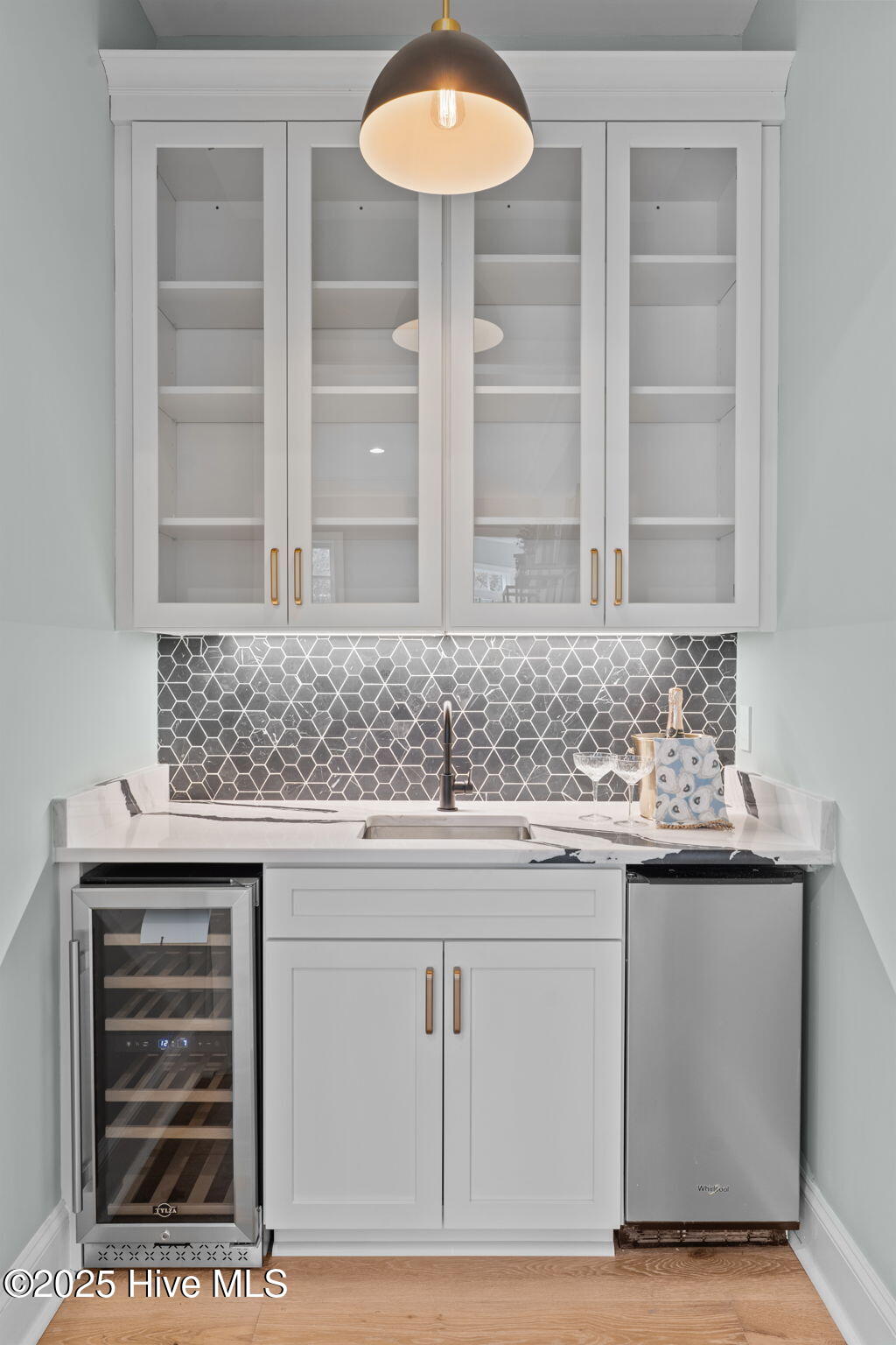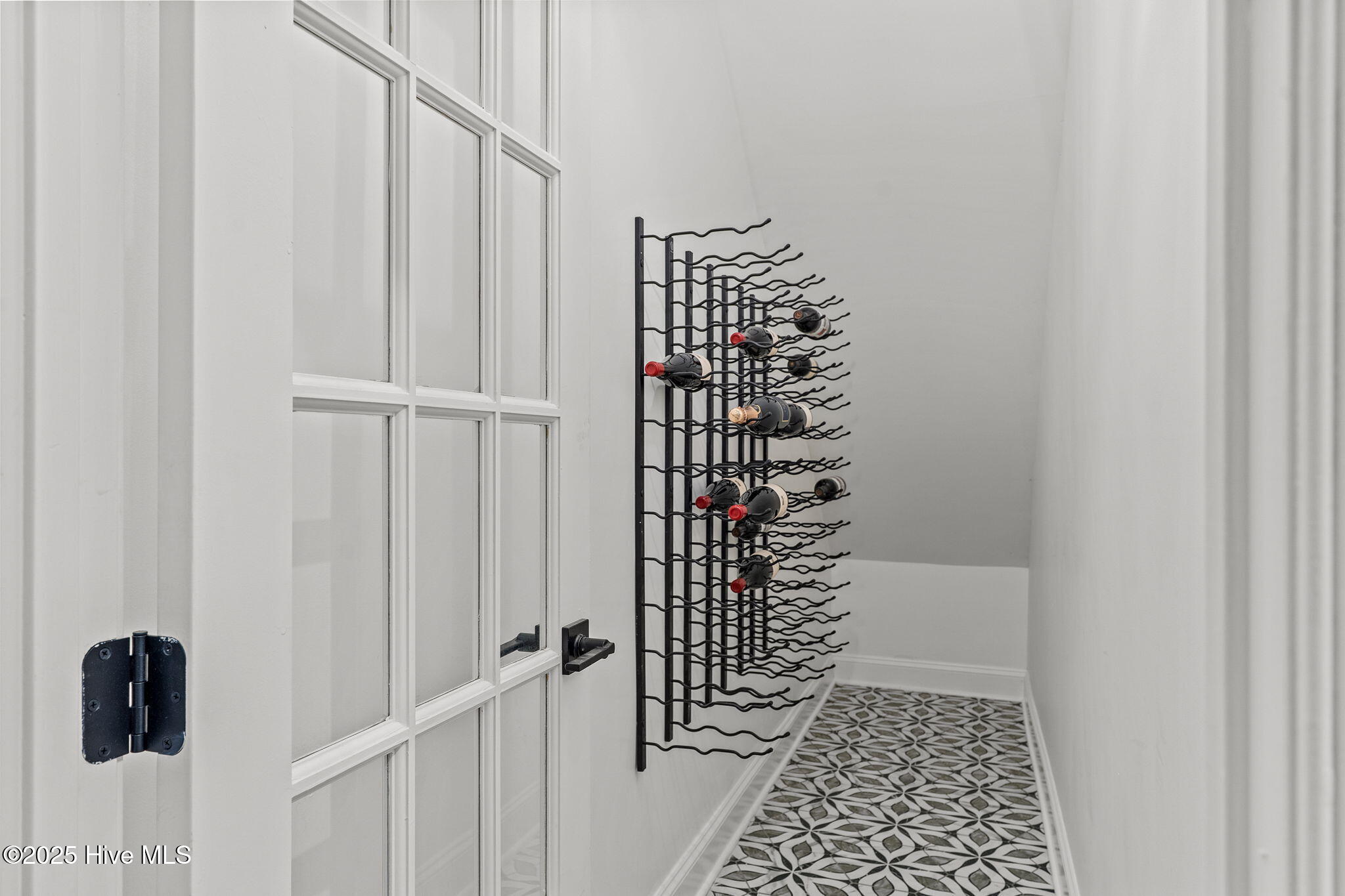 The first level features wide plank white oak flooring, tall ceilings, a welcoming drop zone, wine storage, powder room, full guest suite with private bath, and a spacious laundry room. Two staircases offer convenient flow to the second floor.