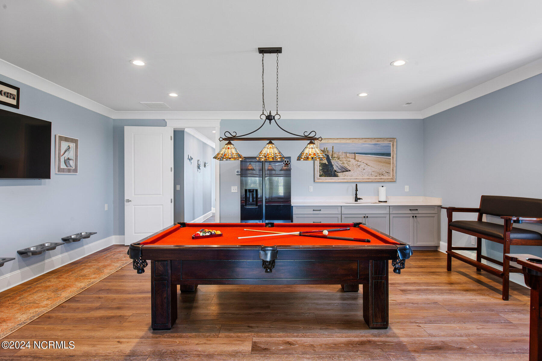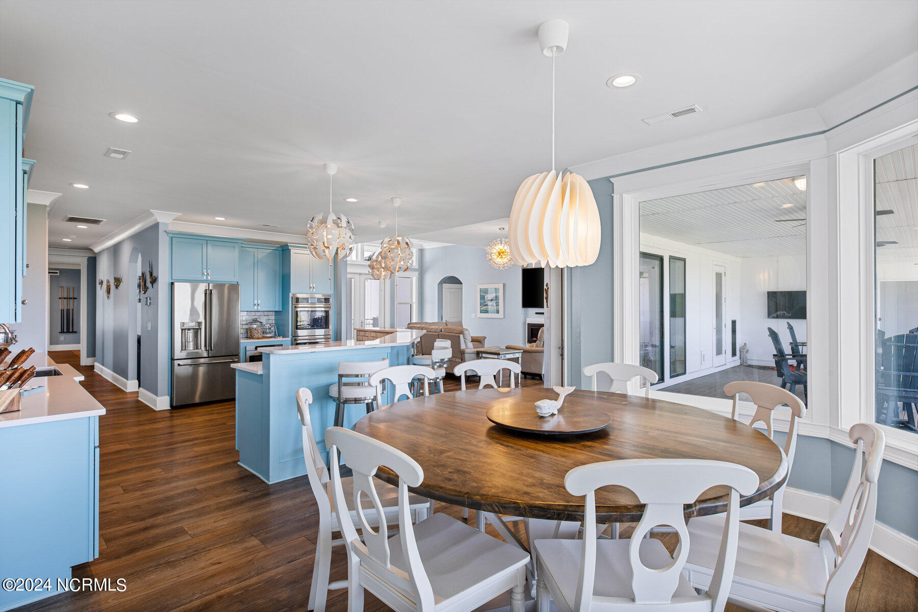 Entertain guests in style with an in-ground heated pool and outdoor kitchen located on the expansive patio, creating the ultimate setting for gatherings.