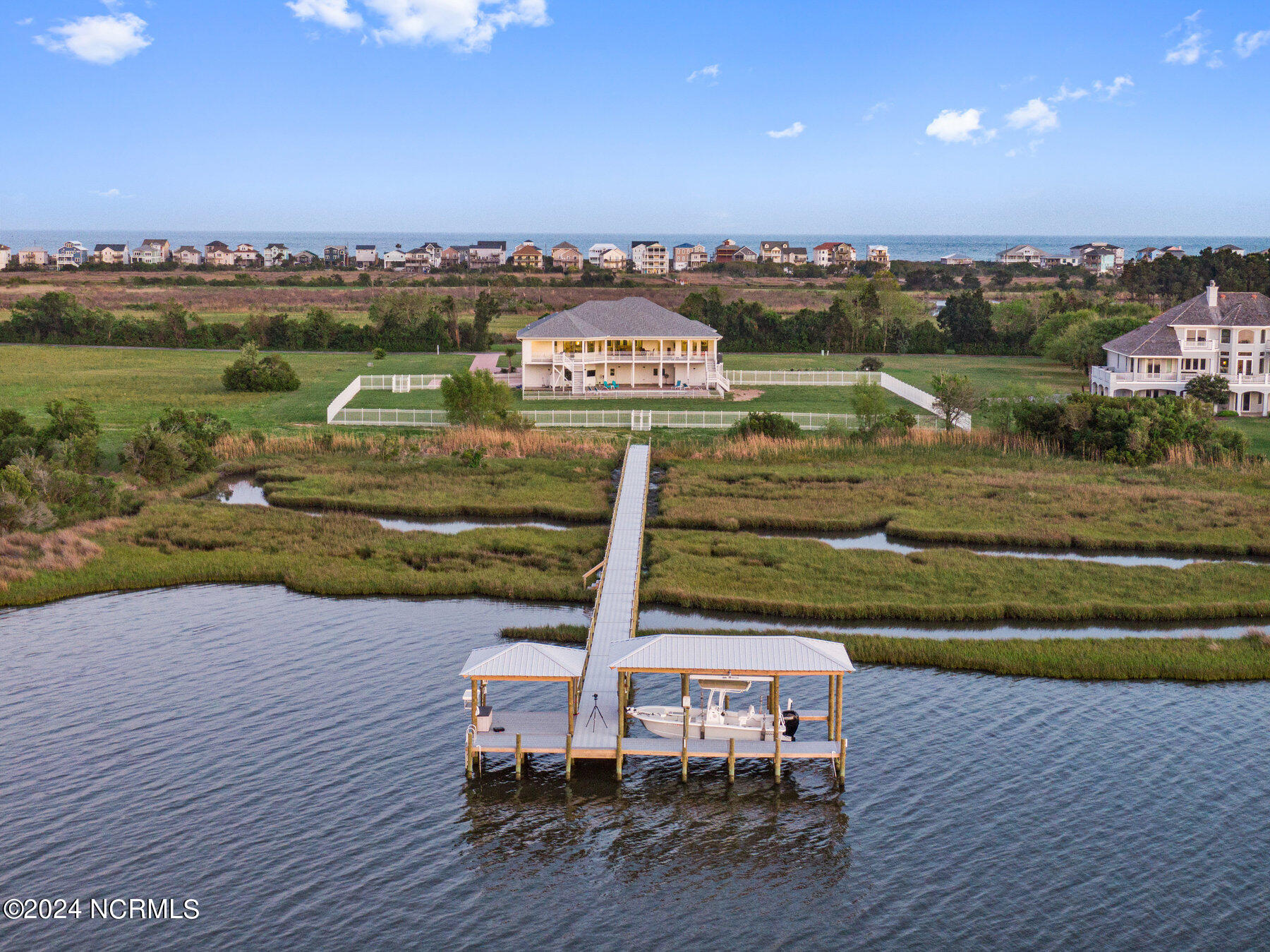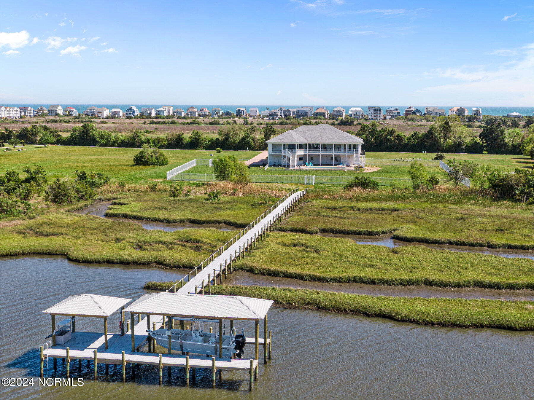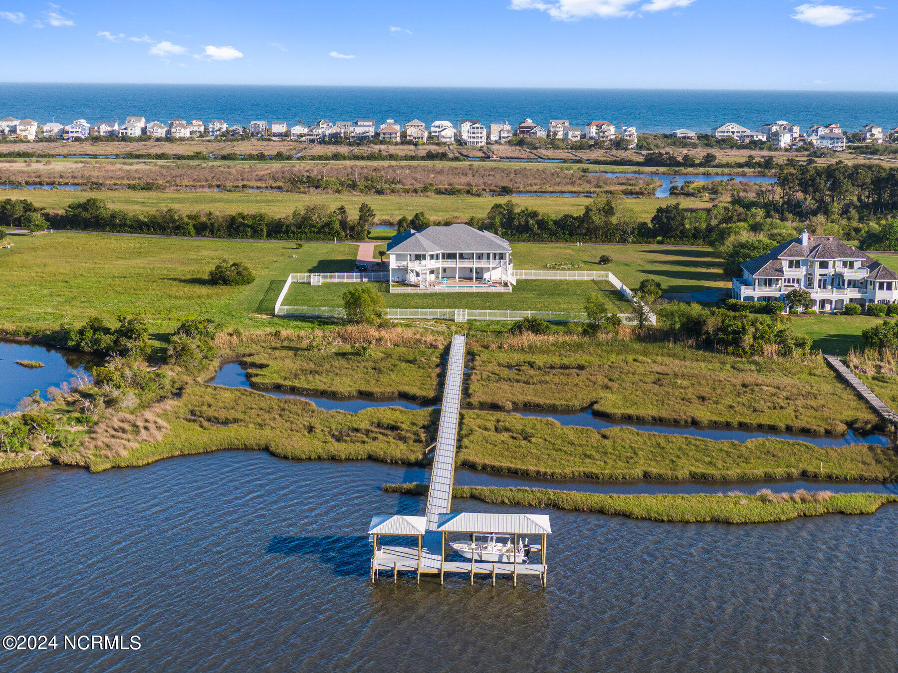 MOVE IN READY!!! Welcome to 16 Hunter Heath Dr, a luxurious waterfront oasis nestled within the prestigious gated community of Ashe Island Estates in North Topsail Beach, NC. This stunning 4358 square foot residence offers unparalleled views of the tranquil Intracoastal Waterway and boasts a plethora of lavish amenities.