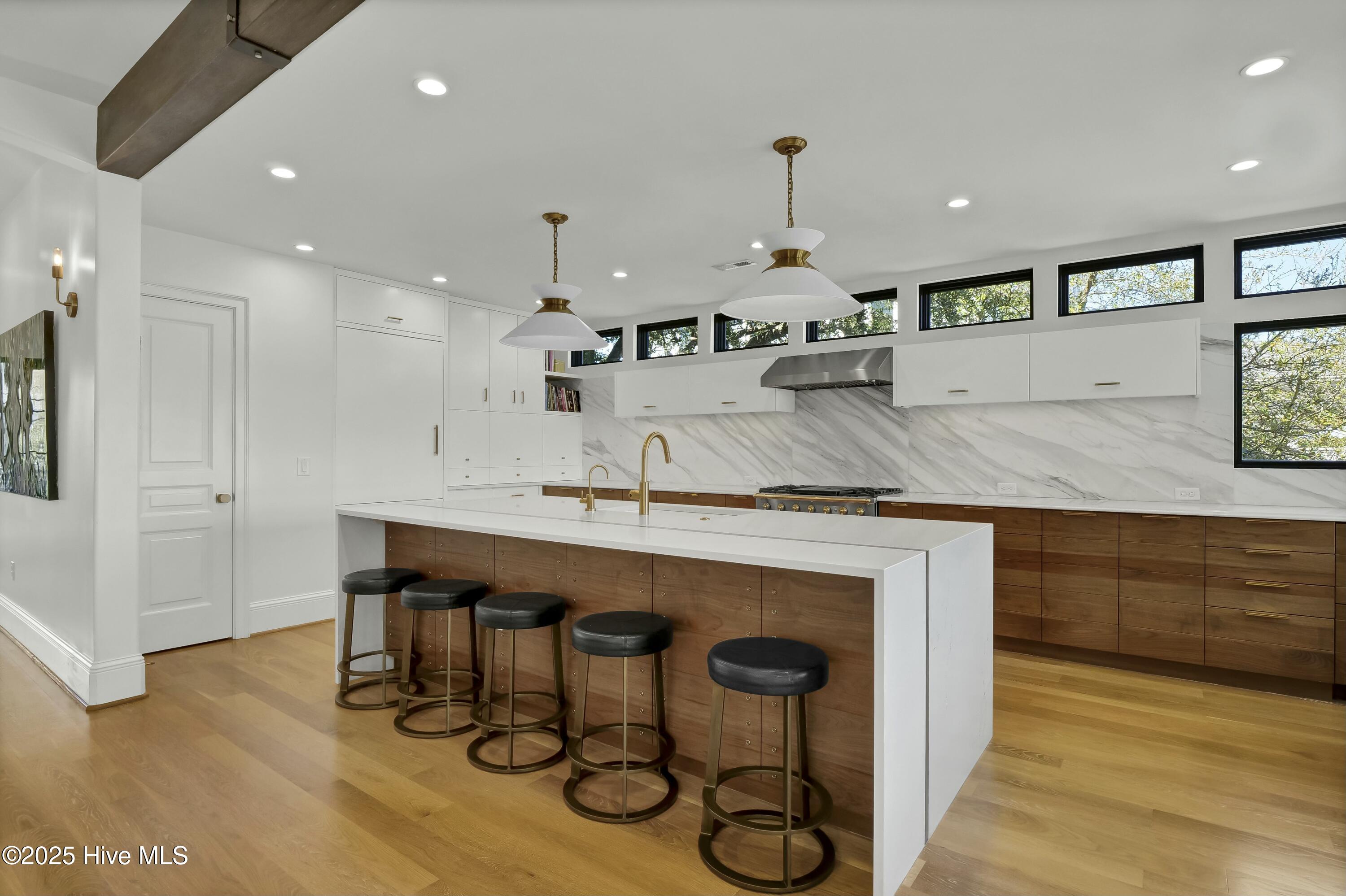 This magnificent five bedroom, four bath residence boasts pristine white oak floors, stunning marble and stone finishes, and an overall ambiance that radiates warmth and elegance at every turn. The state-of-the-art kitchen features a La Cornue stove, two cooler drawers, and a sleek, modern design that promotes a clutter-free cooking experience. The expansive island is ideal for entertaining, while the adjoining bar area with a wine cooler adds a touch of sophistication. Every level of this home offers breathtaking, panoramic views, with two spectacular rooftop decks that capture sweeping vistas of either the sparkling ocean or the serene marshlands--perfect for unwinding or hosting unforgettable gatherings.