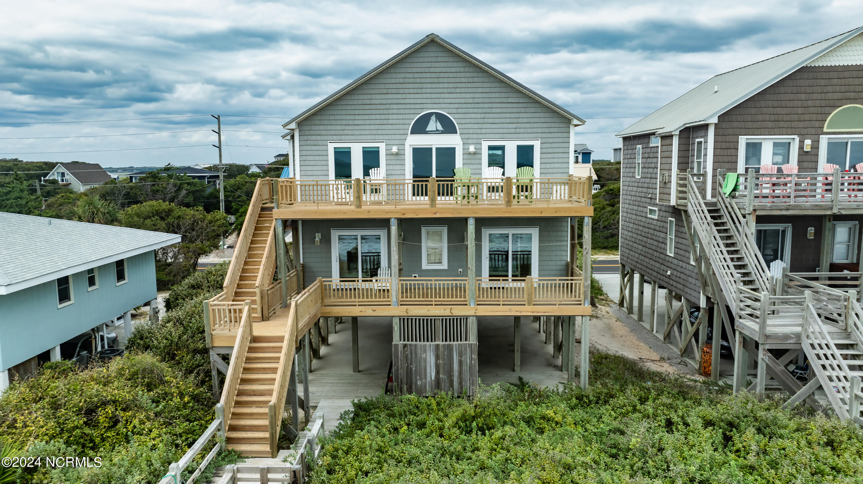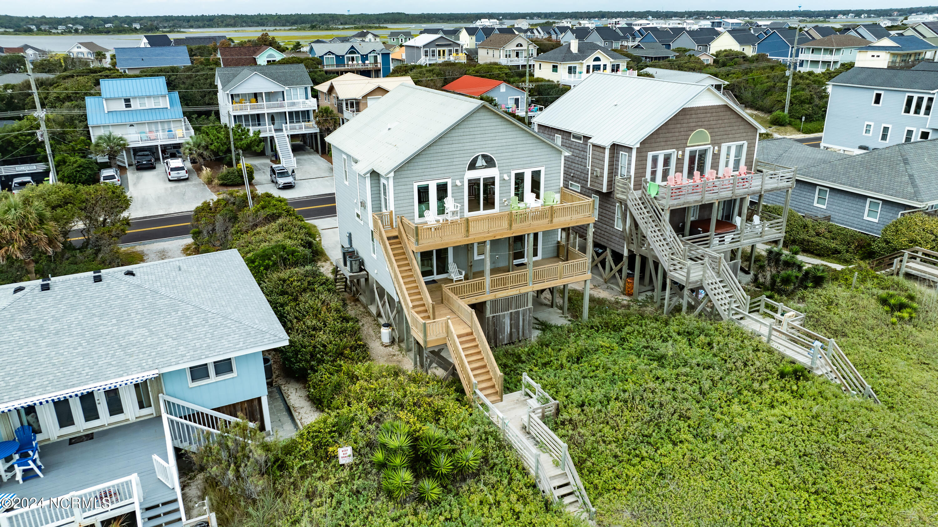 Stunning, oceanfront, reverse floor plan home with incredible views. This home boasts 5 bedrooms, 4 baths, vaulted ceiling, wainscoting and fireplace in the open concept main room, and 2 master bedroom suites. Located in Surf City near local restaurants, fishing pier, parks, and shops. Offered fully furnished, this home has it all and will make a great second home and/or investment property, currently has rental history.