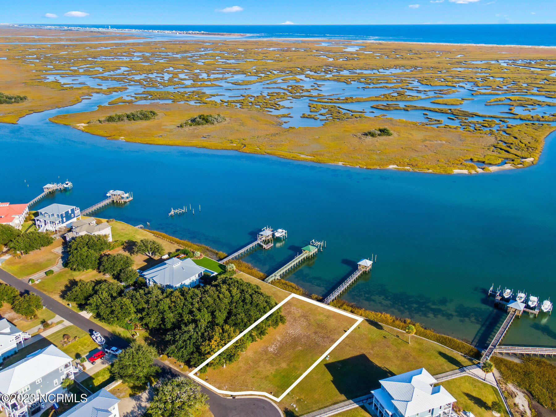 Extraordinary Intracoastal Waterway front lot, one of the last of its kind, offering unparalleled ocean views over the scenic Lea and Hutaff Islands. This property presents a unique opportunity to own a piece of this highly sought-after location. The lot comes with a private pier and gazebo, perfect for your boat dock, and enjoying the stunning panoramic ocean views and the soothing sounds of the waves. Imagine starting your day with the serene sight of the sun rising over the Atlantic Ocean. This is more than just a property; it's a lifestyle of tranquility, beauty and boating. Don't miss this rare chance to build your dream home in this picturesque setting.