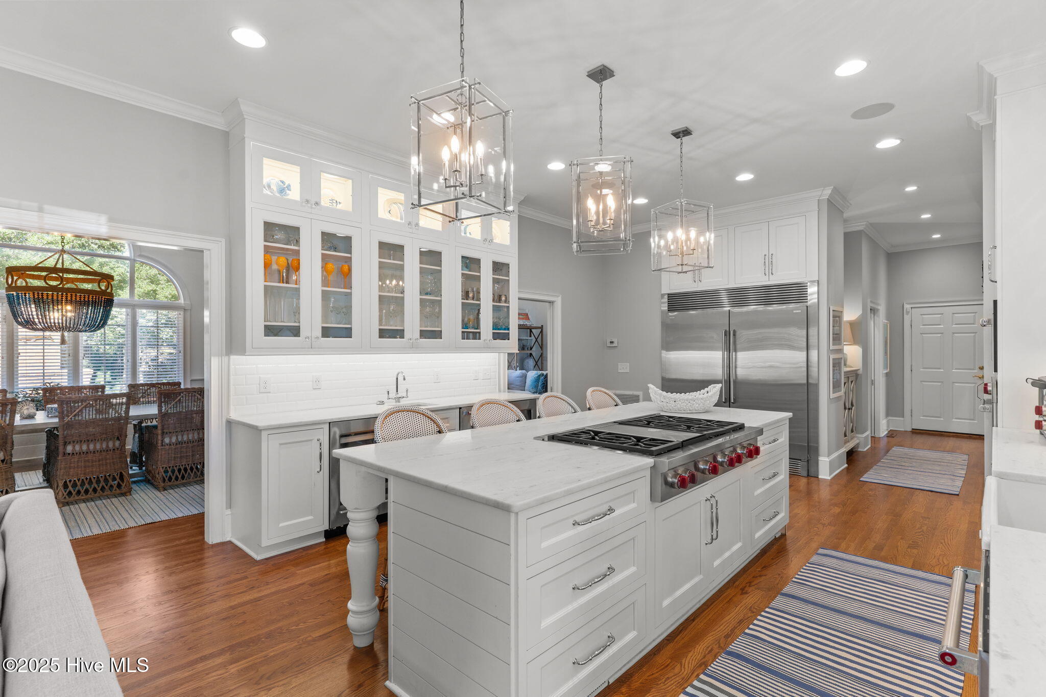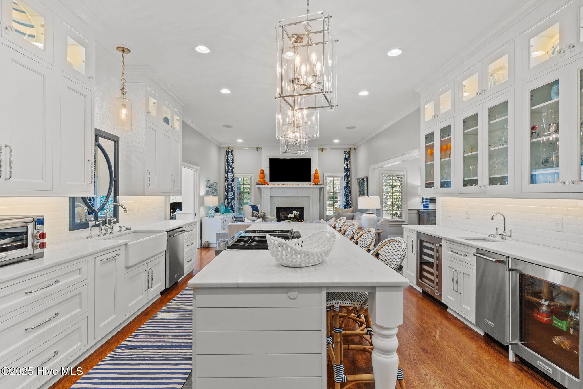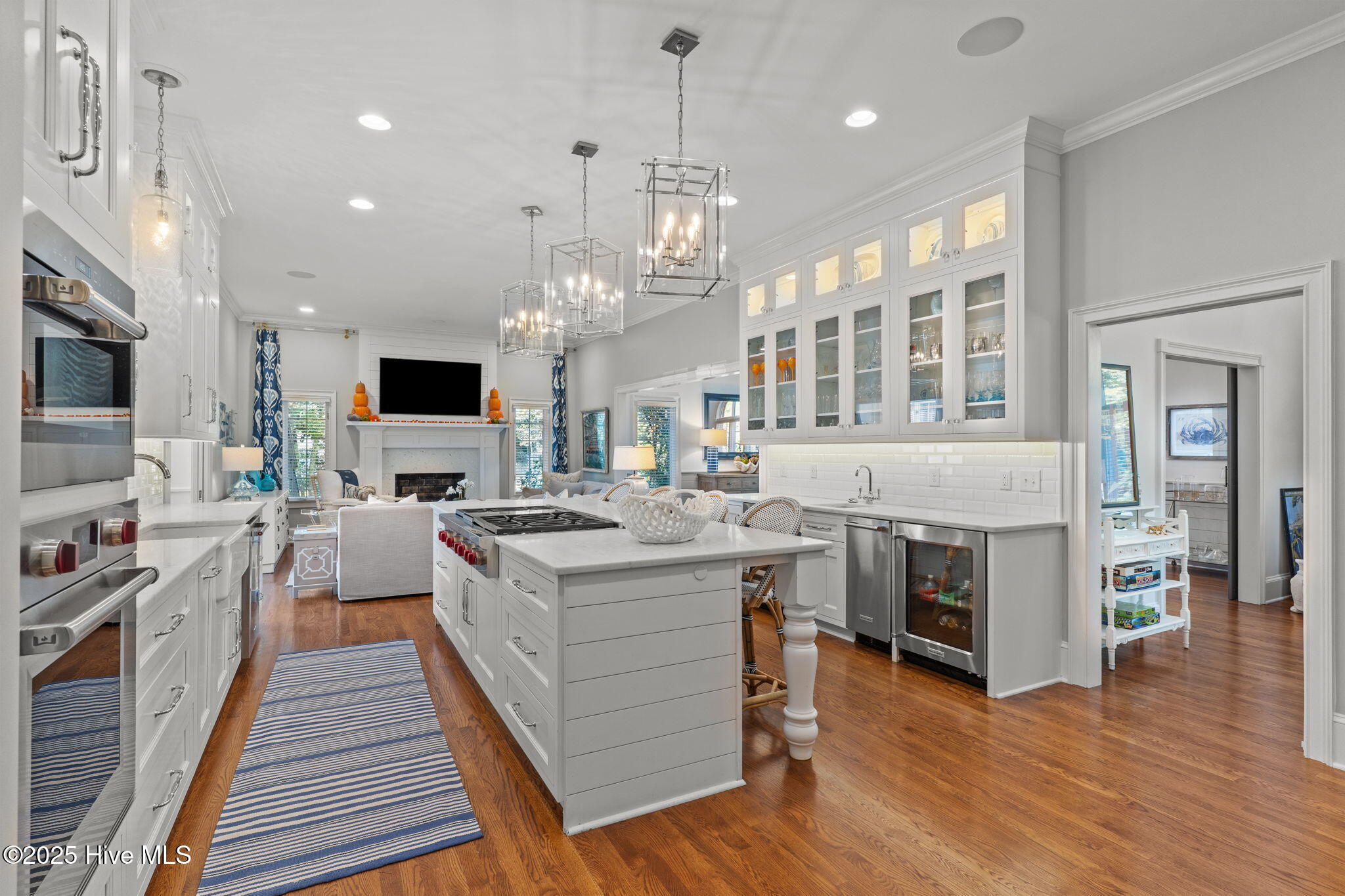 Step inside to an inviting foyer that opens to the light-filled living room and a private office, creating a welcoming sense of openness. The floor plan flows seamlessly through the breakfast area, gourmet kitchen, elegant dining room, and expansive den, offering an ideal layout for both everyday living and entertaining. The show-stopping kitchen features a massive island, Wolf range, oversized stainless refrigerator, wine bar, and wet bar -- a true chef's dream and gathering space for family and friends.