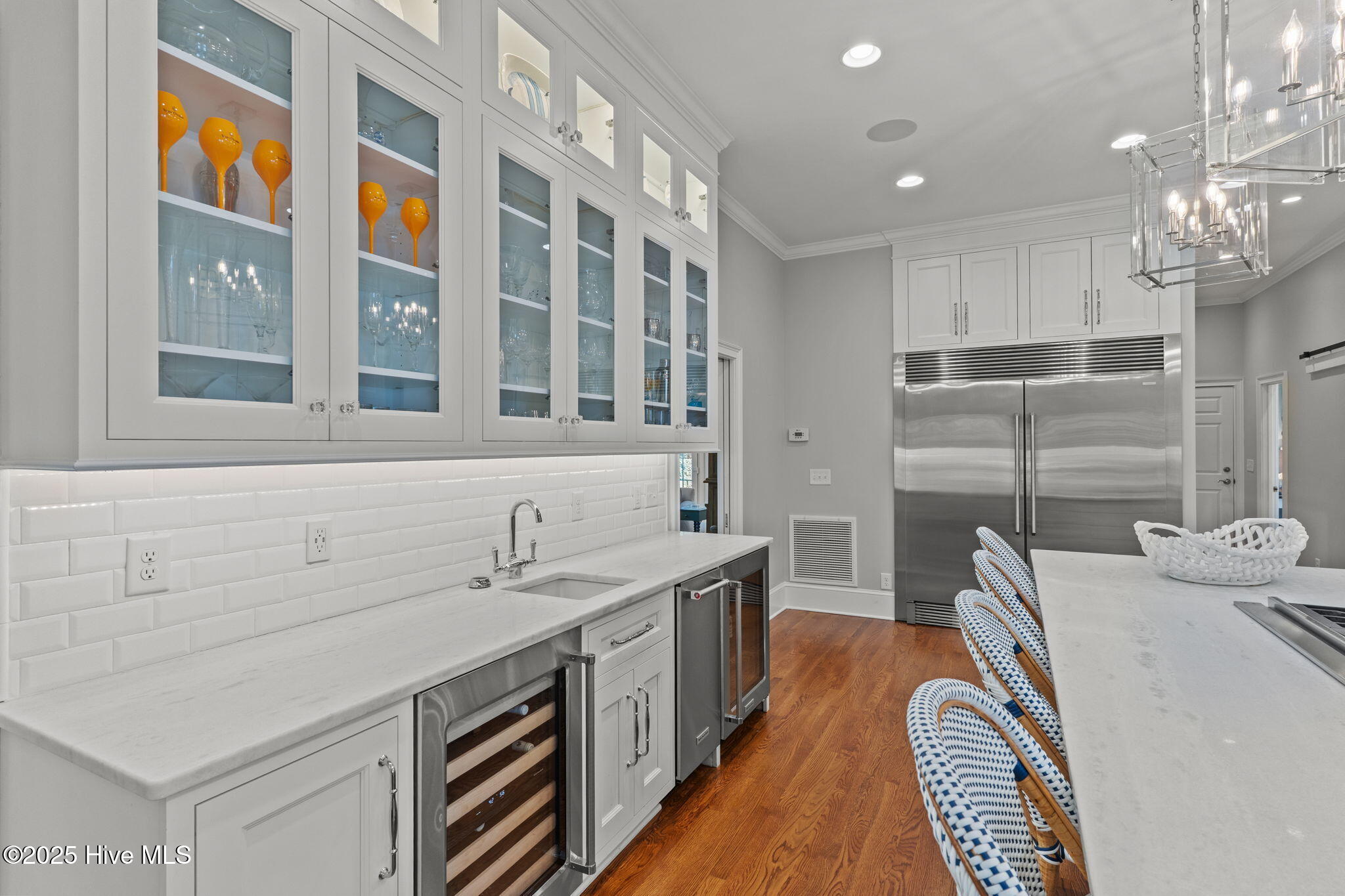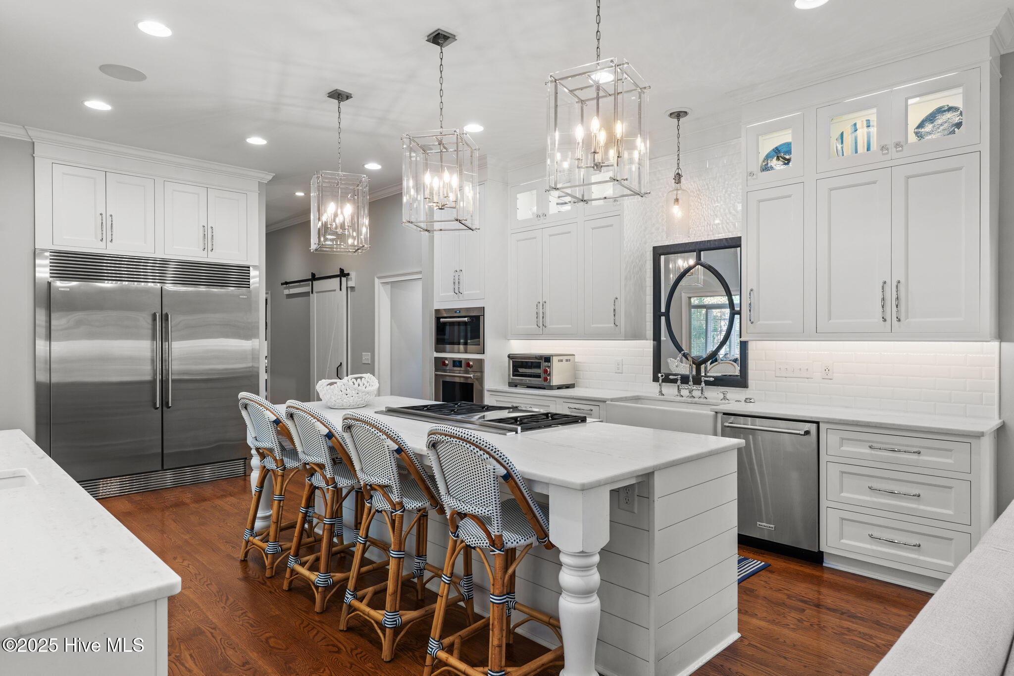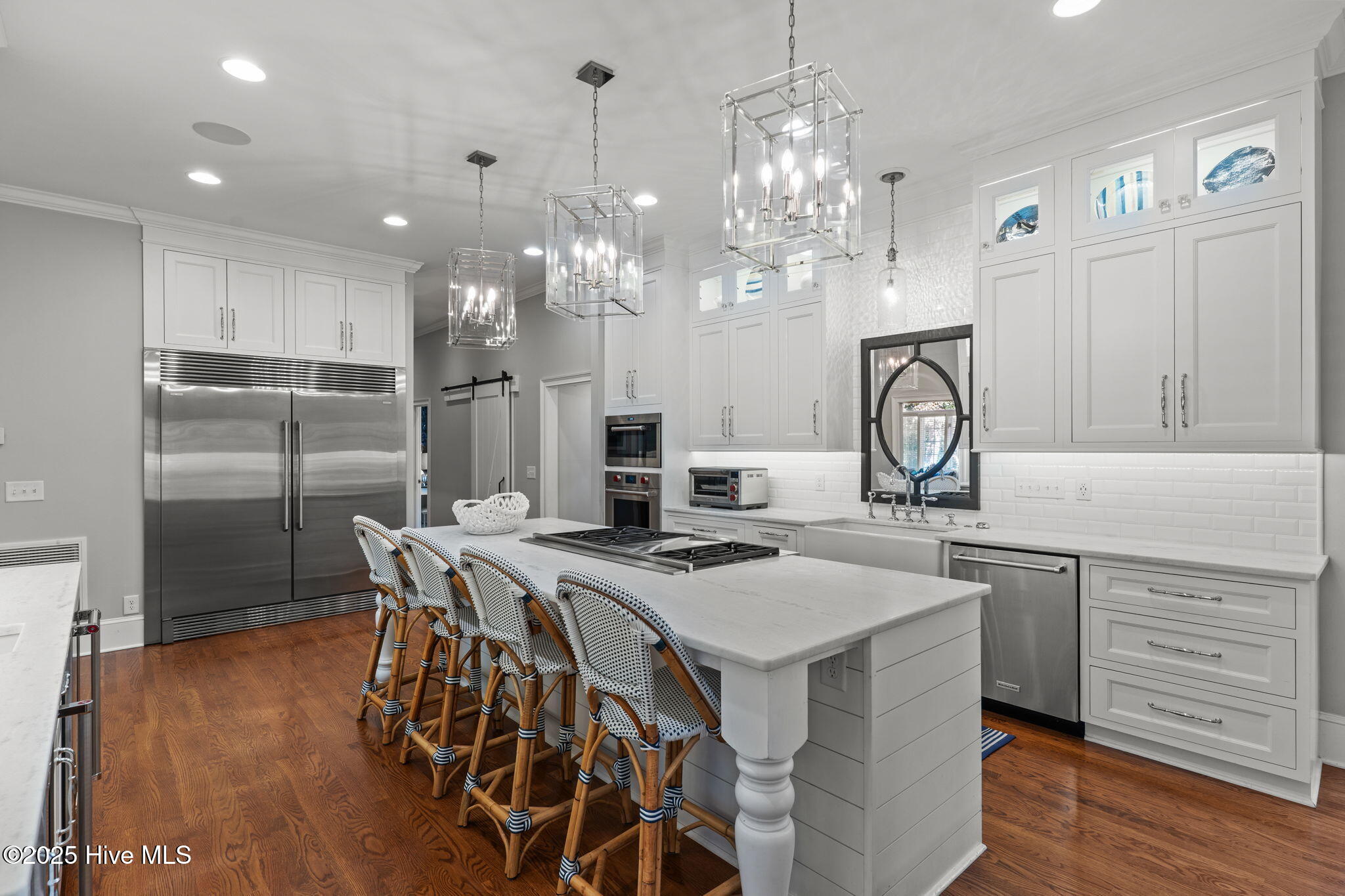 Step inside to an inviting foyer that opens to the light-filled living room and a private office, creating a welcoming sense of openness. The floor plan flows seamlessly through the breakfast area, gourmet kitchen, elegant dining room, and expansive den, offering an ideal layout for both everyday living and entertaining. The show-stopping kitchen features a massive island, Wolf range, oversized stainless refrigerator, wine bar, and wet bar -- a true chef's dream and gathering space for family and friends.