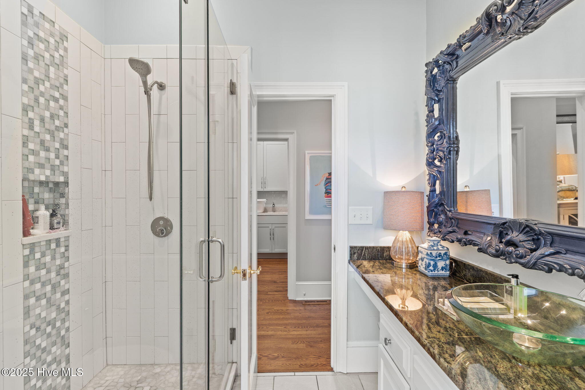 Step outside to your private backyard oasis, where a sprawling patio, outdoor wood-burning fireplace, and peaceful ponds create the perfect setting for relaxing or entertaining. Surrounded by manicured landscaping and nature, this home offers a rare retreat-like feel just minutes from Wrightsville Beach, shopping, and dining.