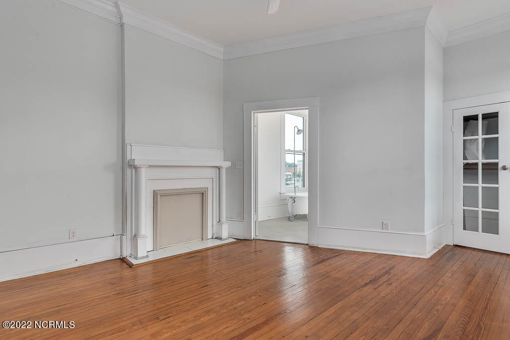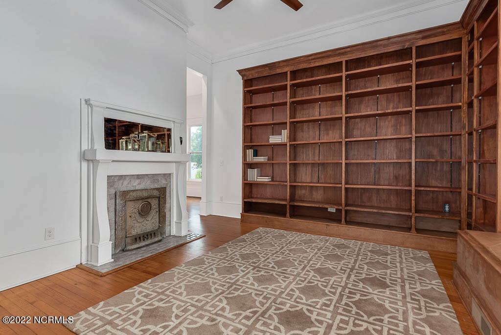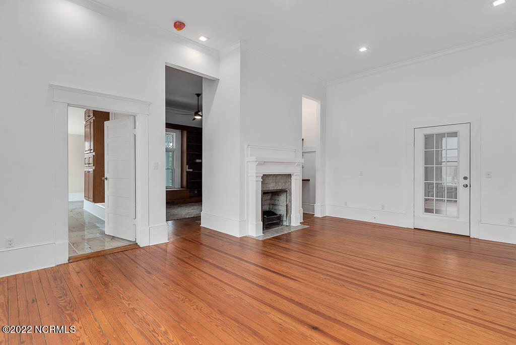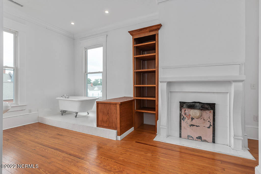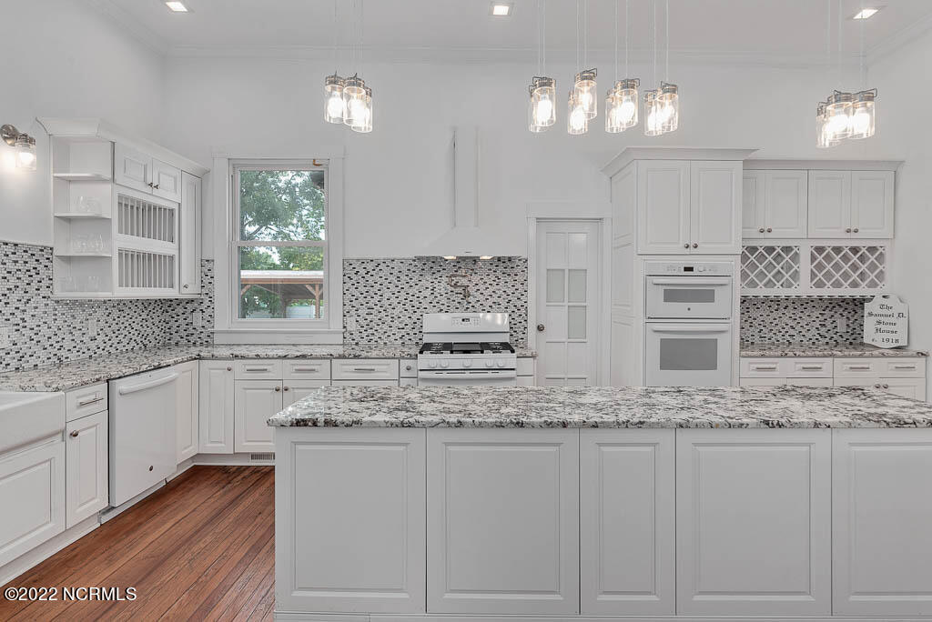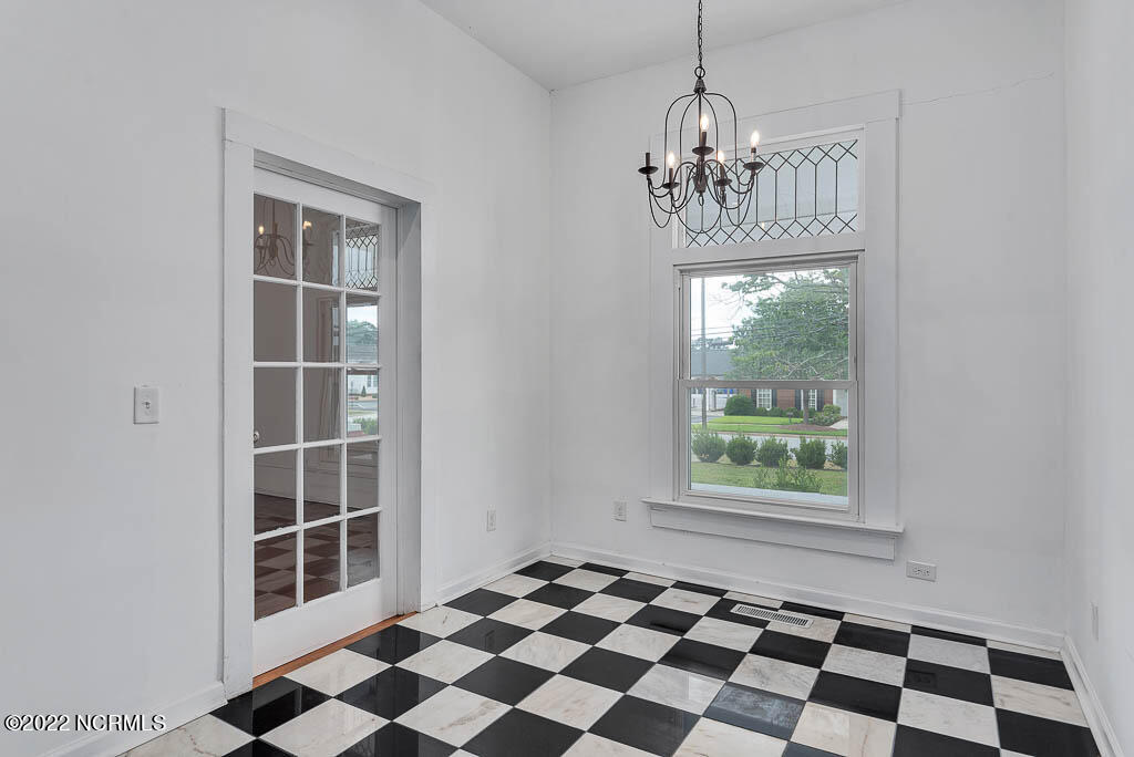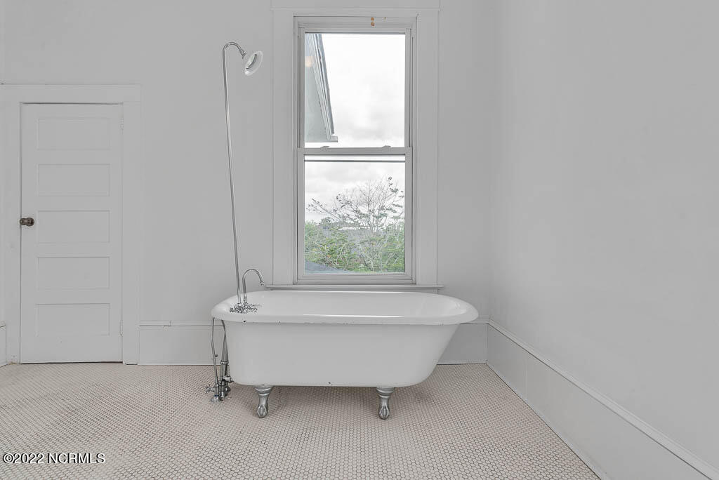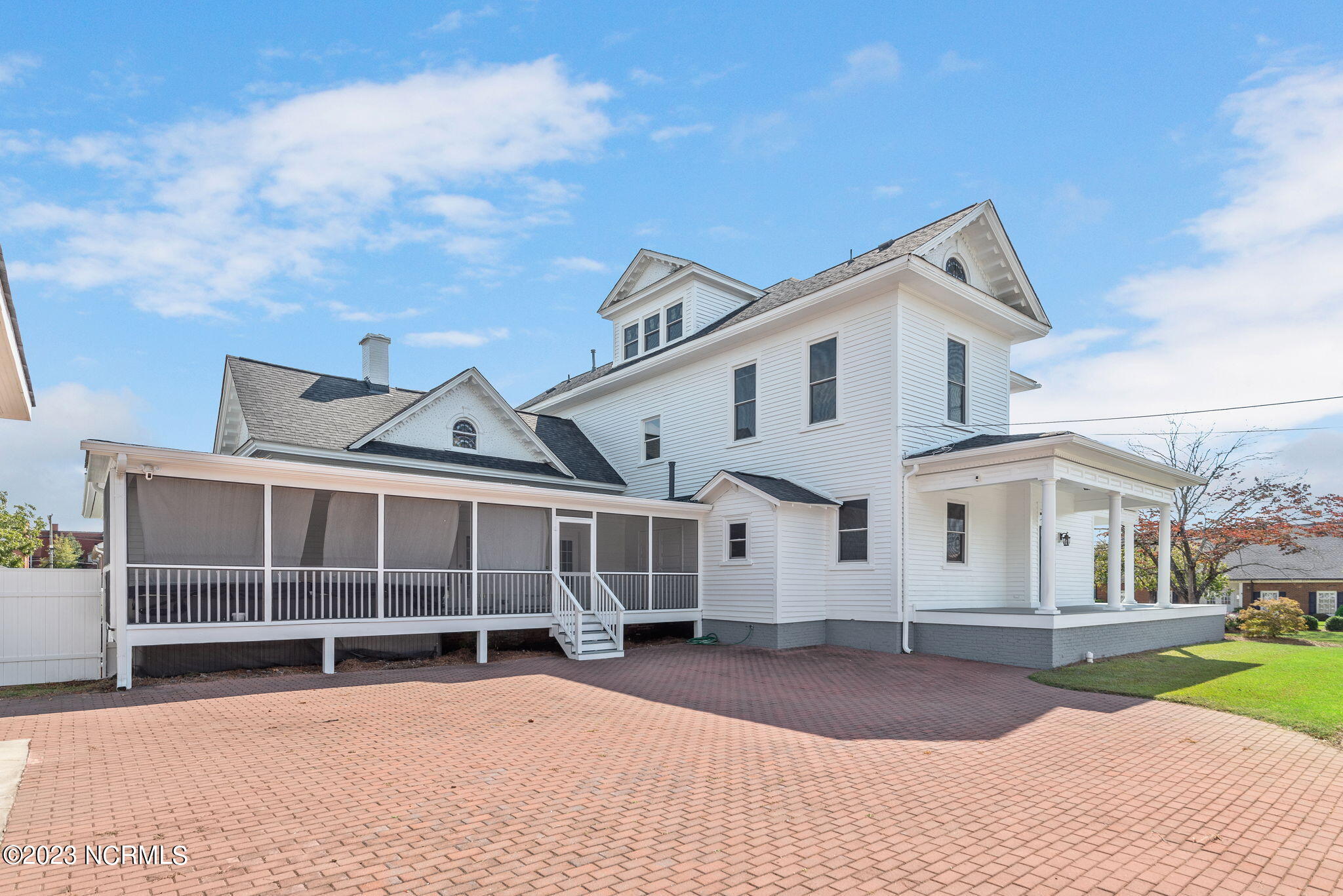 Recently sanded and painted! Check out this imposing two-story, double-pile framed house offers a unique blend of southern charm with modern upgrades. Its historic ''T'' shape comes with a hip roof above the front portion and gables on either side. The home's fluted Corinthian columns create an amazing curb appeal. The seemingly endless wraparound porch serves its guests an opportunity for relaxation. Entering the home, you immediately encounter beautiful wooden floors, elegant wainscoting and dentil crown molding. The impressive new kitchen offers granite counter tops, light fixtures, new appliances and an island that serves as an ideal gathering place. Off the study, there is a bedroom with a newly-added kitchenette equipped with a sink, microwave, mini-fridge and stovetop. There are several bedrooms on the first floor, an oversized laundry room and a powder room. The stately stairwell with white wooden spindles leads to the second floor where you will find three more bedrooms including the primary. The bathrooms have tile throughout and new clawfoot tubs. The primary bath features double shower heads, two sinks and mirrors. A second story balustraded balcony is on the front and in the rear are the tympanums of the pediment. Venturing up another flight of heart pine treads to the third floor, you will find a carpeted area perfect for a recreational room. On one side of the home, there is a private screened-in porch with an astounding 16-person spa. On the other side, you will enter a private area surrounded by a new white vinyl fence that offers a recently-added in-ground saltwater pool. This layout is perfect for cooling off during NC's warm summers and entertaining guests. This home can serve as the perfect primary residence; however, opportunistic entrepreneurs should take notice as well.