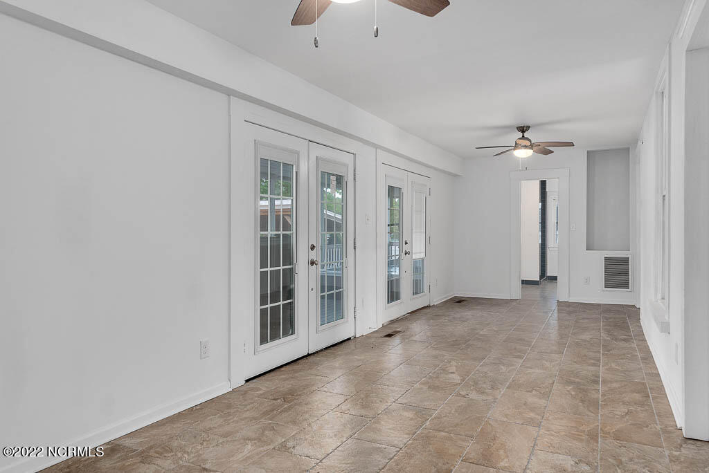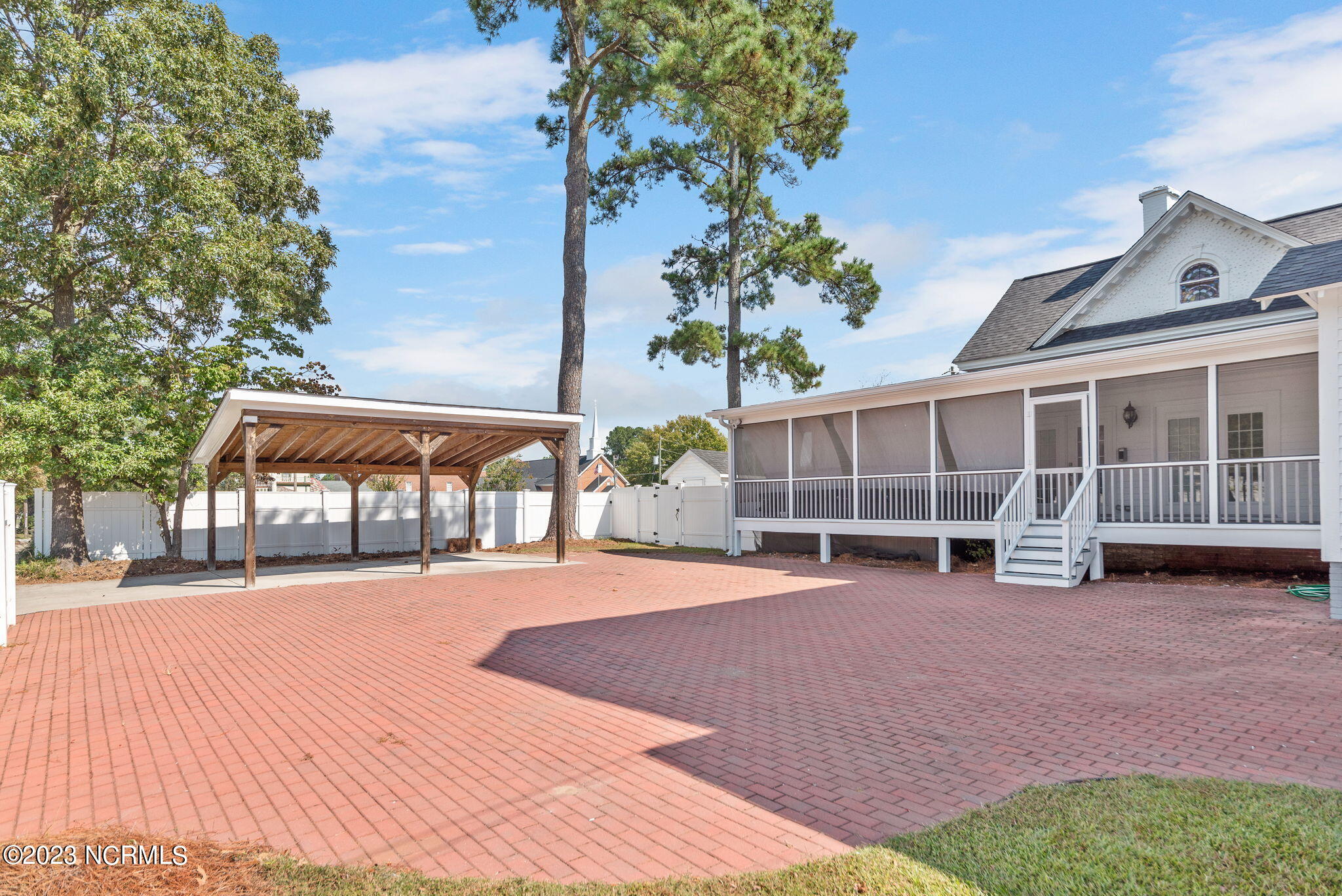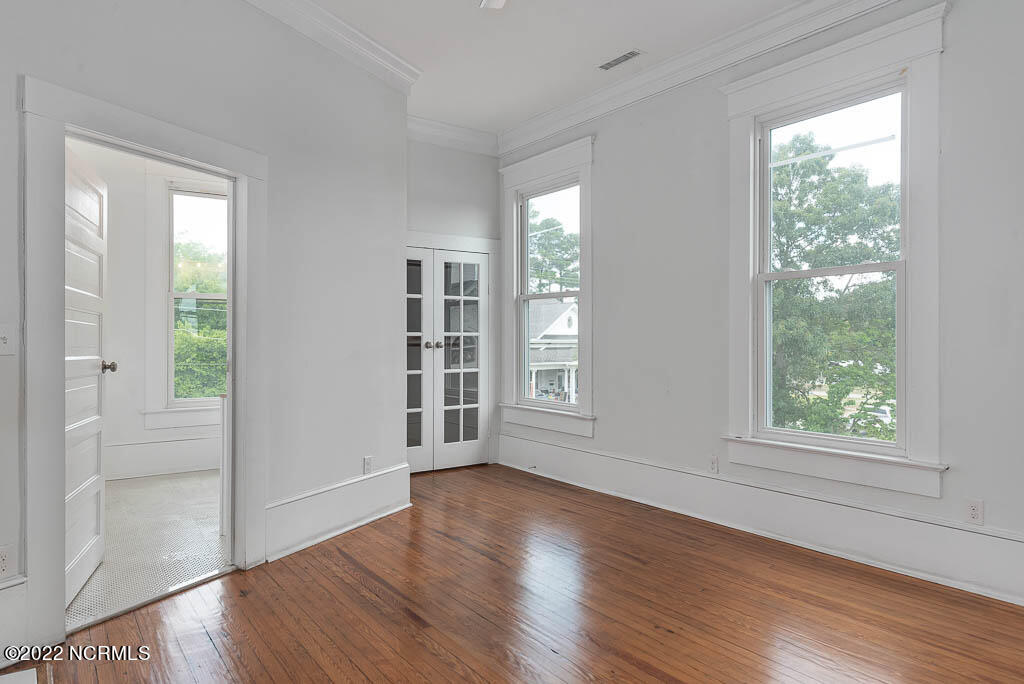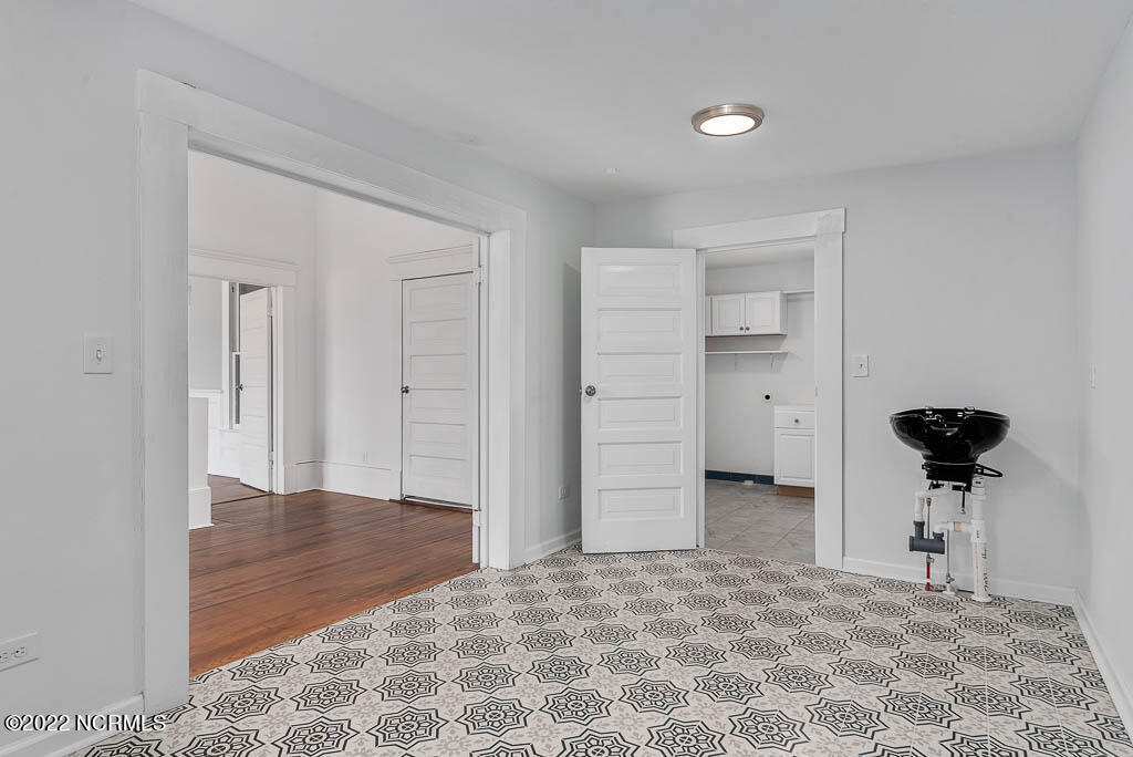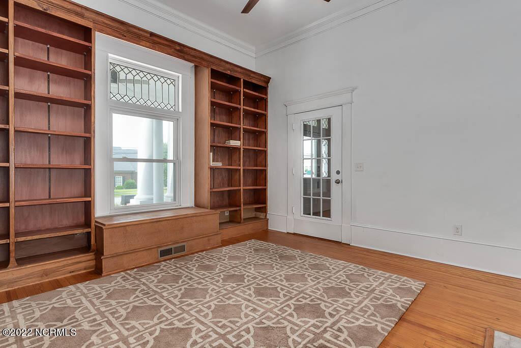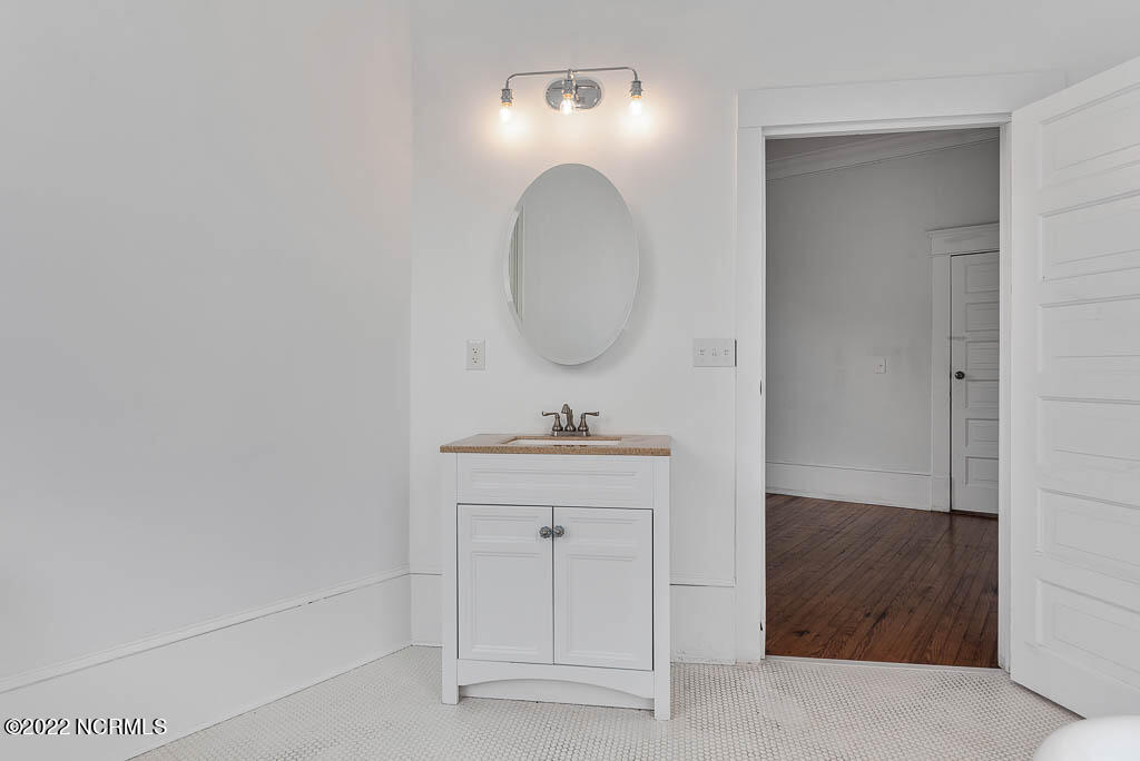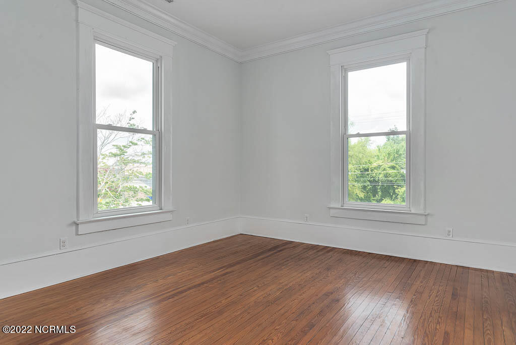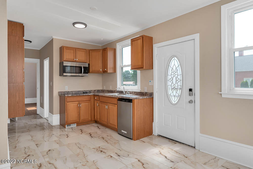 Recently sanded and painted! Check out this imposing two-story, double-pile framed house offers a unique blend of southern charm with modern upgrades. Its historic ''T'' shape comes with a hip roof above the front portion and gables on either side. The home's fluted Corinthian columns create an amazing curb appeal. The seemingly endless wraparound porch serves its guests an opportunity for relaxation. Entering the home, you immediately encounter beautiful wooden floors, elegant wainscoting and dentil crown molding. The impressive new kitchen offers granite counter tops, light fixtures, new appliances and an island that serves as an ideal gathering place. Off the study, there is a bedroom with a newly-added kitchenette equipped with a sink, microwave, mini-fridge and stovetop. There are several bedrooms on the first floor, an oversized laundry room and a powder room. The stately stairwell with white wooden spindles leads to the second floor where you will find three more bedrooms including the primary. The bathrooms have tile throughout and new clawfoot tubs. The primary bath features double shower heads, two sinks and mirrors. A second story balustraded balcony is on the front and in the rear are the tympanums of the pediment. Venturing up another flight of heart pine treads to the third floor, you will find a carpeted area perfect for a recreational room. On one side of the home, there is a private screened-in porch with an astounding 16-person spa. On the other side, you will enter a private area surrounded by a new white vinyl fence that offers a recently-added in-ground saltwater pool. This layout is perfect for cooling off during NC's warm summers and entertaining guests. This home can serve as the perfect primary residence; however, opportunistic entrepreneurs should take notice as well.