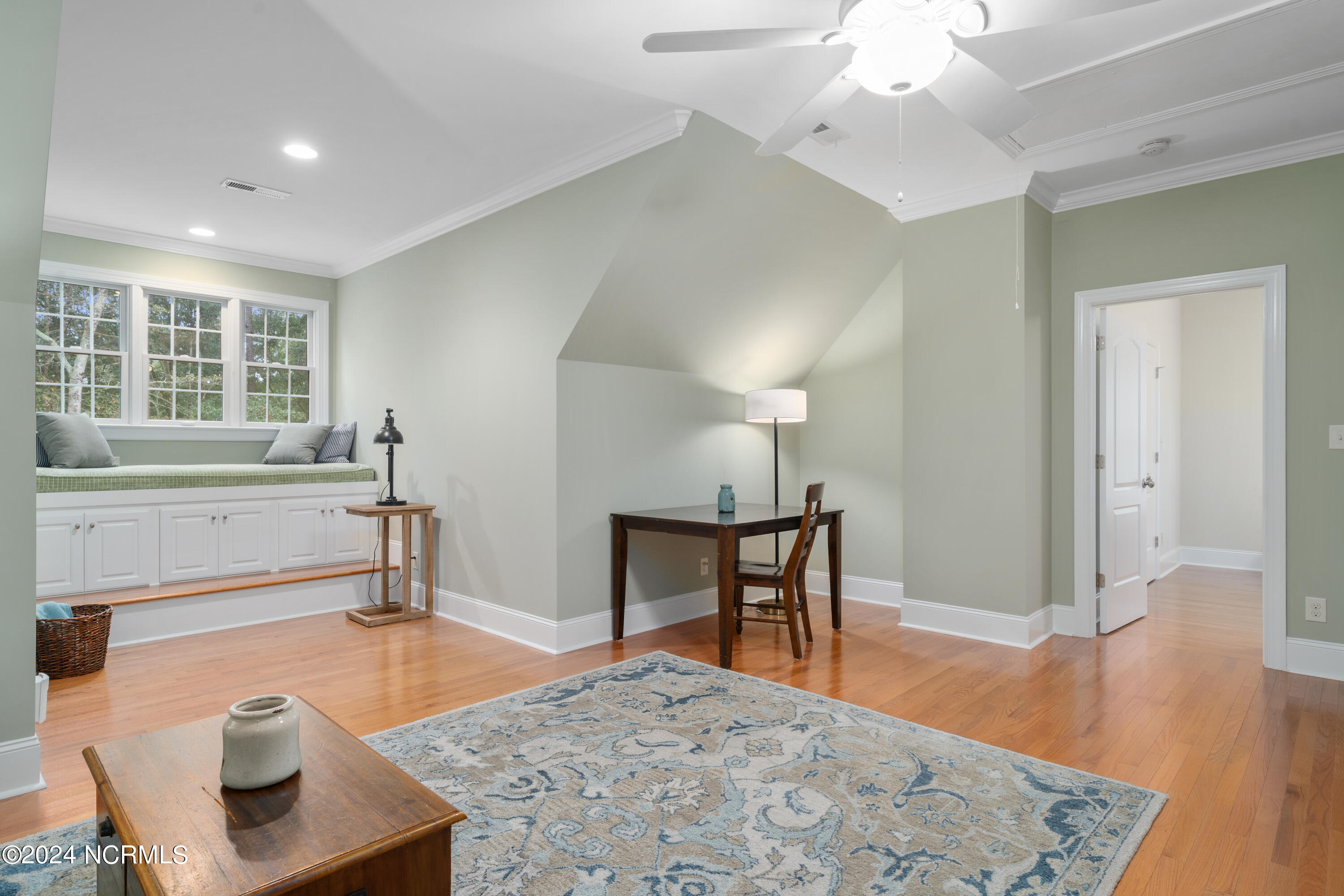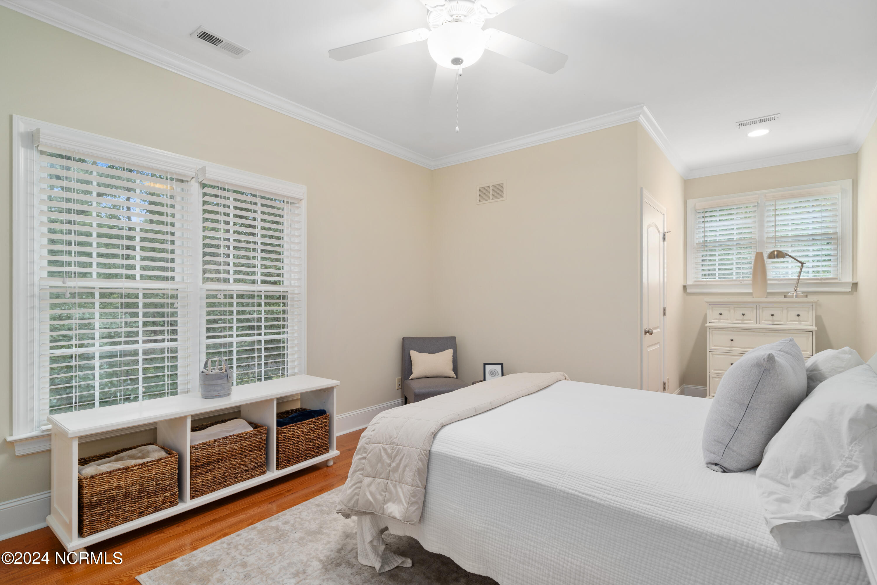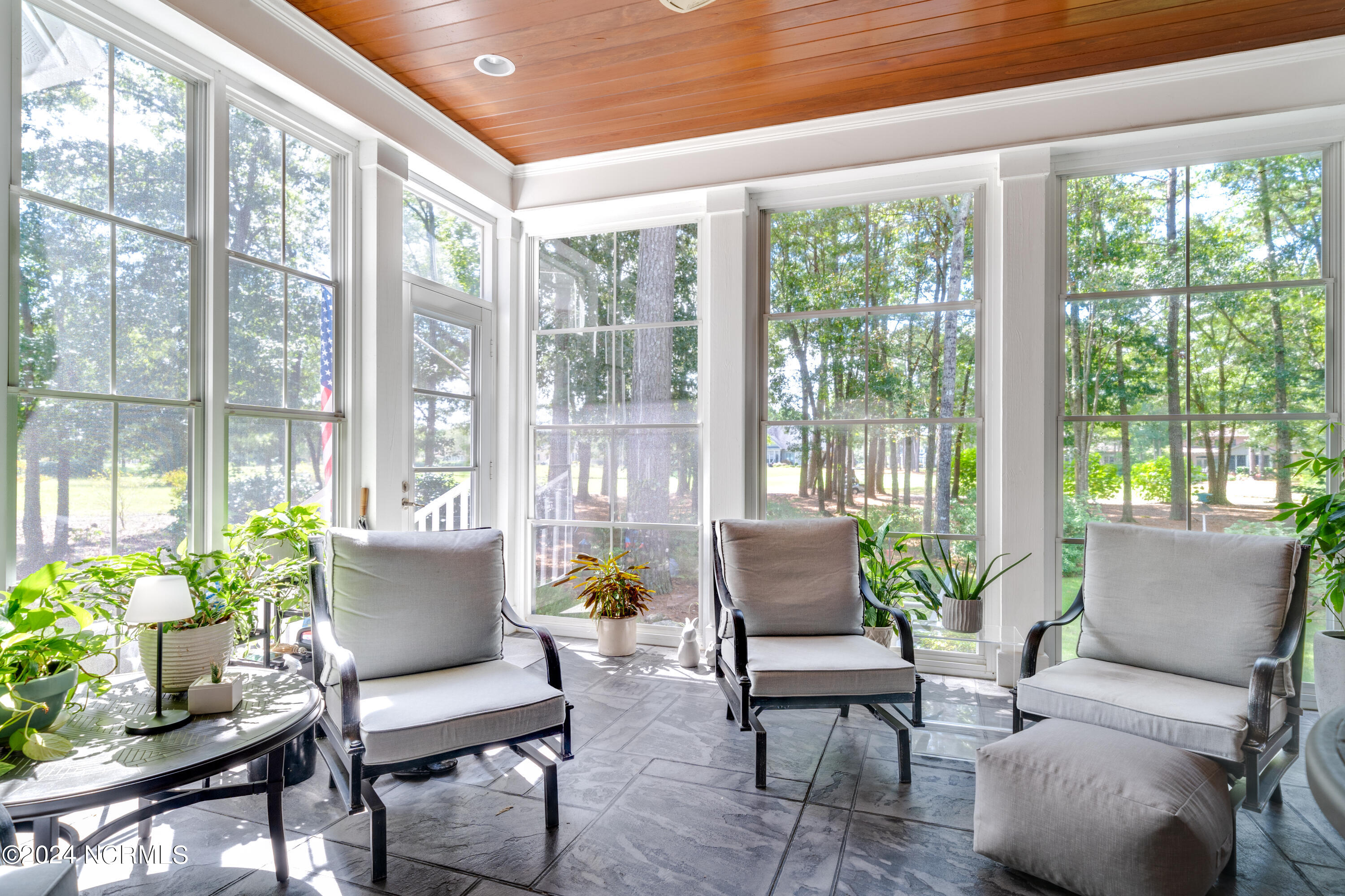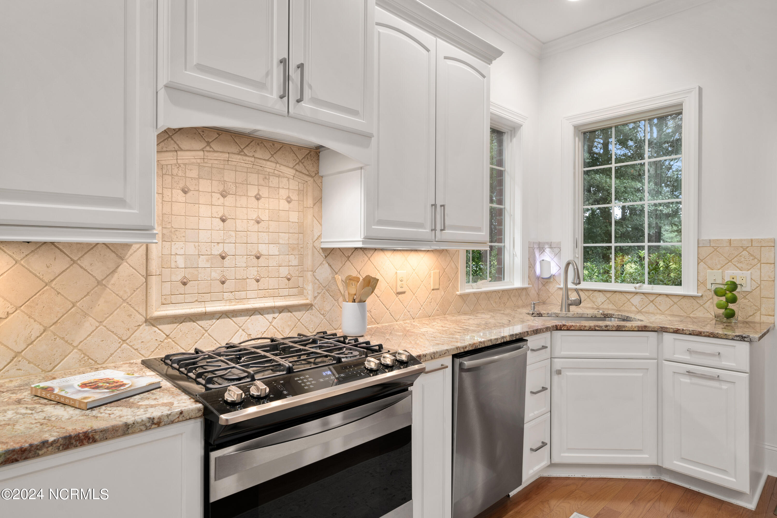Elegant columns and archways enhance the home's clean, neutral aesthetic, while a fireplace framed by built-in shelving adds warmth and sophistication to the living area. Modern conveniences such as leaf filter gutters, a humidifier, and a surround sound system--including on the porch--complete the home. Upstairs, you'll find two oversized, multi-purpose rooms, two additional bedrooms with two full bathrooms, and storage space, perfect for accommodating any lifestyle. The kitchen is a chef's dream, combining style and functionality for everyday living and entertaining. This exceptional home, unaffected by any storms, offers a rare blend of luxury, tranquility, and comfort.''