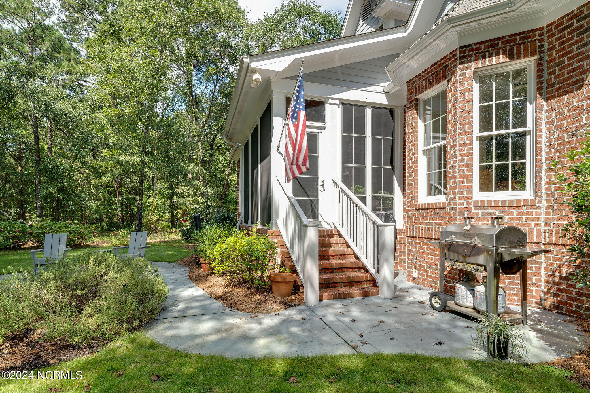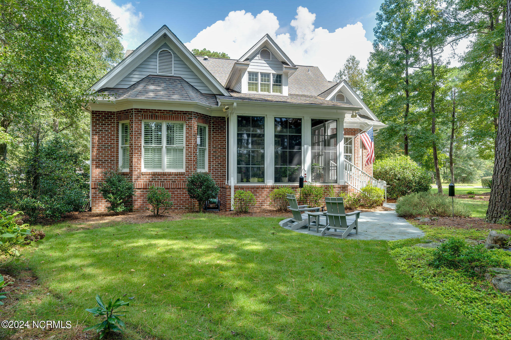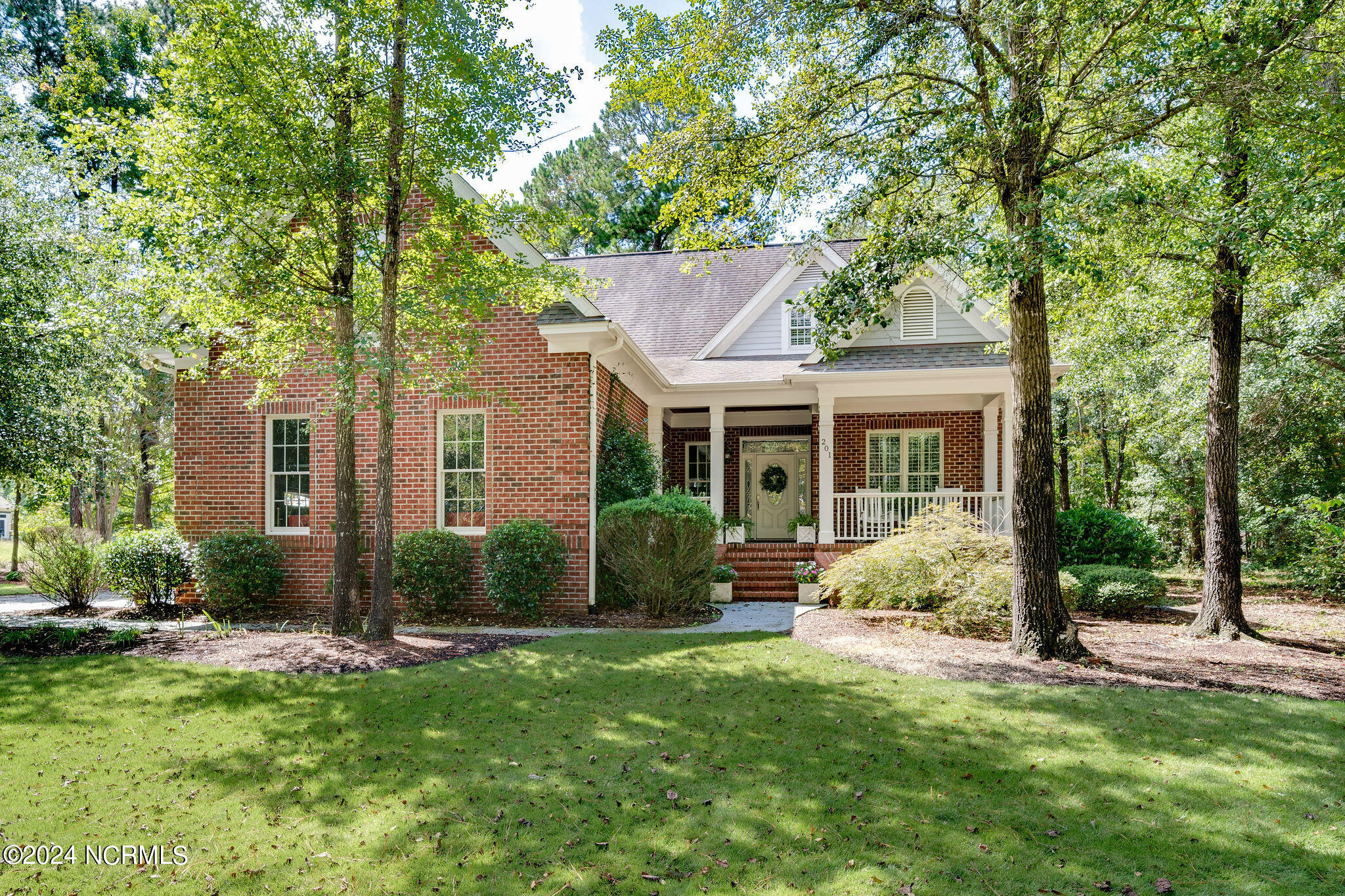 Experience the height of luxury in this custom-built brick home, perfectly nestled on a private, tree-shaded cul-de-sac in the prestigious River Landing Gated Golf Community. Set on peaceful, high grounds, this residence offers stunning views of the 8th green, blending classic charm with modern comforts in a serene and inviting setting. 3,558 square feet of thoughtfully designed living space sitting on a spacious double lot, this two-story home features a charming water feature with sounds of a babbling brook, a cozy windowed-in porch, and a master bedroom conveniently located on the main floor overlooking the greens.