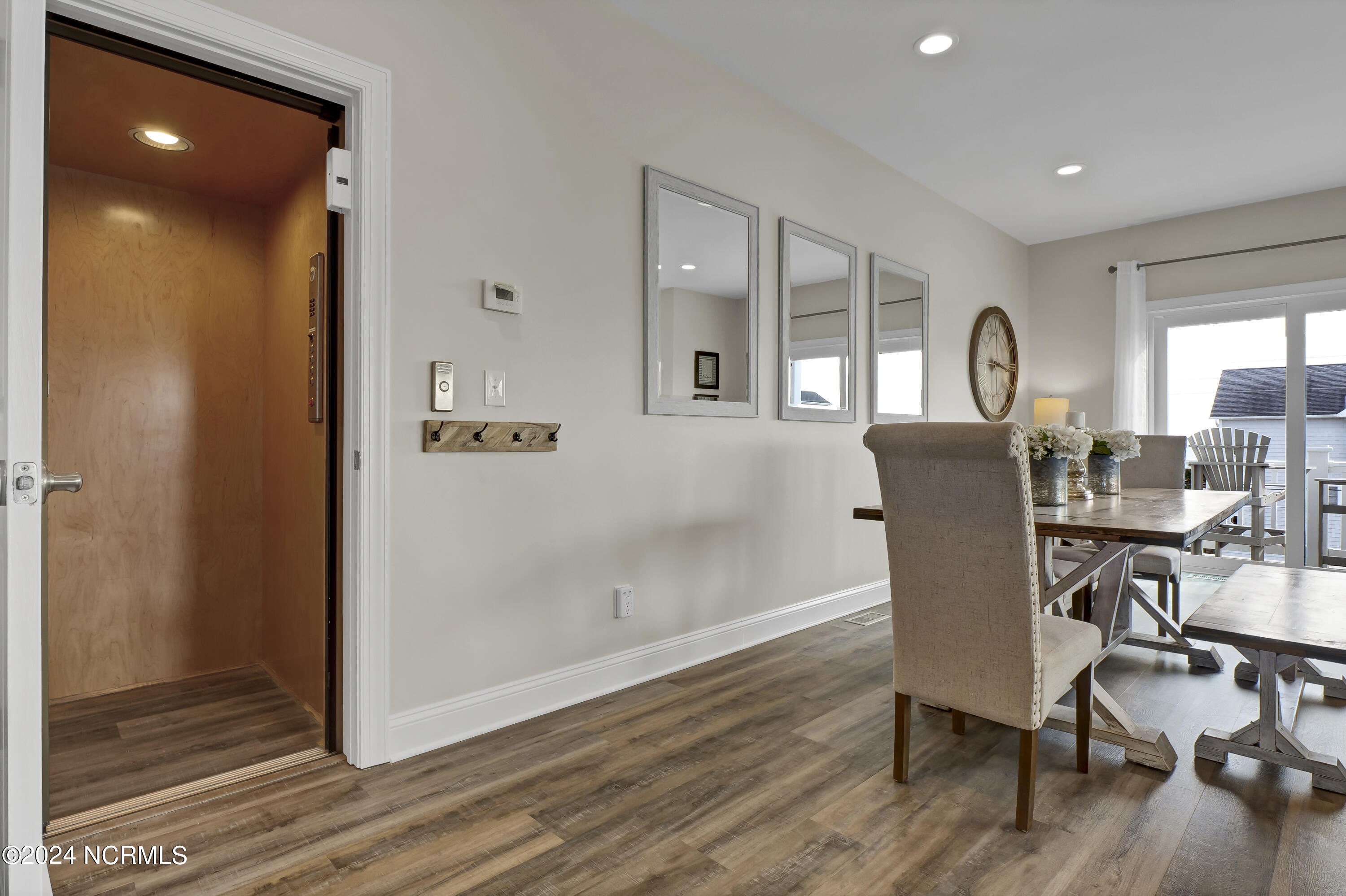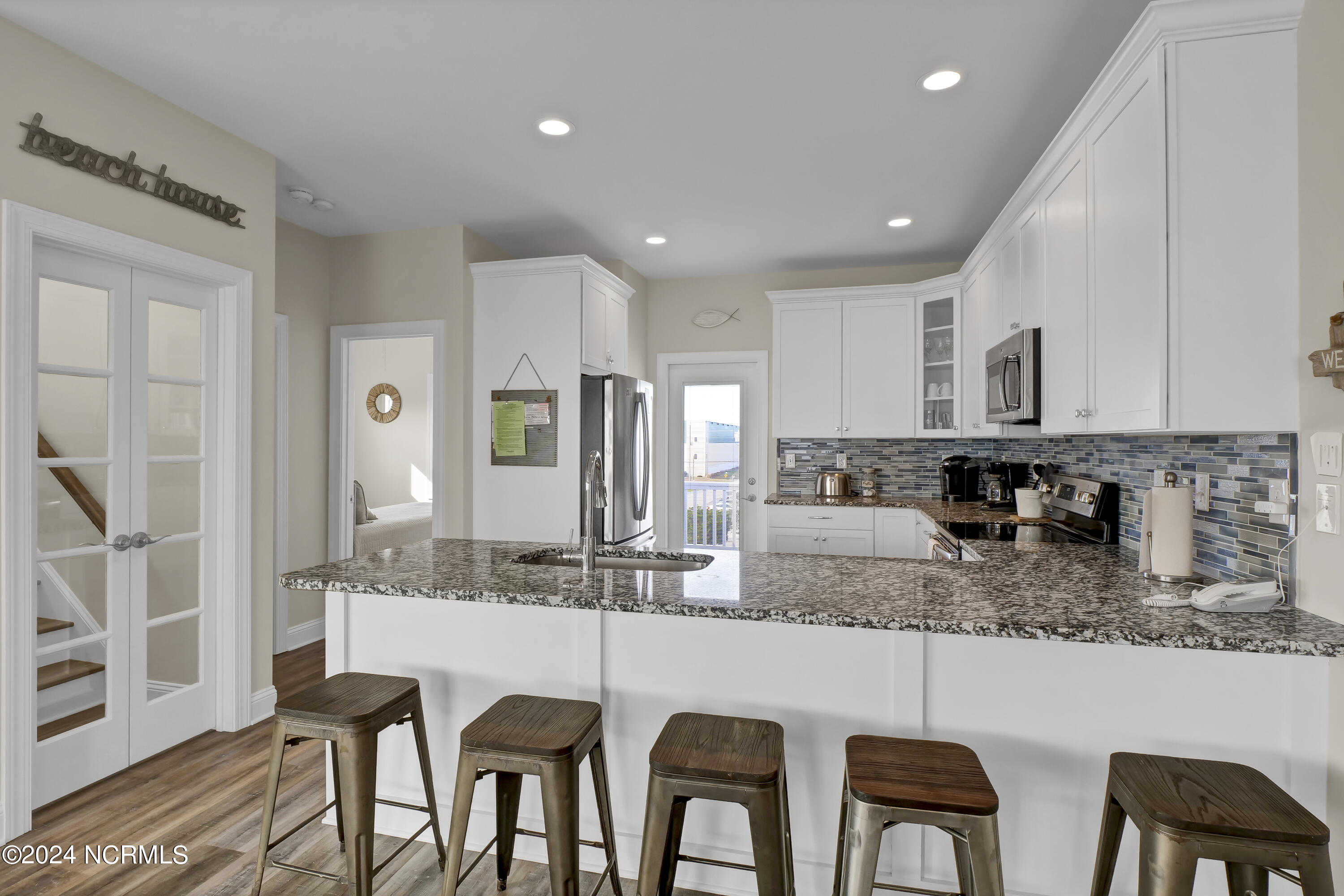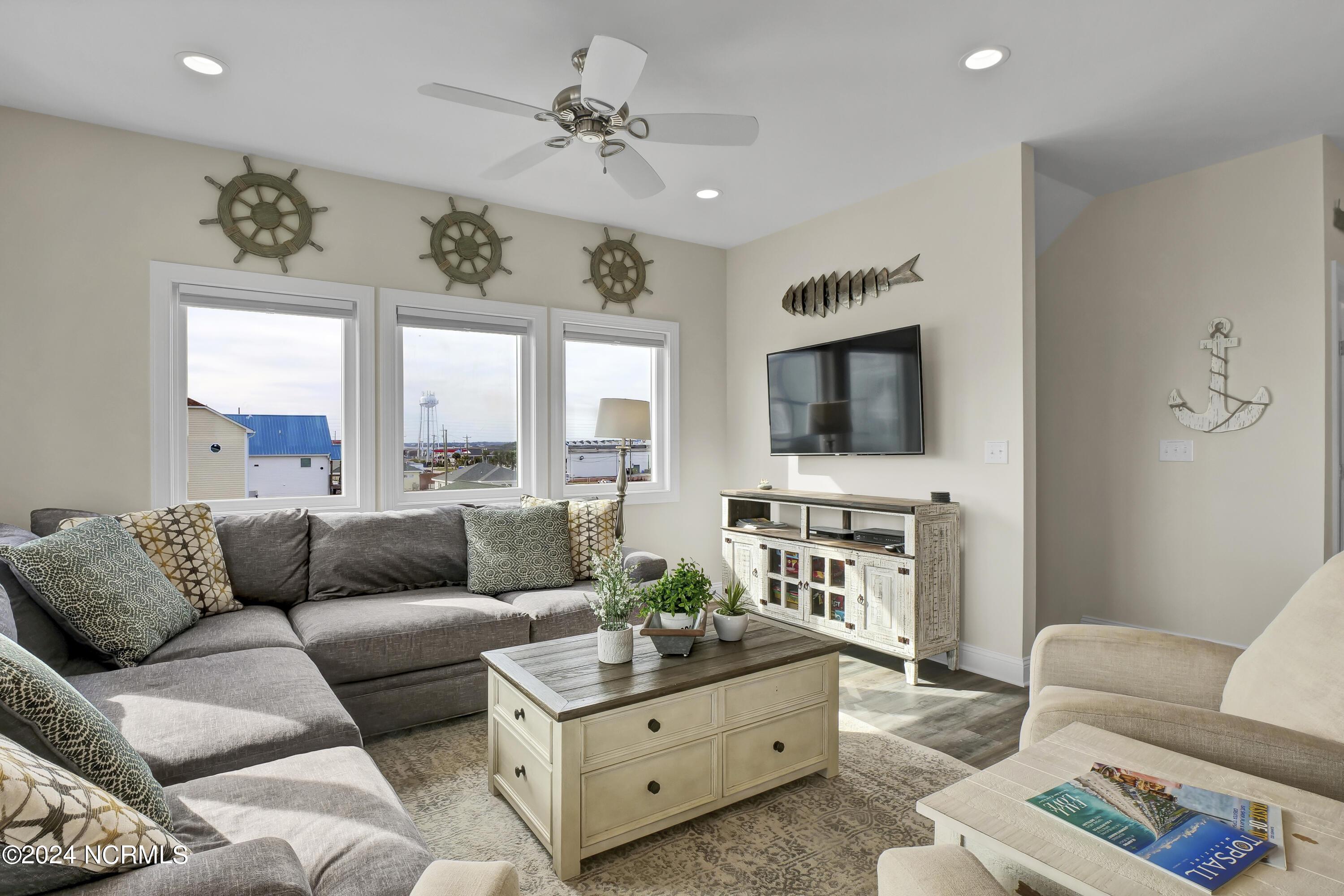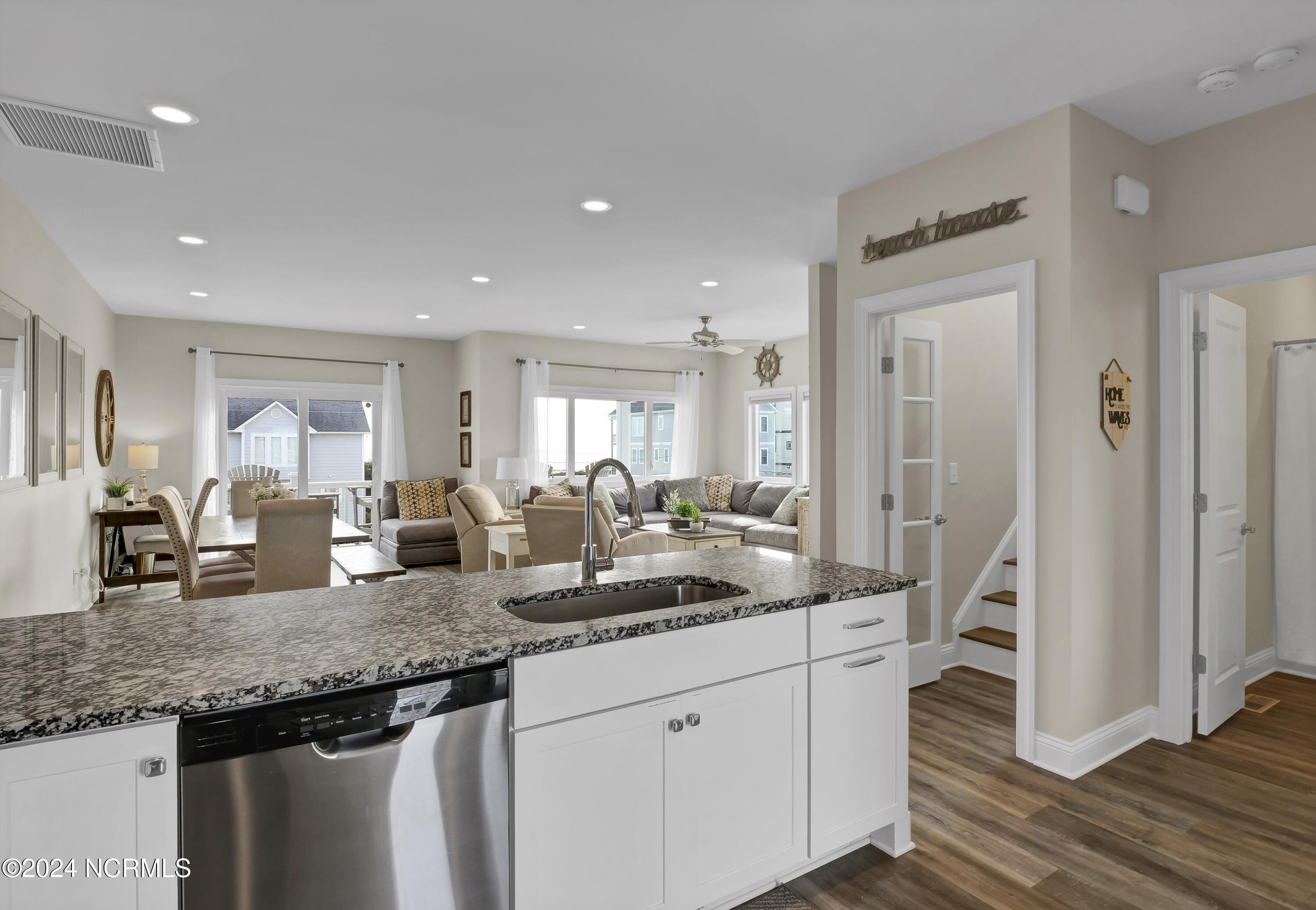 Enjoy the best 2nd row location on Topsail Island from this quality, custom built and fully furnished townhome, by one of the region's most highly acclaimed builders. Built in 2018, this end unit has additional windows that offer views of both the Atlantic Ocean and Intracoastal Waterway, and the 3 levels of decking design gives incredible viewing opportunities. Walk directly across a quiet, low-traffic street to the beach access, or casually stroll to the best of Topsail's restaurants, marina facilities, and shopping venues all within a block of your door. The home's interior boasts an open floorplan with walls of windows to bring in the views and natural light. Spacious kitchen features custom cabinetry, granite countertops, LVT flooring throughout, and state of the art appliances perfect for entertaining guests at the beach. The elevator provides easy access from the ground to the 1st and 2nd levels of the home. Interior freshly painted top to bottom in January 2024.