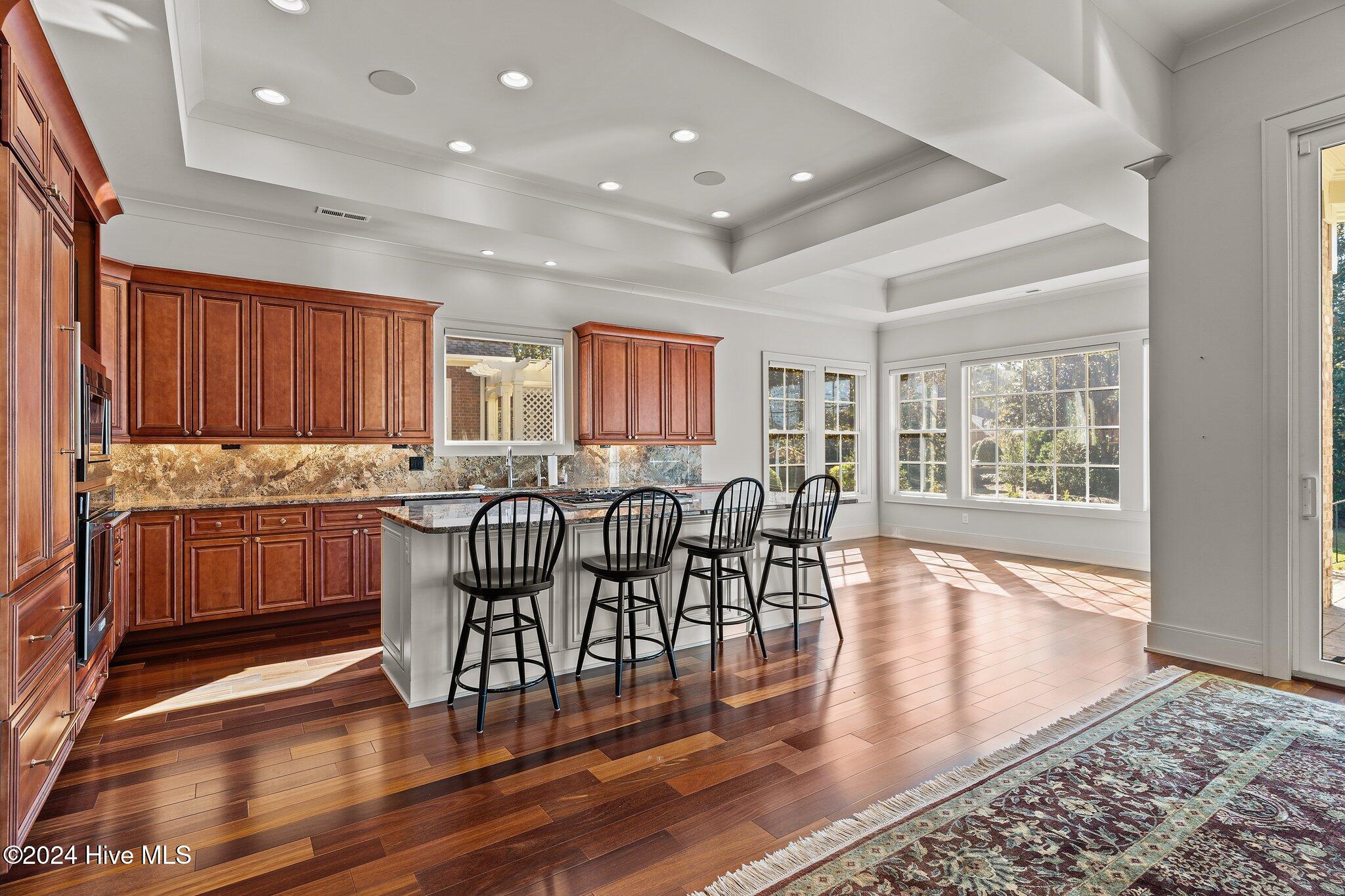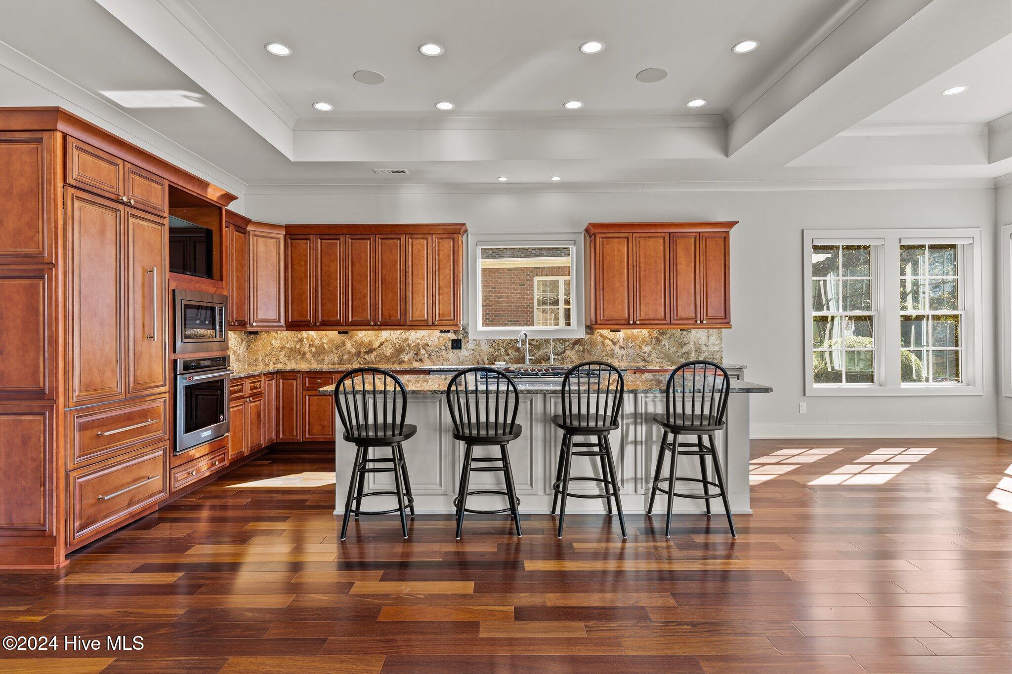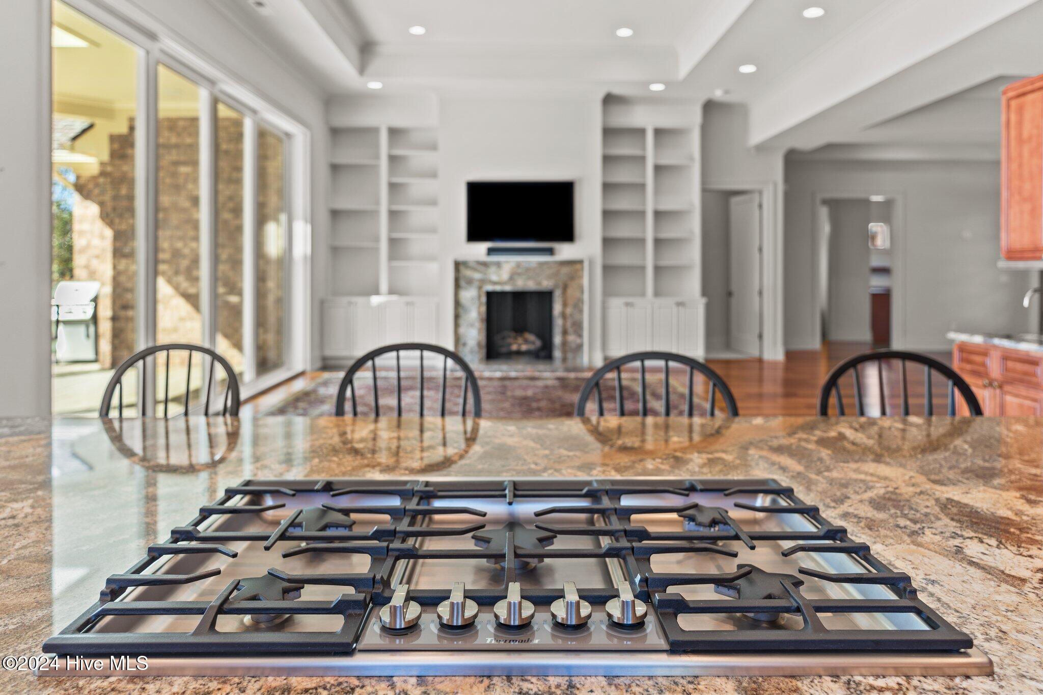 The heart of the home is its expansive kitchen, complete with a large island, Sub-Zero refrigerator/freezer, Thermador gas cooktop, premium KitchenAid appliances, and two dishwashers creating a chef's dream environment. The main level also includes a spacious breakfast nook, dining room, gracious family room, luxurious primary suite with an impressive walk-in closet and spa-like bath, a generous home office or study, a guest bedroom, laundry room, and a wine fridge for easy entertaining.