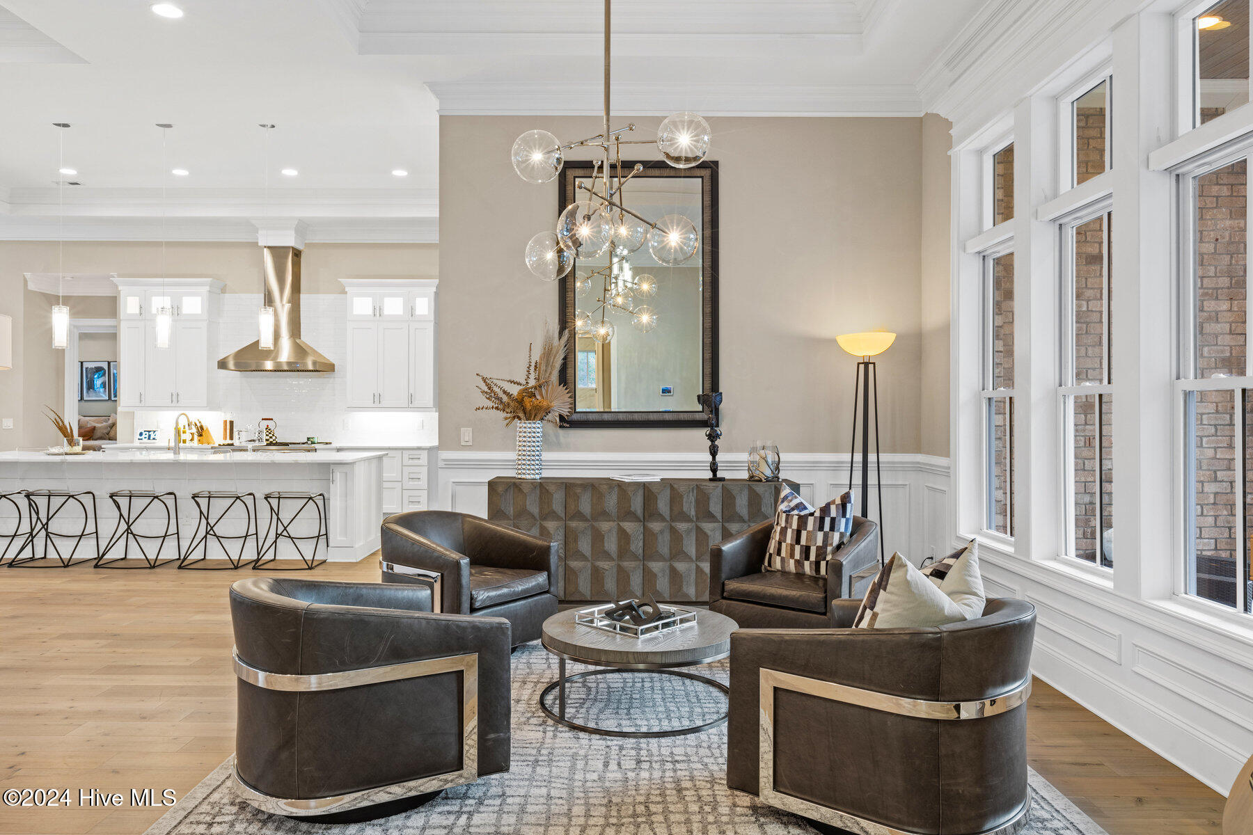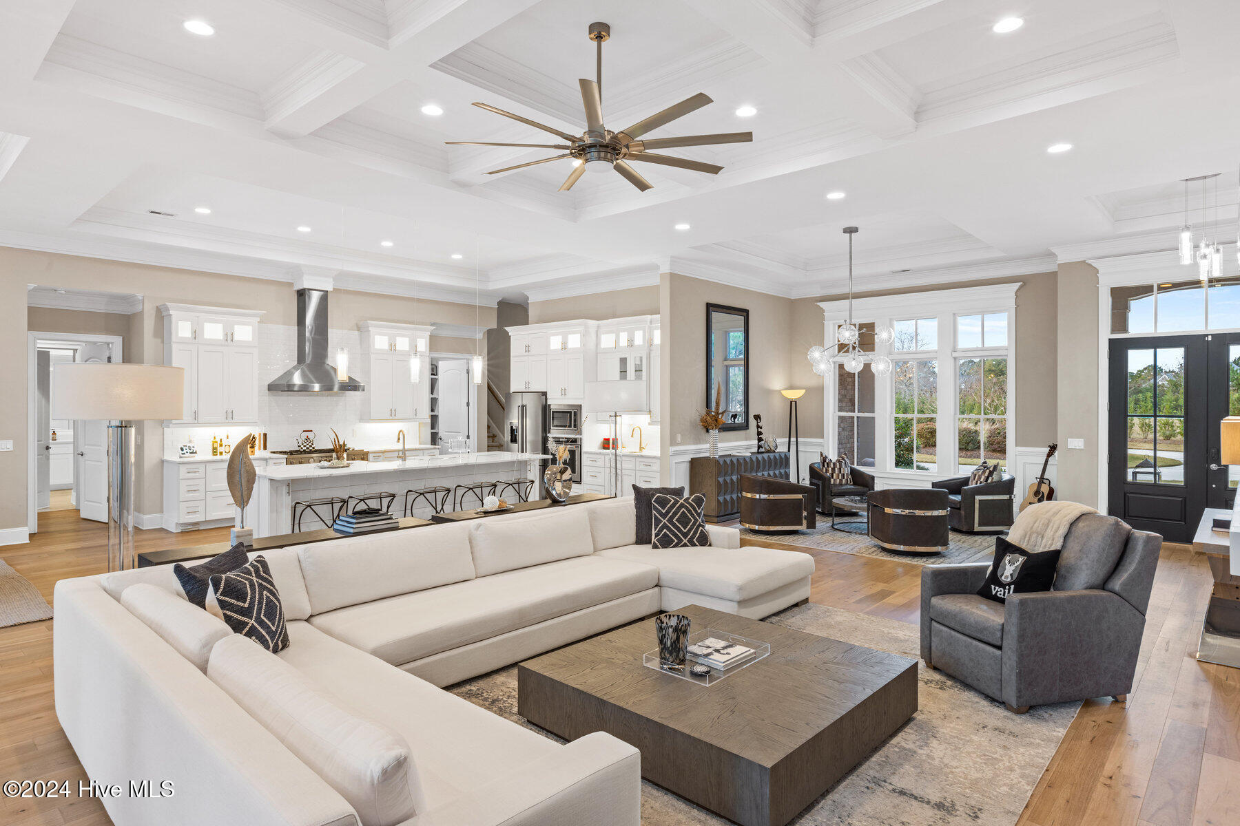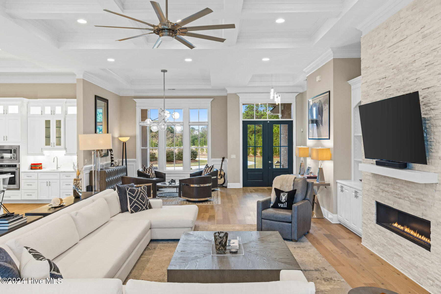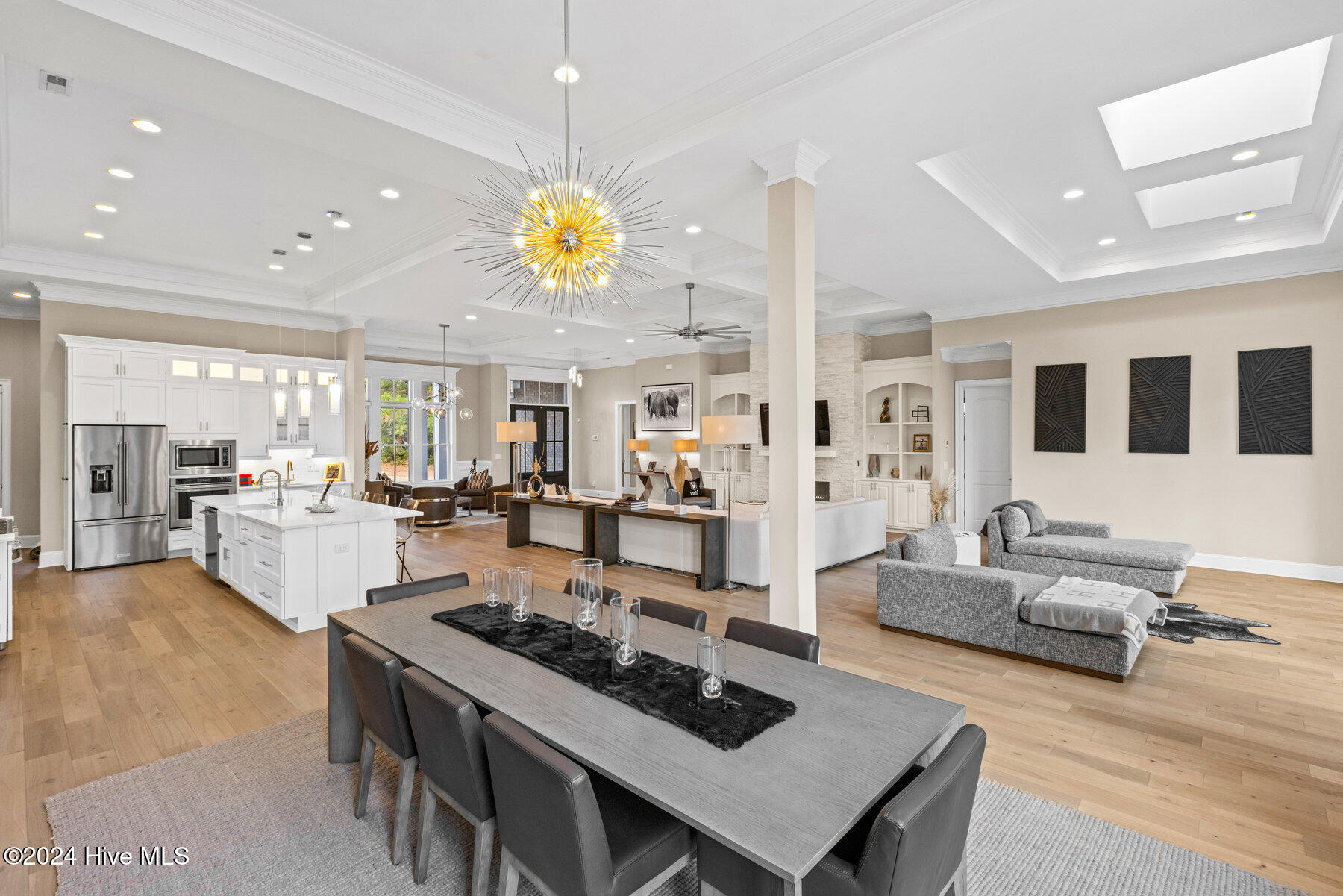 Step inside to an open-concept floor plan featuring soaring 10- and 12-foot tray ceilings and rich hardwood floors, creating an ideal space for both daily living and entertaining.