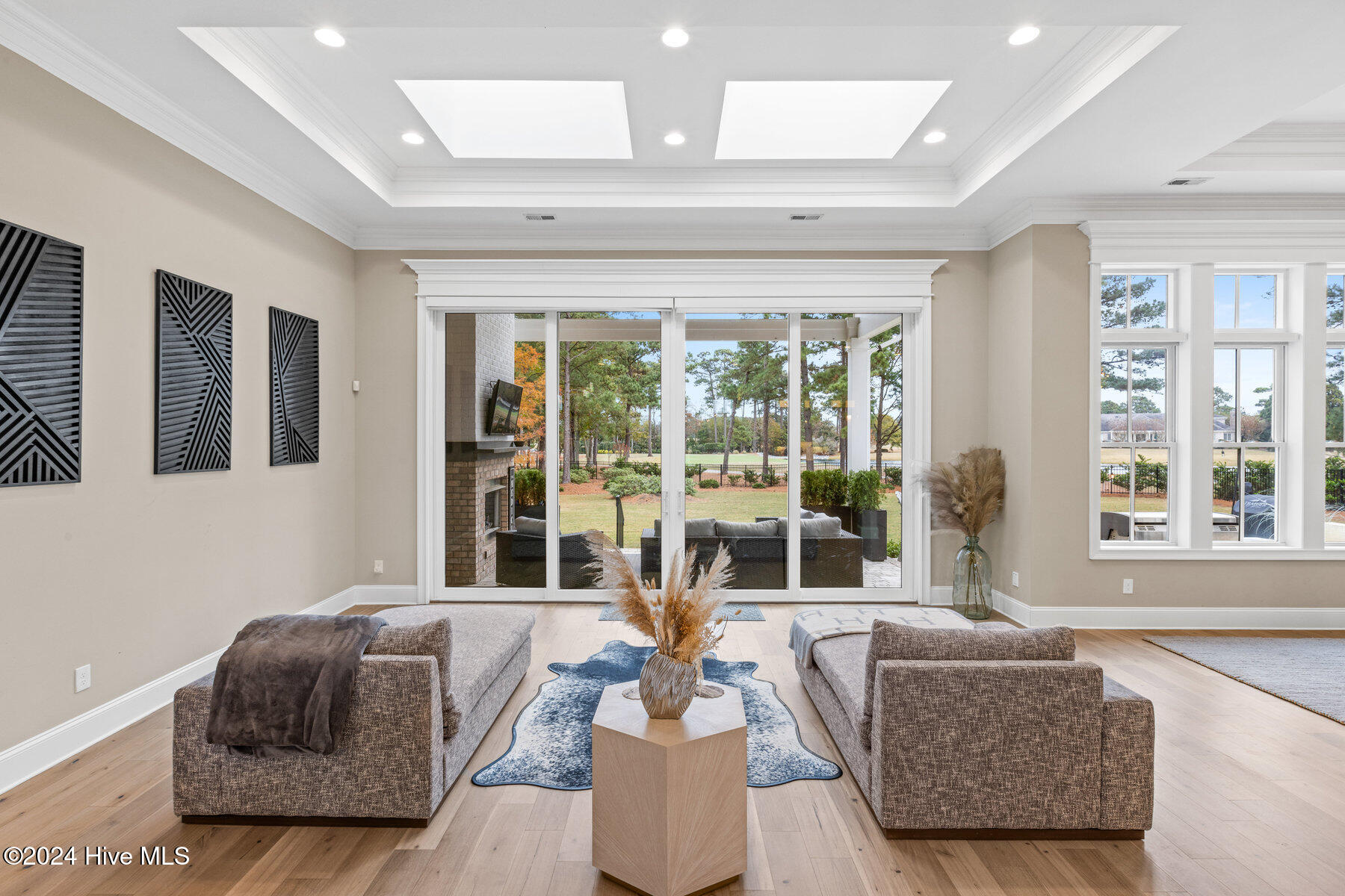 Step outside to your private sanctuary--an expansive outdoor living area that overlooks the emerald greens and peaceful lake, offering an ideal setting for both quiet mornings and lively gatherings.