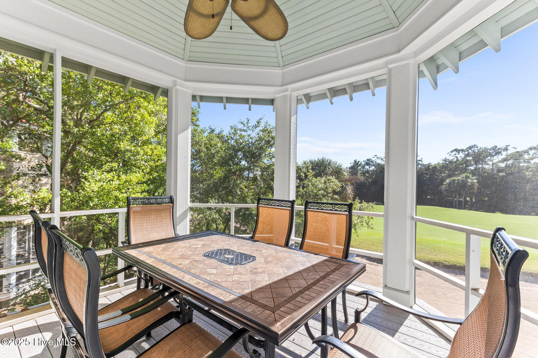 Gatherings extend easily outdoors, where an octagonal screened porch and sun deck set the stage for quiet afternoons or elegant evenings overlooking the fairway.