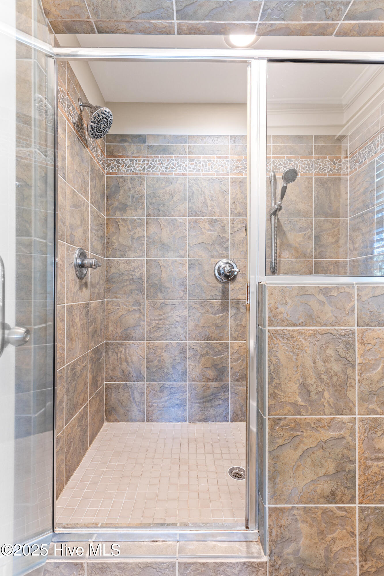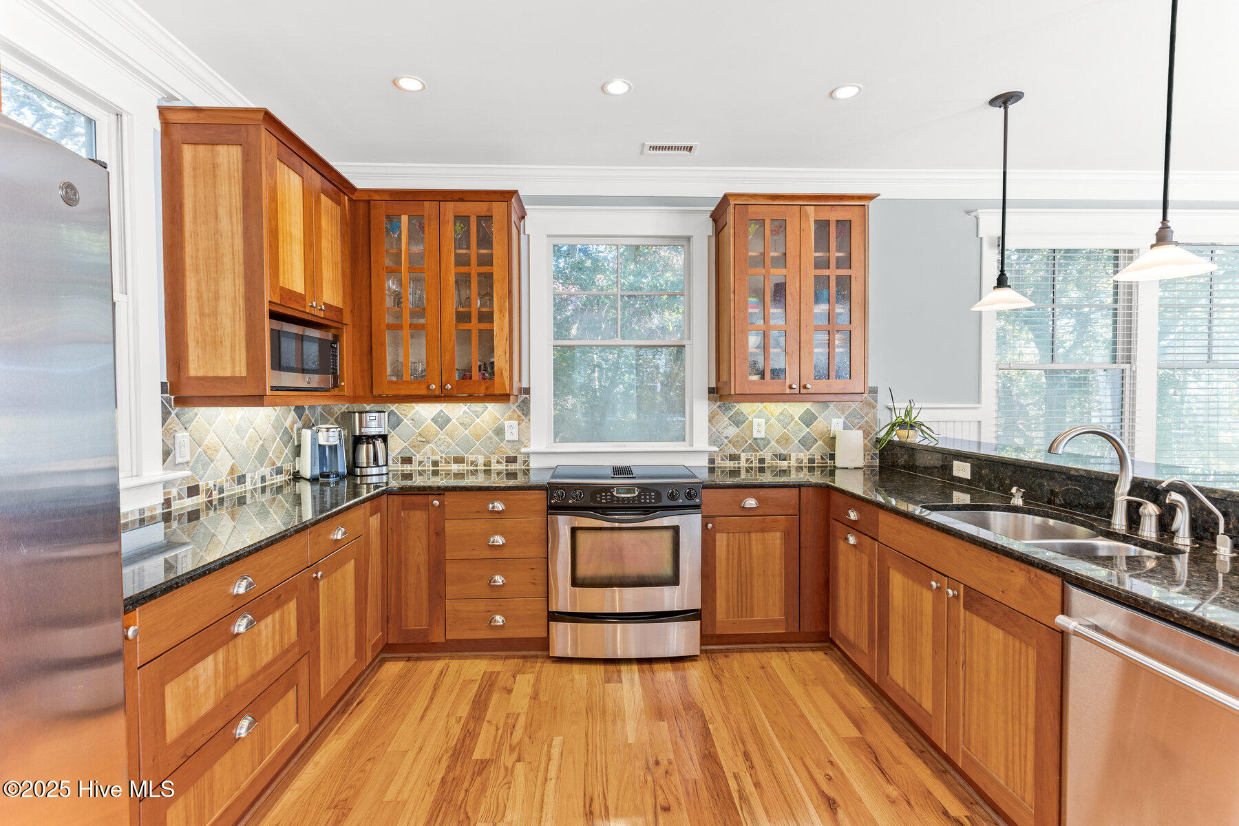 Located in the X zone, the main house showcases a reverse floor plan that maximizes the gorgeous golf course views. Three spacious bedrooms--each with its own private bath--provide privacy on the first floor, while an office or bonus space on the second floor offers flexibility. Two of the bedroom suites have private access to the covered deck and lower level screened porch. The upstairs living, dining, and kitchen areas are open and feature vaulted ceilings with exposed beams.