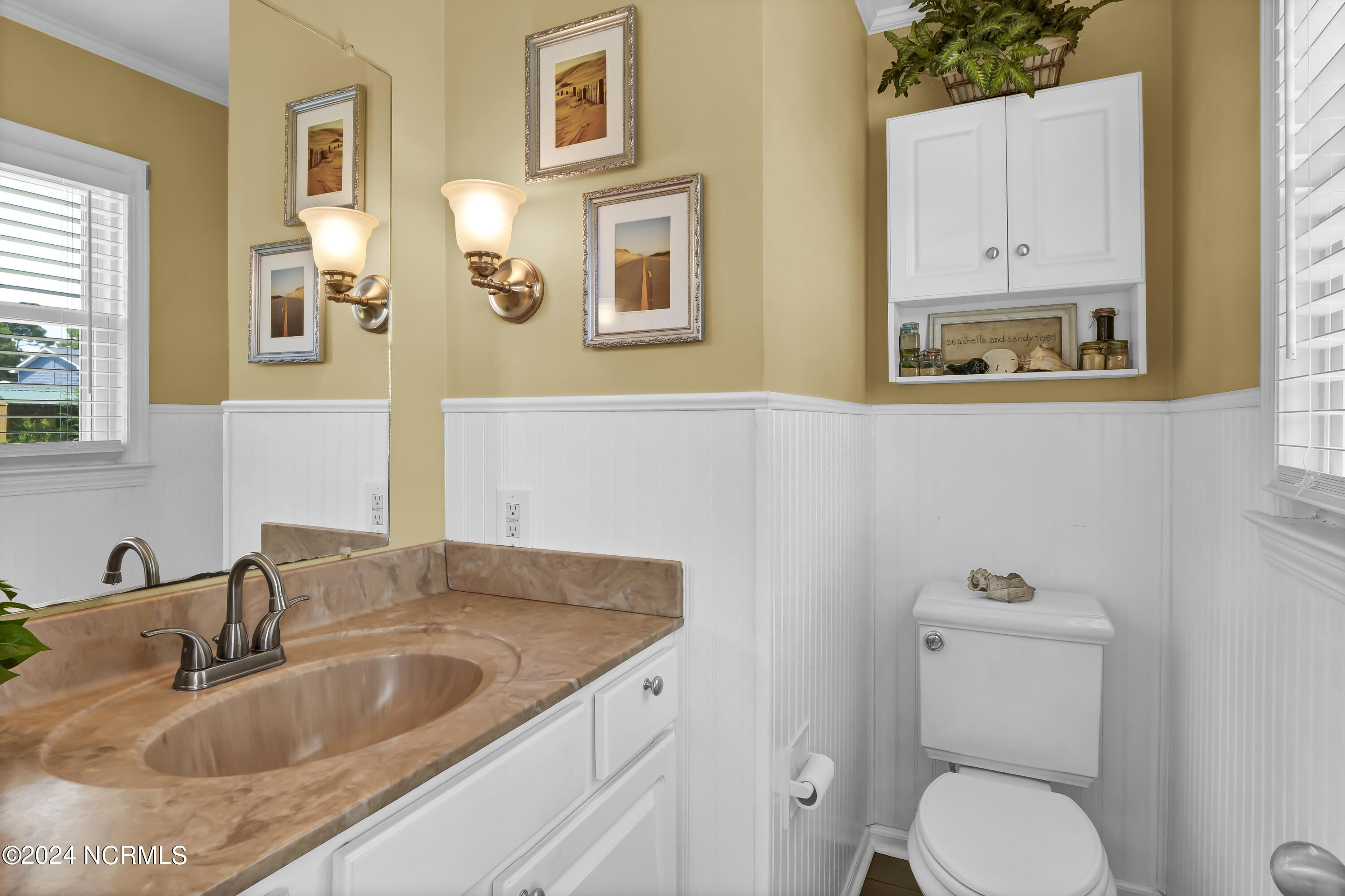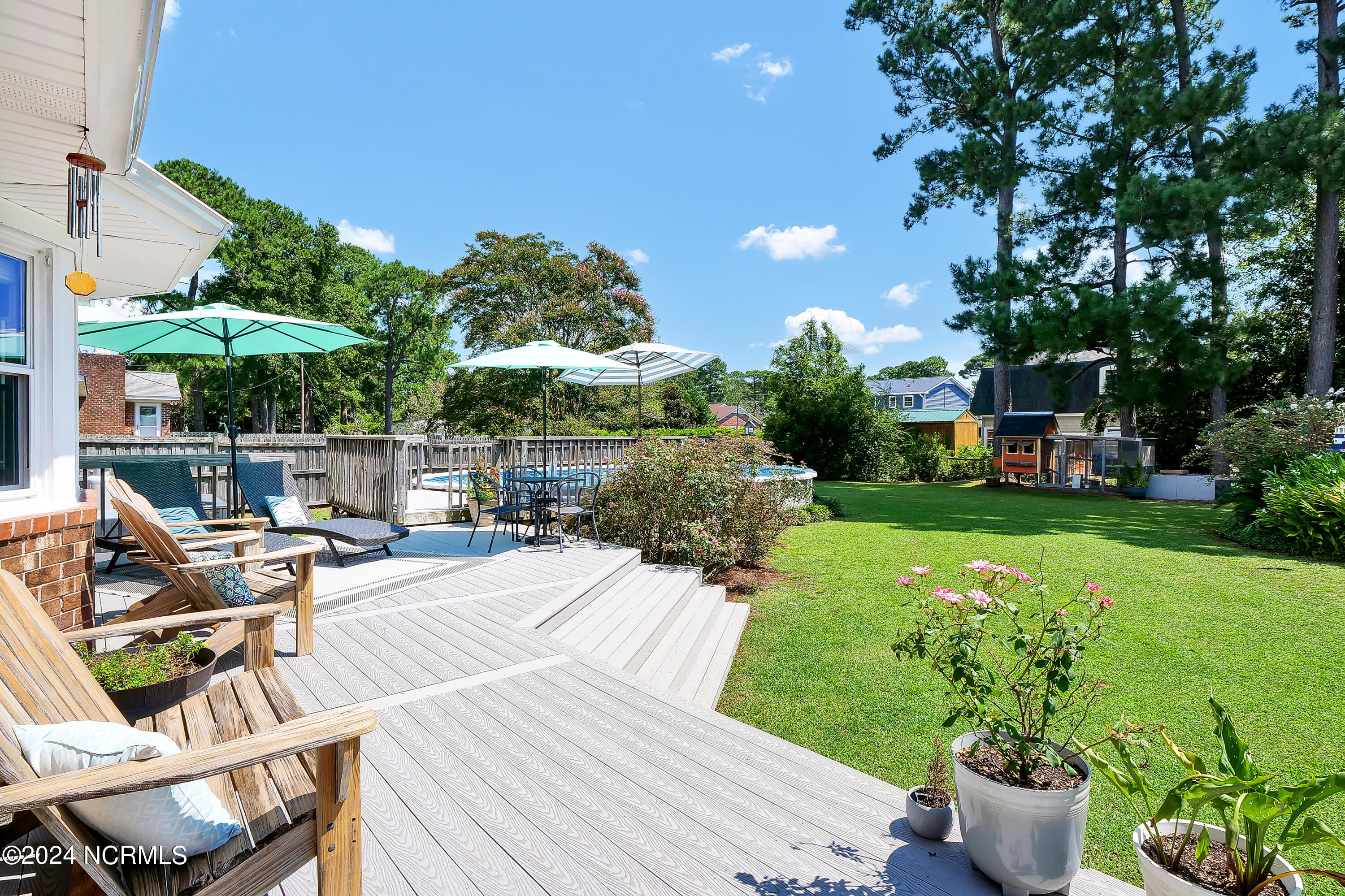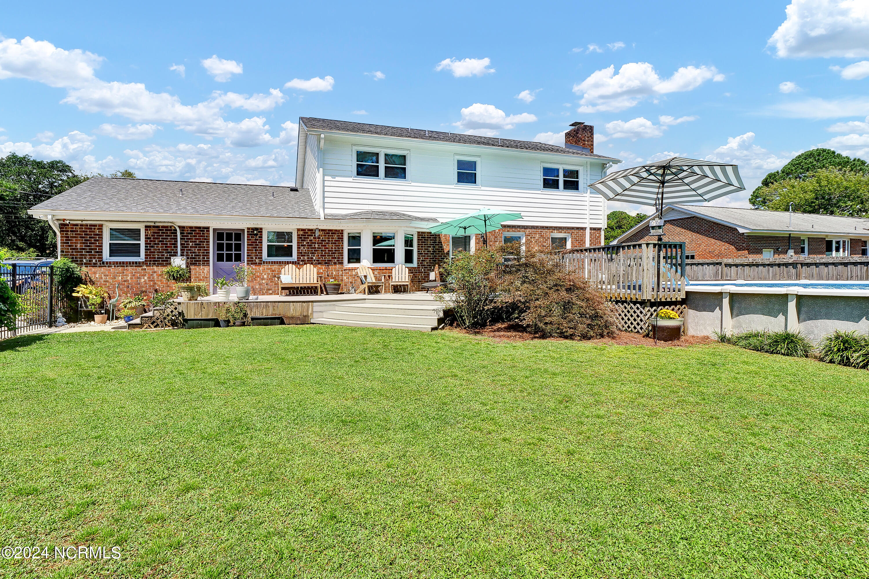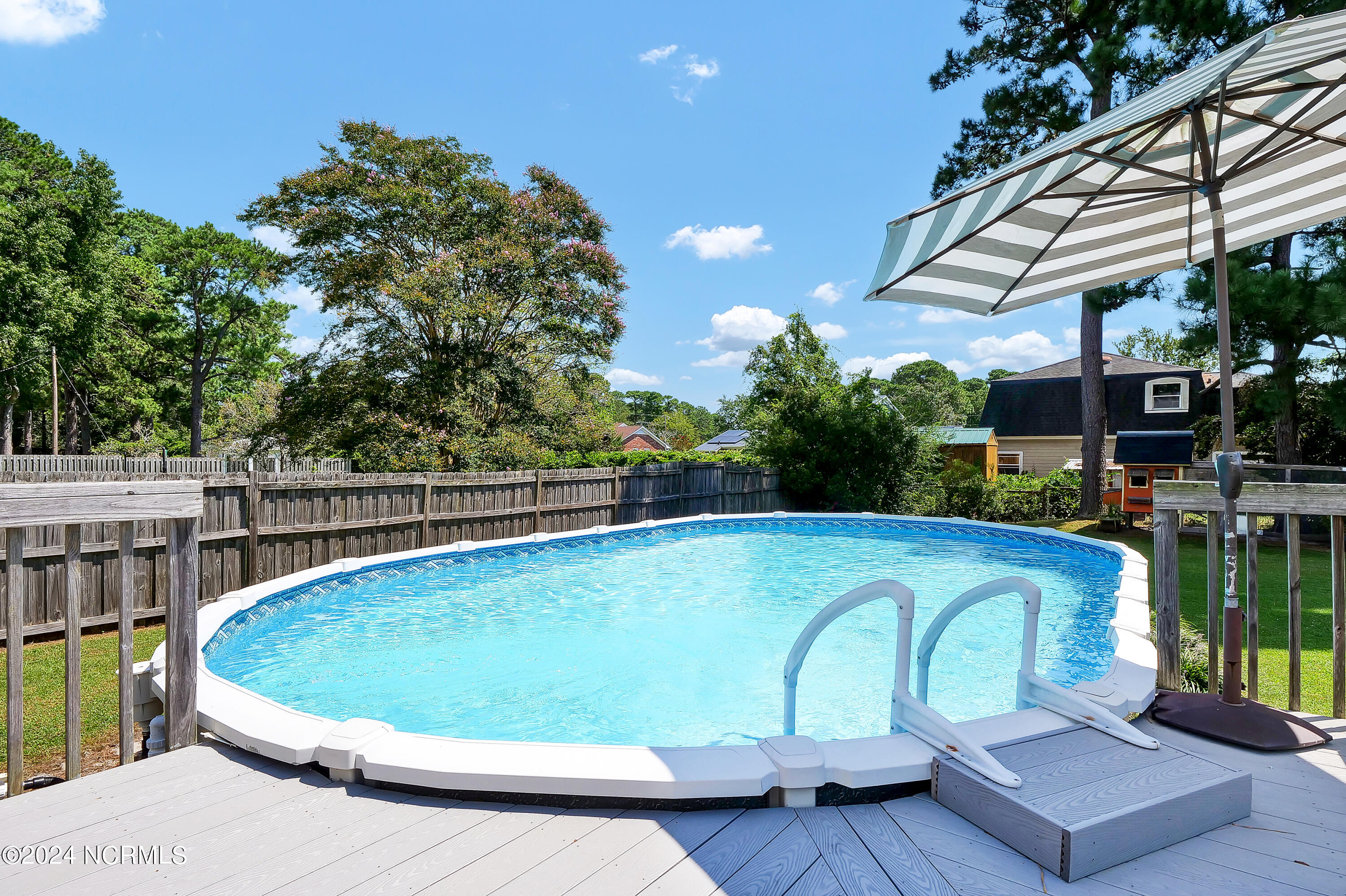 The fenced back yard offers a gorgeous landscape and so much space! Yards like this are not available often; with spacious trex decks and an 18x33 above-ground saltwater pool, you will never want to leave!