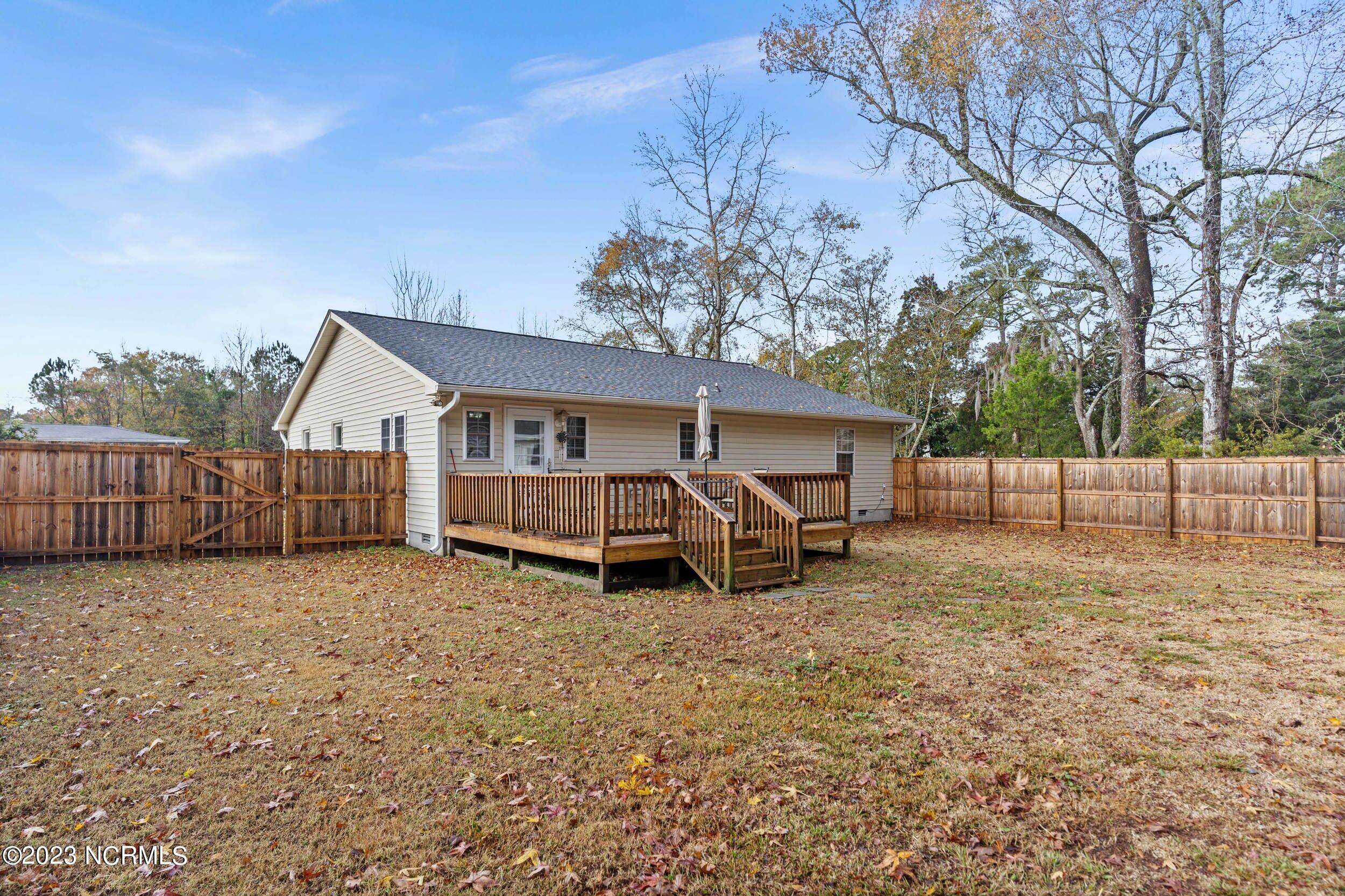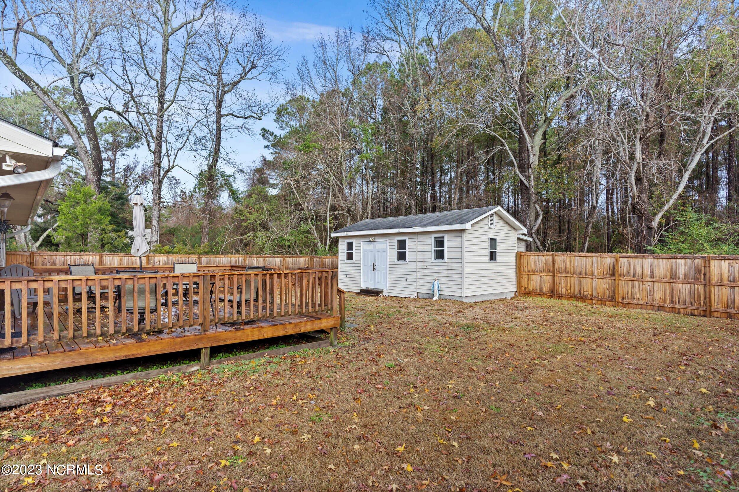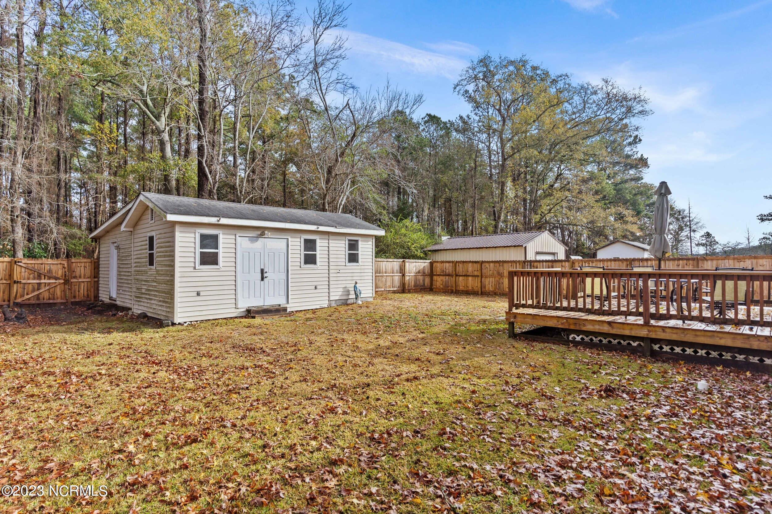 Welcome to 27 East Drive, Jacksonville, NC - your perfect home awaits! This charming 3-bedroom, 2-bathroom house is a true gem, offering a blend of modern updates and classic features. Step inside to discover a beautifully updated kitchen, where culinary dreams come to life. The sleek design and contemporary finishes create a stylish space that is both functional and inviting. The original hardwood floors have been refinished, preserving the timeless elegance of the home while providing a warm and welcoming atmosphere. Located just 2 miles from the Camp Lejeune main gate, this home is perfect for military families seeking convenience and accessibility. A new roof was installed in 2022 with a transferrable warranty so you can enjoy peace of mind knowing that your investment is well-maintained and ready to withstand the elements. The backyard has a spacious shed with 532 square feet. This versatile space is equipped with both electrical and plumbing, making it an ideal workshop, studio, or even a potential guest suite. Complete with a full bathroom, this additional dwelling expands the possibilities for your new home.