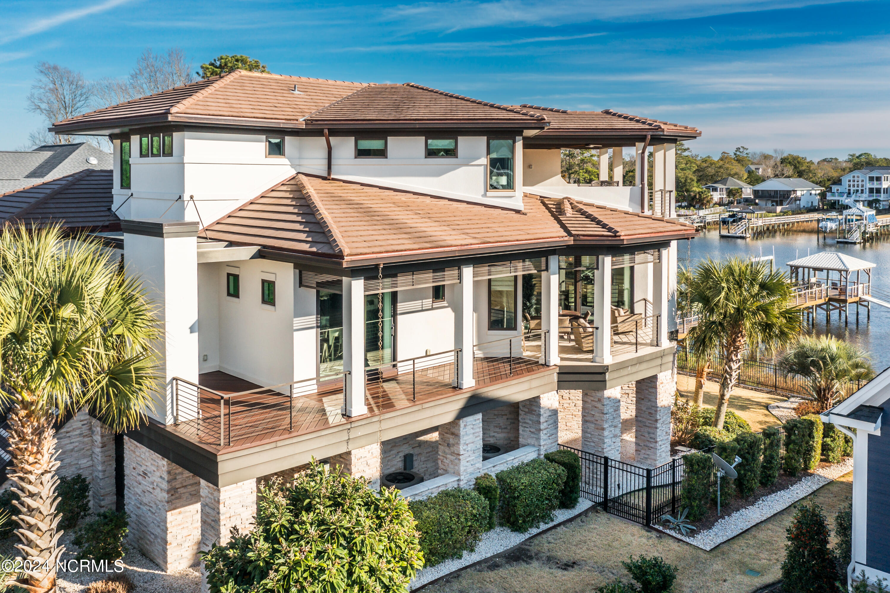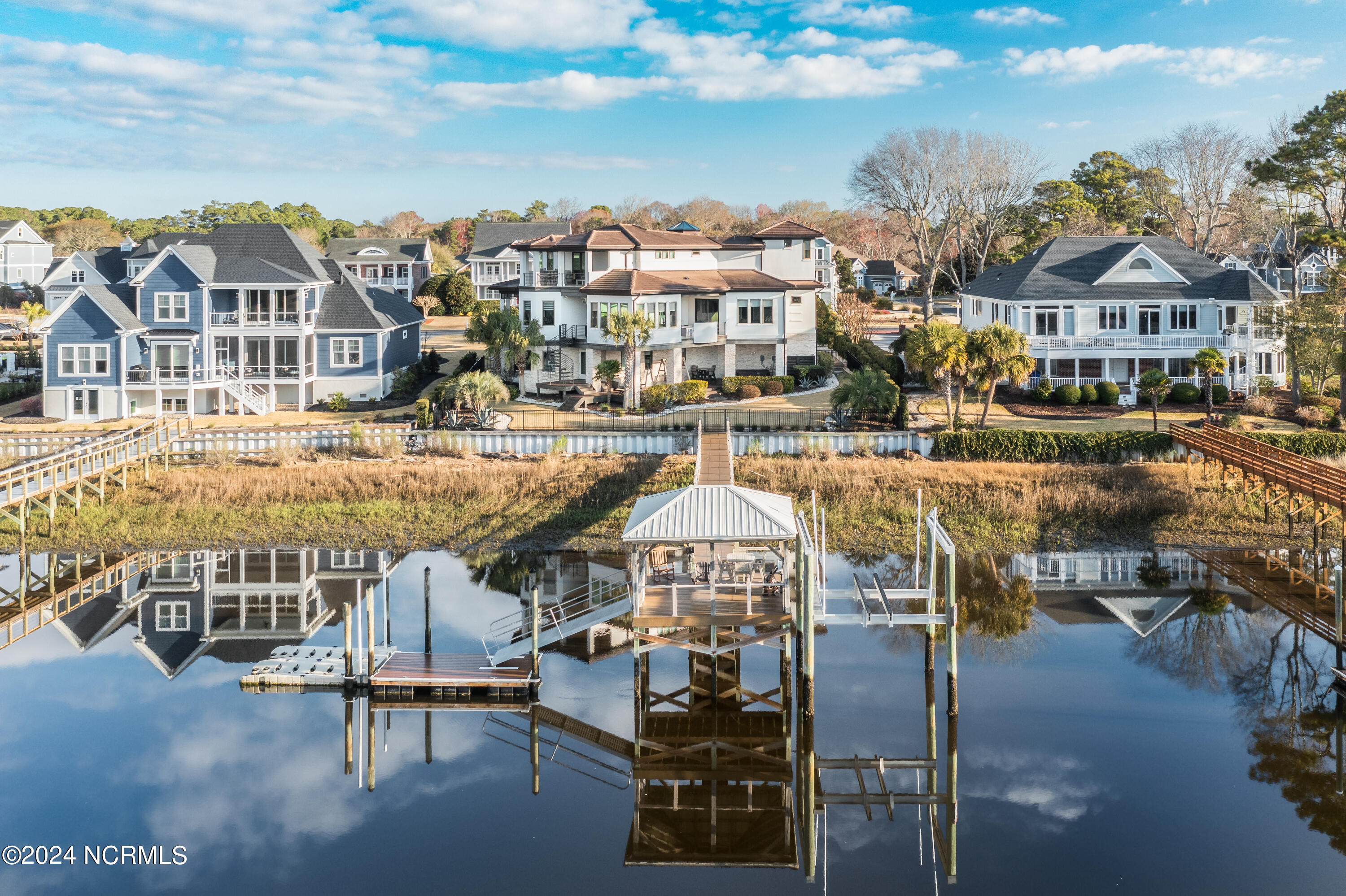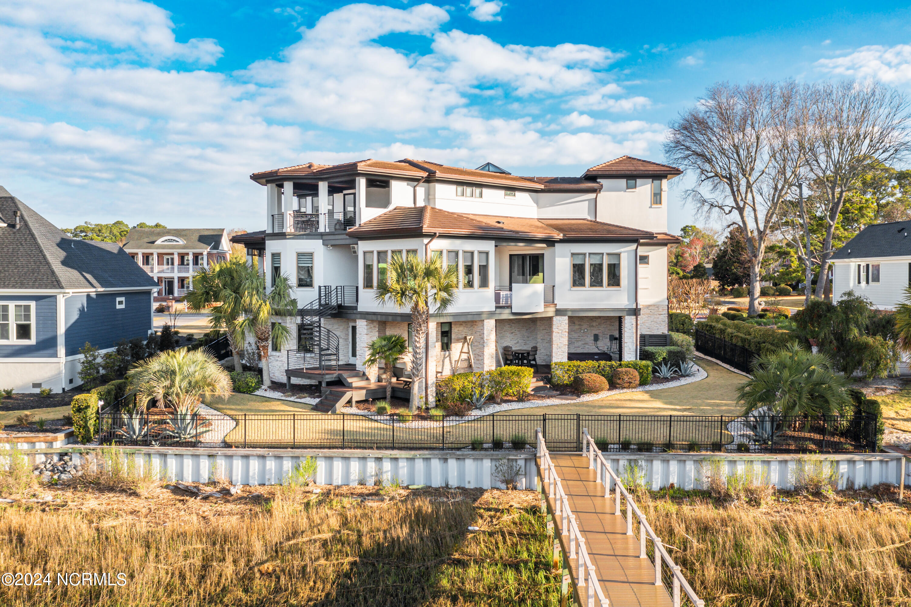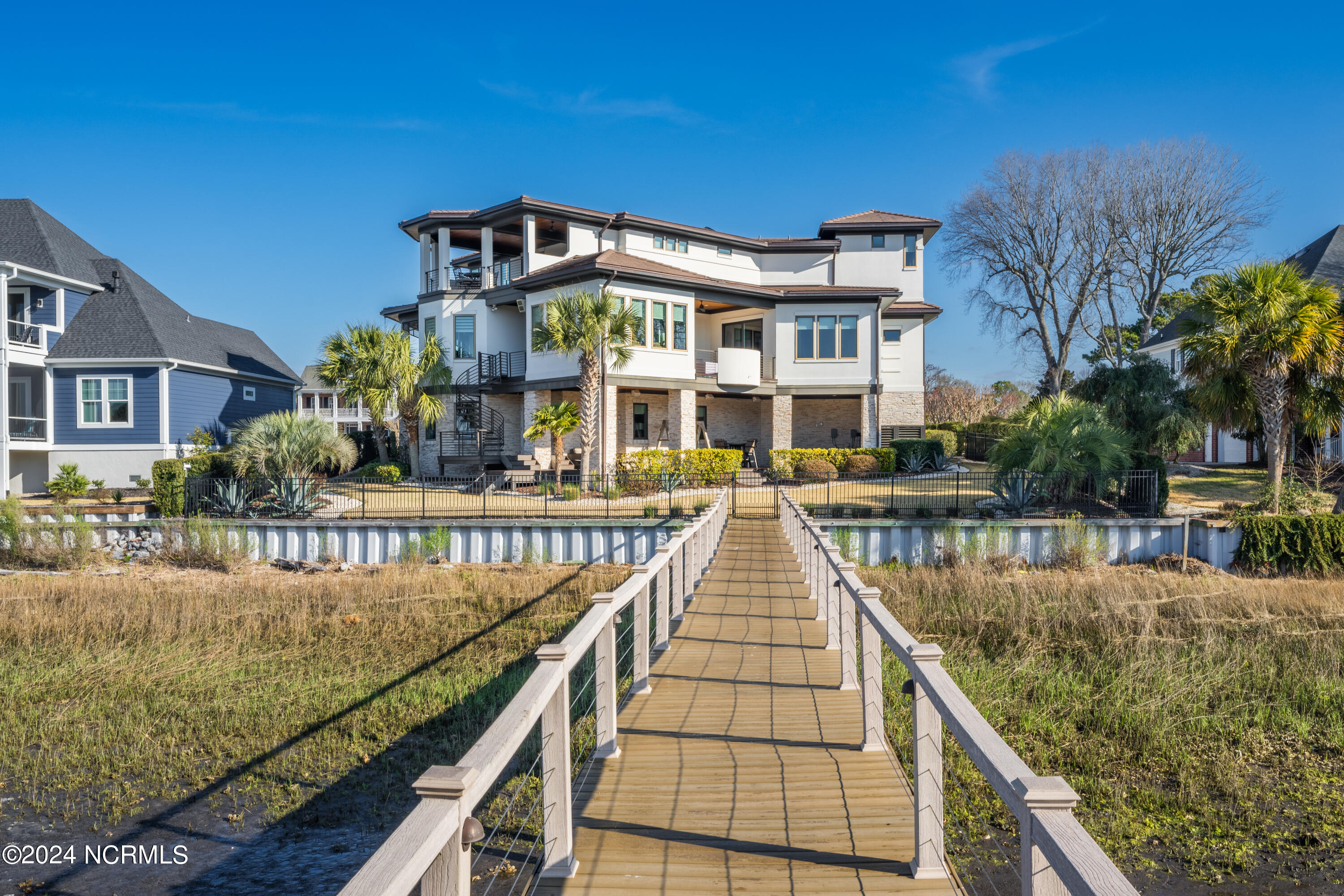Discover the pinnacle of luxury living at 2751 Pinecrest Drive, an exquisite property that sits perfectly along the serene expanse of the Intracoastal Waterway, within the esteemed St. James community. Meticulously designed by the acclaimed Whitney Blair Custom Homes, this coastal contemporary marvel stretches across 6300 sqft, offering 5 bedrooms and 5.5 bathrooms. Its architecture thoughtfully showcases spectacular views of the waterway, incorporating four inviting outdoor seating areas to ensure a seamless blend of luxury and the captivating beauty of the surrounding nature. Featuring an Italian Scavolini kitchen equipped with high-end Wolf and Sub-Zero appliances, commercial-grade semi-polished porcelain tiles in main living areas, and a climate-controlled wine room, this home redefines sophistication. An elevator ensures effortless access across all three levels. The Master Suite, a grand sanctuary, is notably vast, offering a luxurious indoor sauna and steam room, further enhancing the home's spa-like ambiance. Outdoor amenities impress with a pier and covered dock equipped with a 16,000 lb boat lift, an EZ dock for two jet skis, and an 8-person hot tub, ideal for both entertaining and tranquil relaxation. The extensive garage is designed to accommodate up to four vehicles easily. The St. James community enhances the luxurious lifestyle by offering residents an array of amenities, including an 81-hole championship golf course, four distinctive clubs with restaurants, a marina, a private beach club, picturesque walking trails, state-of-the-art fitness centers, swimming pools, tennis and pickleball courts, and a waterway park. This residence isn't just a home; it's an entry into a life of unmatched luxury and picturesque tranquility.