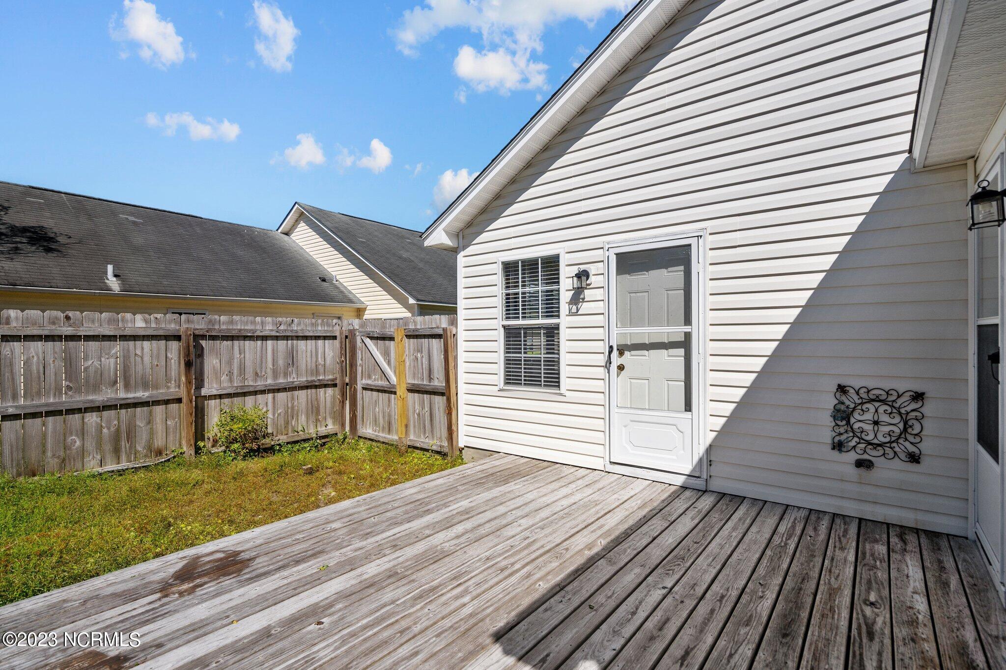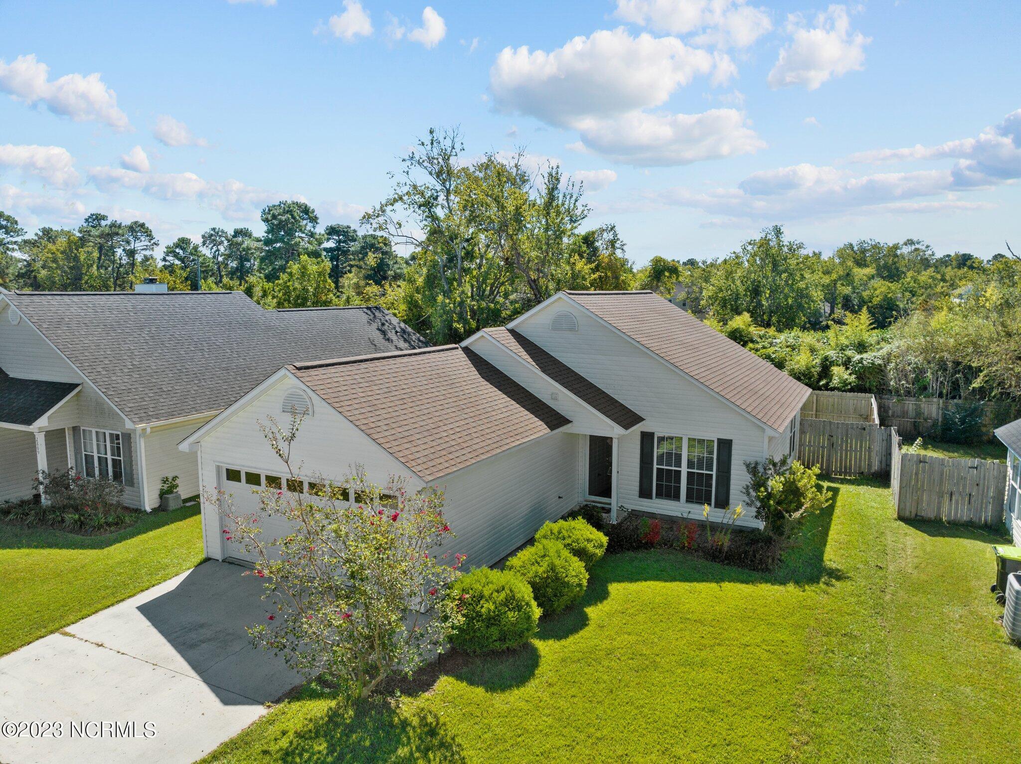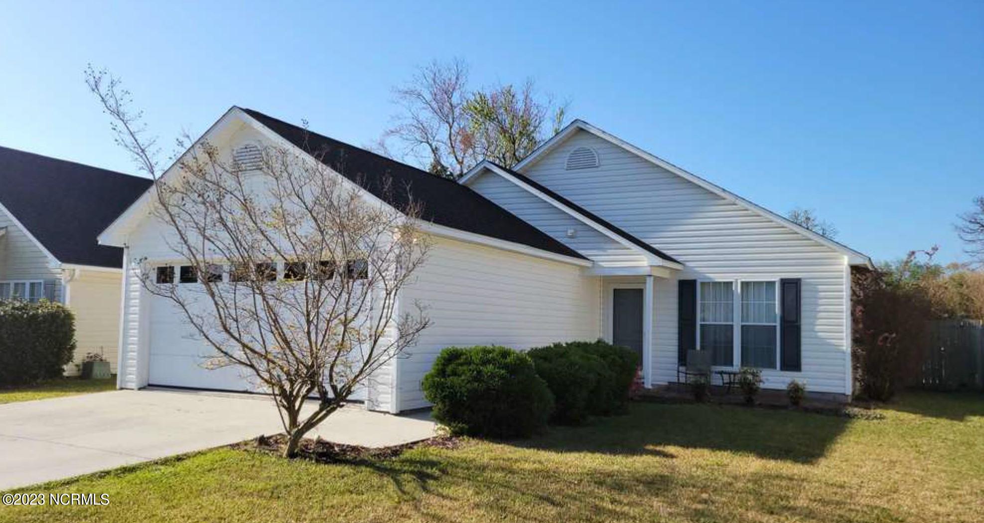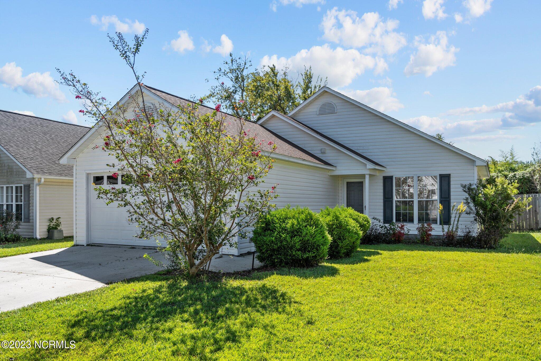 Price Improvement! This well-maintained, beautiful home is nestled near a cul-de-sac in the desirable Northchase subdivision. Conveniently located eight miles from Wrightsville Beach and eight miles from Wilmington's downtown riverfront, the neighborhood offers a wide range of outdoor amenities including a community pool, basketball court, tennis courts, picnic area, playground, frisbee course and trails for walking and biking. This spacious, three-bedroom two-bathroom home is equipped with a dining/kitchen combo, which provides a perfect flow for gathering and entertaining. The living area and kitchen feature engineered wood floors, and the bedrooms are carpeted. The large primary bedroom includes a generous walk-in closet. The roof and HVAC are both less than five years old, and all other appliances are in good working order. The washer and dryer will convey. Additionally, the garage and driveway offer plenty of parking space for family and friends. The back door opens to the backyard with a privacy fence and a wooden deck, a great spot for grilling out with friends or sipping a cup of coffee watching the sunrise. Come take a look at this move-in ready, turnkey home, and make the dream of living in Wilmington, North Carolina ''the state's best kept secret''a reality!