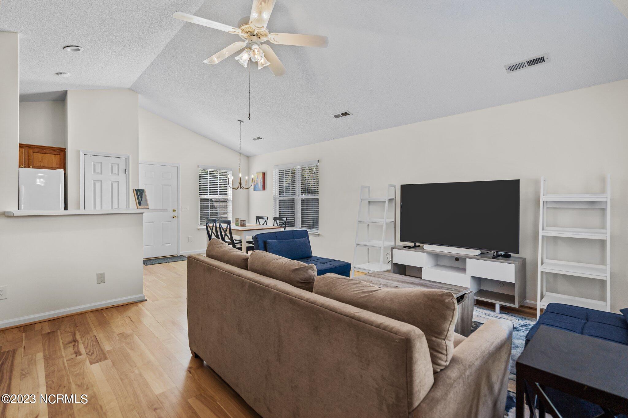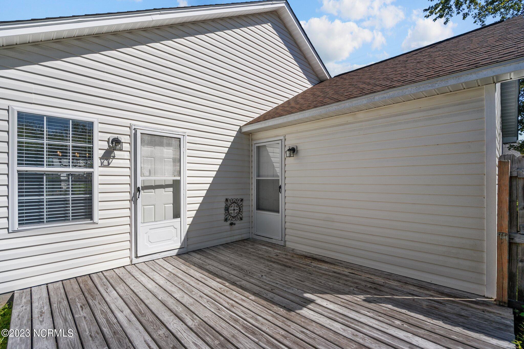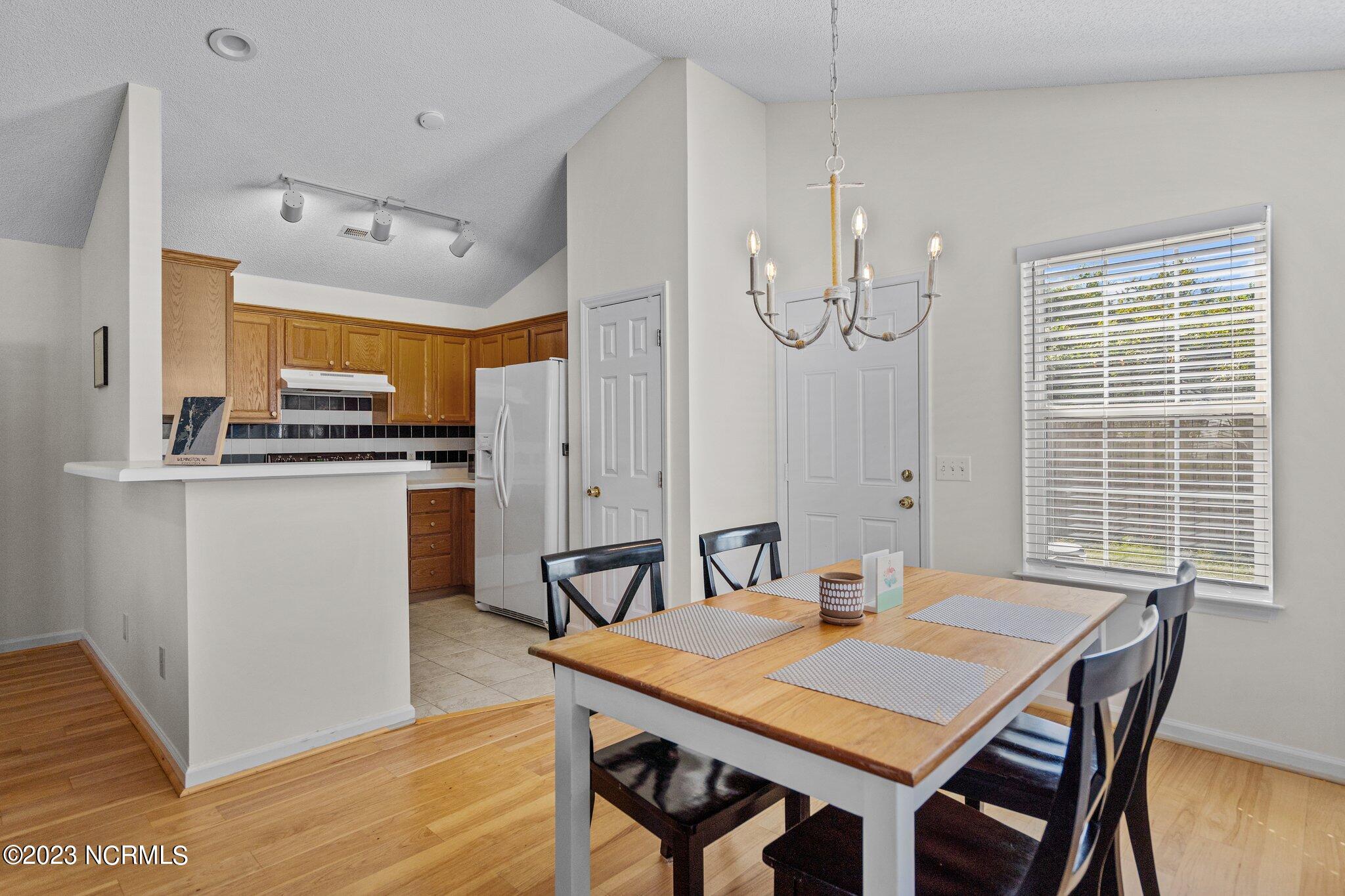 Price Improvement! This well-maintained, beautiful home is nestled near a cul-de-sac in the desirable Northchase subdivision. Conveniently located eight miles from Wrightsville Beach and eight miles from Wilmington's downtown riverfront, the neighborhood offers a wide range of outdoor amenities including a community pool, basketball court, tennis courts, picnic area, playground, frisbee course and trails for walking and biking. This spacious, three-bedroom two-bathroom home is equipped with a dining/kitchen combo, which provides a perfect flow for gathering and entertaining. The living area and kitchen feature engineered wood floors, and the bedrooms are carpeted. The large primary bedroom includes a generous walk-in closet. The roof and HVAC are both less than five years old, and all other appliances are in good working order. The washer and dryer will convey. Additionally, the garage and driveway offer plenty of parking space for family and friends. The back door opens to the backyard with a privacy fence and a wooden deck, a great spot for grilling out with friends or sipping a cup of coffee watching the sunrise. Come take a look at this move-in ready, turnkey home, and make the dream of living in Wilmington, North Carolina ''the state's best kept secret''a reality!