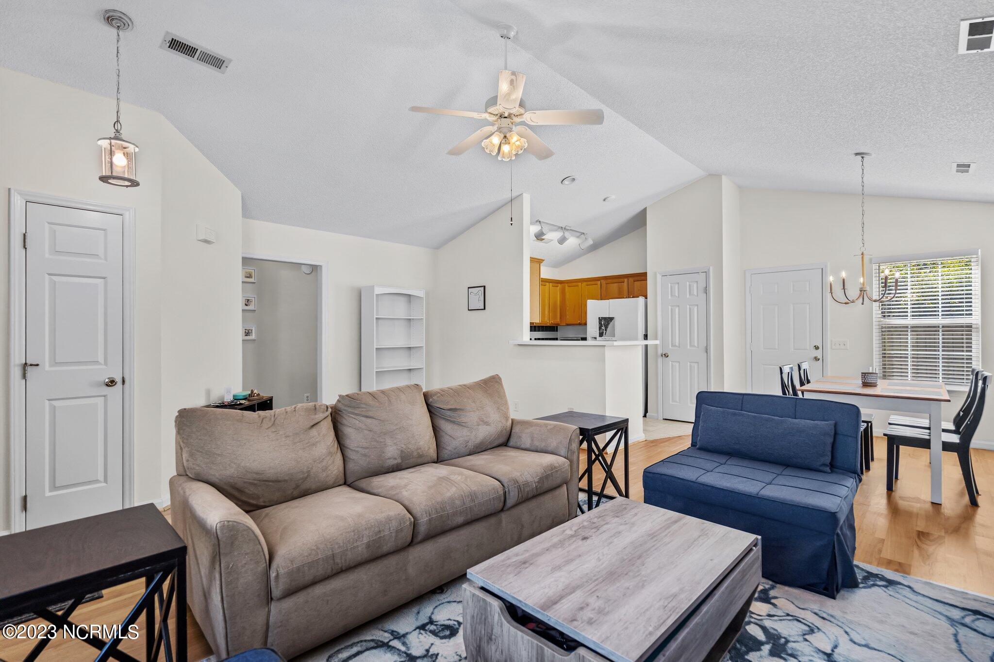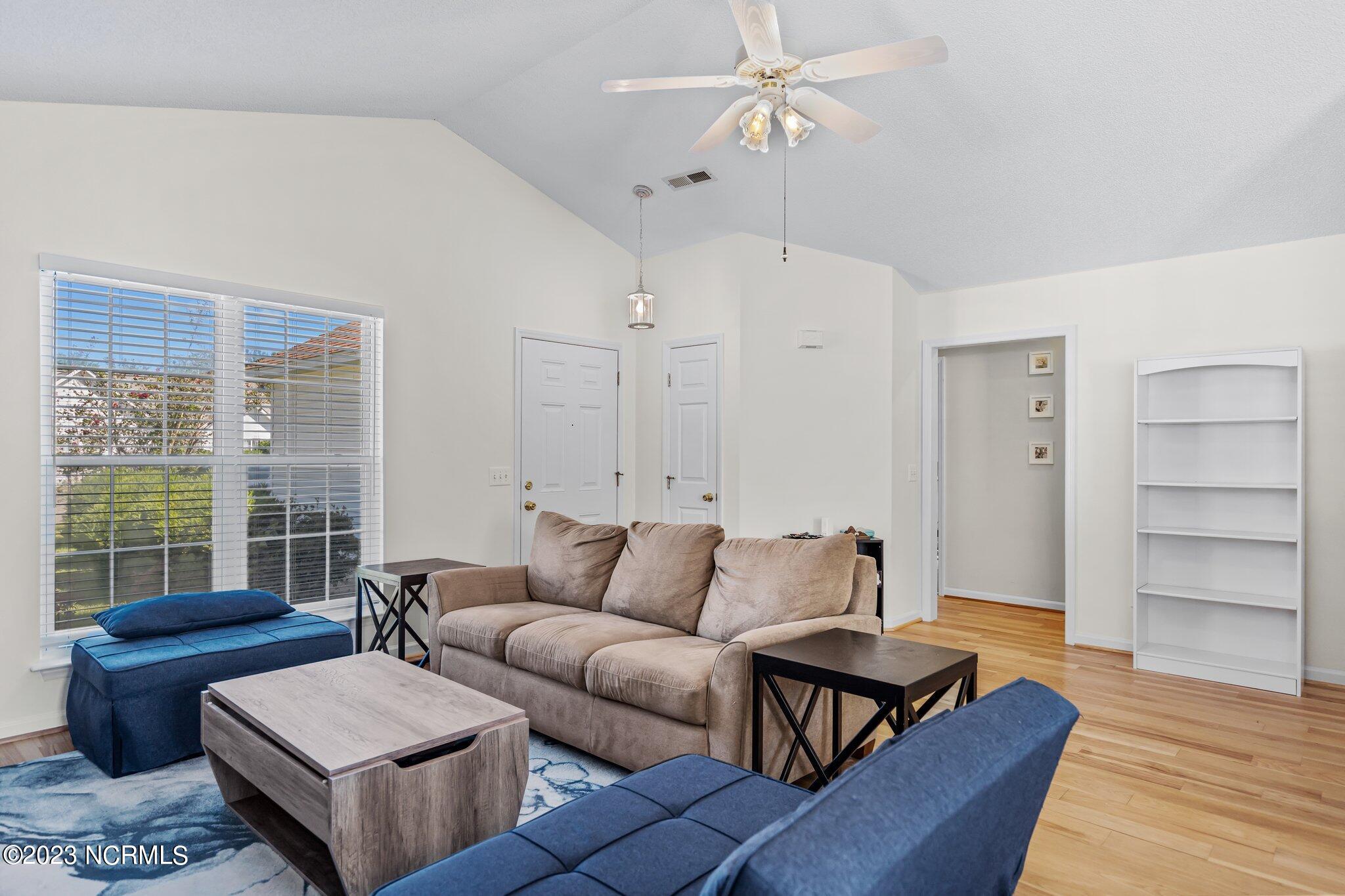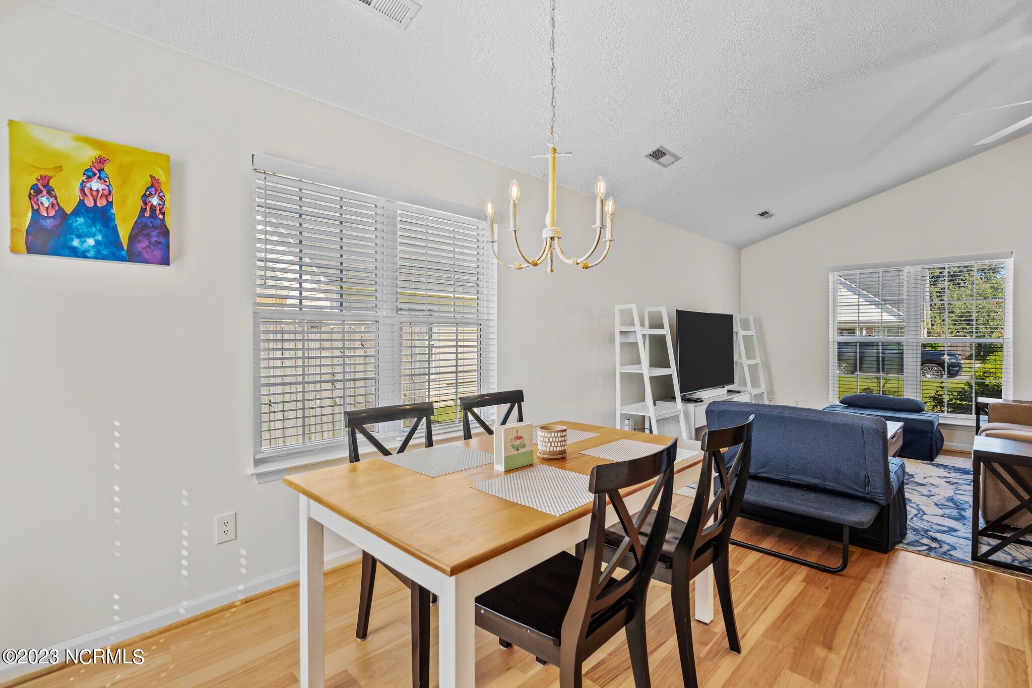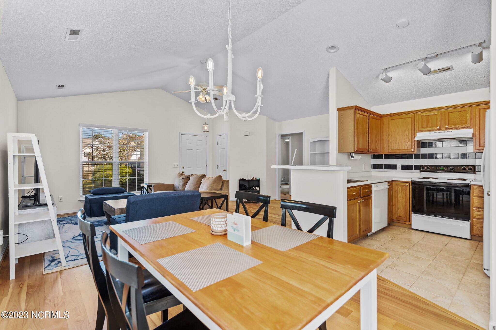 Price Improvement! This well-maintained, beautiful home is nestled near a cul-de-sac in the desirable Northchase subdivision. Conveniently located eight miles from Wrightsville Beach and eight miles from Wilmington's downtown riverfront, the neighborhood offers a wide range of outdoor amenities including a community pool, basketball court, tennis courts, picnic area, playground, frisbee course and trails for walking and biking. This spacious, three-bedroom two-bathroom home is equipped with a dining/kitchen combo, which provides a perfect flow for gathering and entertaining. The living area and kitchen feature engineered wood floors, and the bedrooms are carpeted. The large primary bedroom includes a generous walk-in closet. The roof and HVAC are both less than five years old, and all other appliances are in good working order. The washer and dryer will convey. Additionally, the garage and driveway offer plenty of parking space for family and friends. The back door opens to the backyard with a privacy fence and a wooden deck, a great spot for grilling out with friends or sipping a cup of coffee watching the sunrise. Come take a look at this move-in ready, turnkey home, and make the dream of living in Wilmington, North Carolina ''the state's best kept secret''a reality!