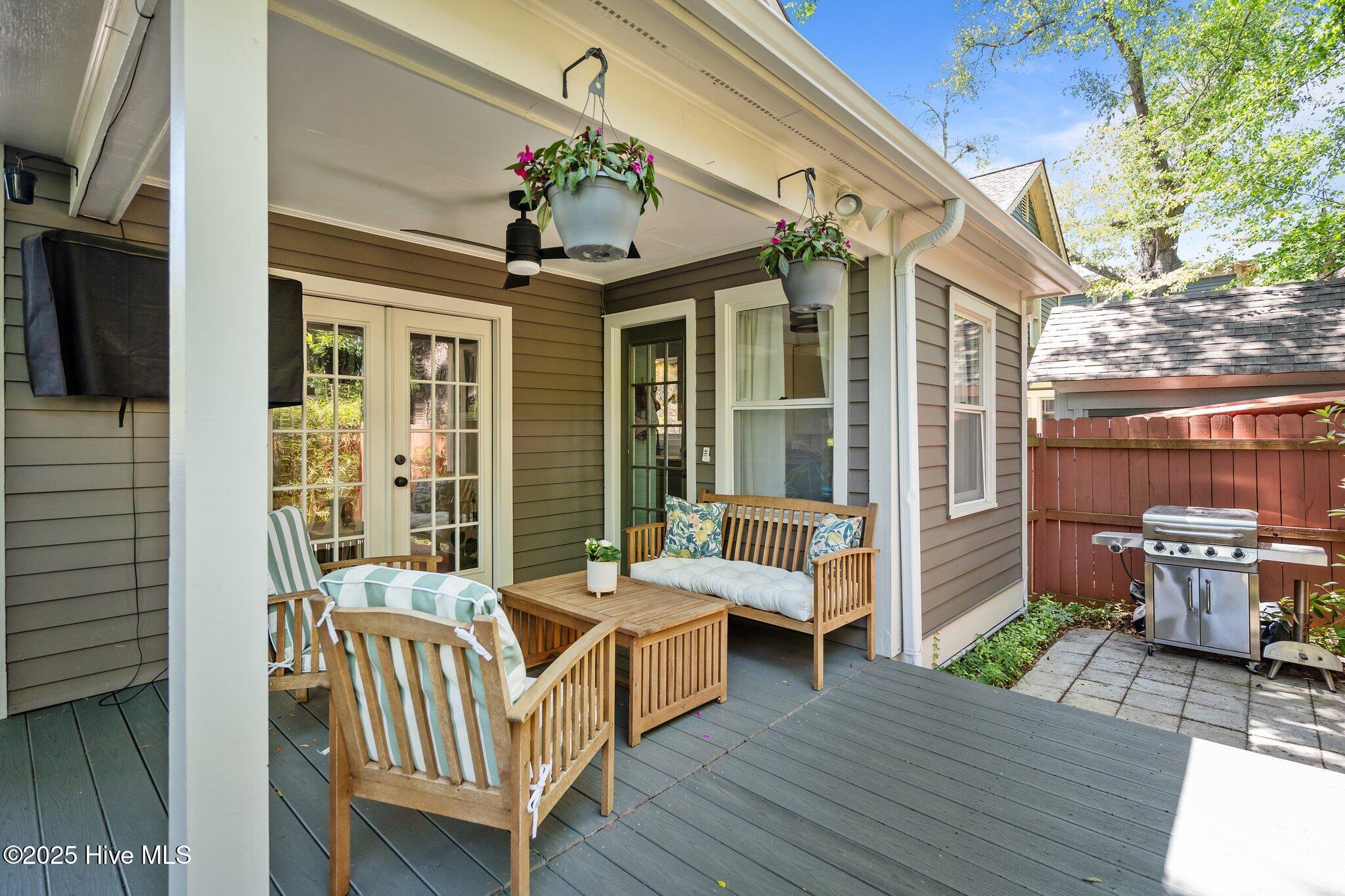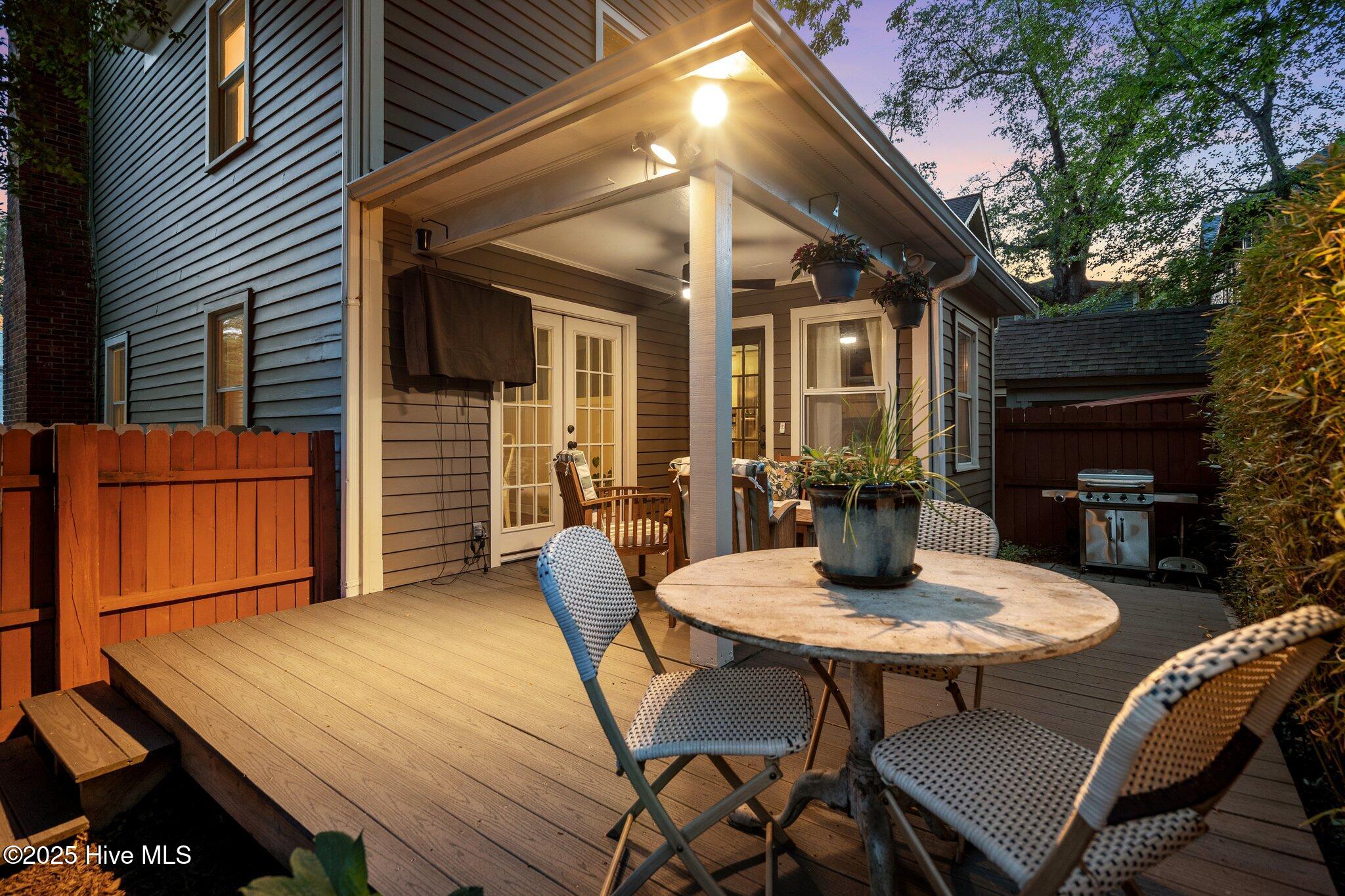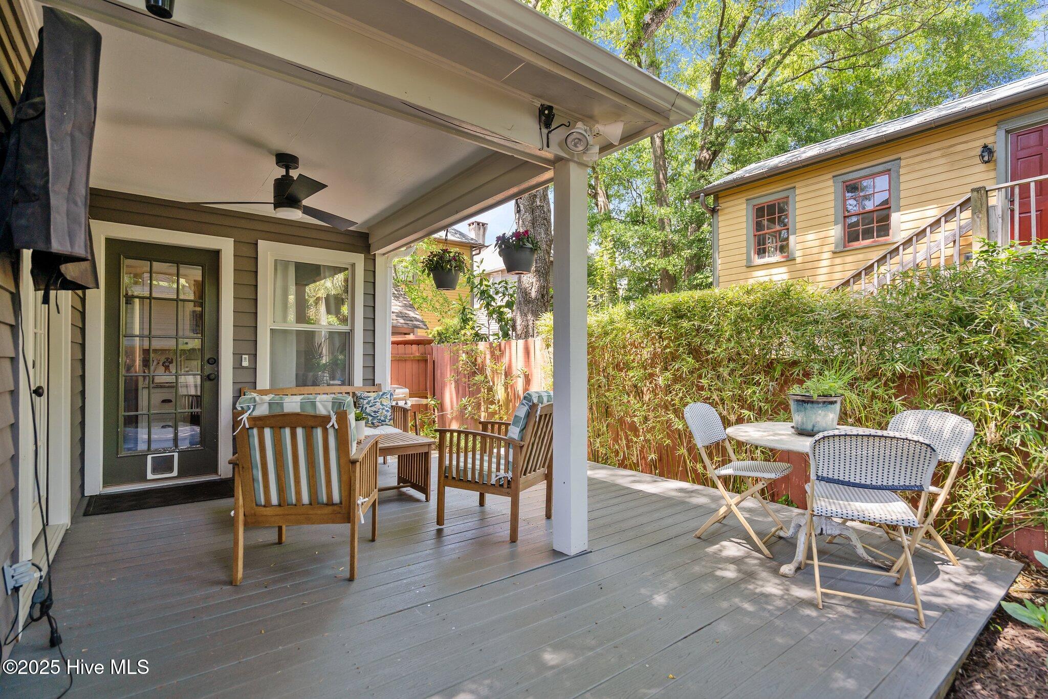 Welcome to 307 Nun Street -- a beautifully maintained Neo-Classical home in Wilmington's Historic District. Built in 1980 with traditional architecture that blends seamlessly into the neighborhood, this ''young'' historic home offers timeless charm with modern updates. Inside, you'll find 3 bedrooms, 2.5 baths, and a host of upgrades including updated bathrooms, French doors leading to a partially covered rear deck, and an updated kitchen. Enjoy evenings on the charming front porch, gather around the fire pit in the spacious backyard, or relax on the rear deck. The oversized shed has been converted into a stylish bar/office space. With off-street parking for two and just a short stroll to downtown dining, coffee shops, and nightlife, this home is downtown living at its best.
