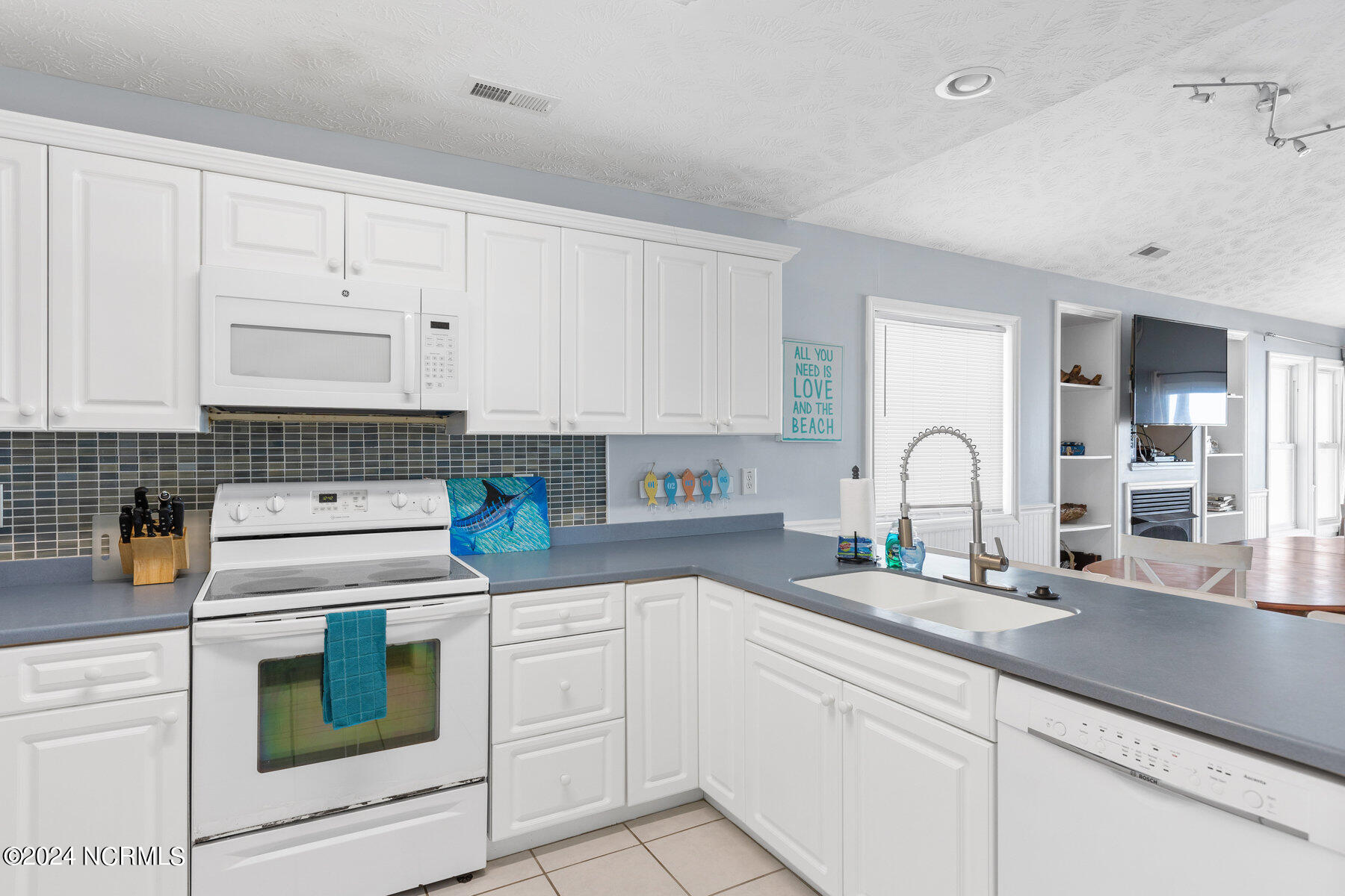 This spacious oceanfront home located inside the S-curve on quiet South Shore Drive features vaulted ceilings, recessed lighting, a bright open floorplan, and walls of windows that provide ocean views throughout. Offered fully furnished, decorated and ready for summer fun.