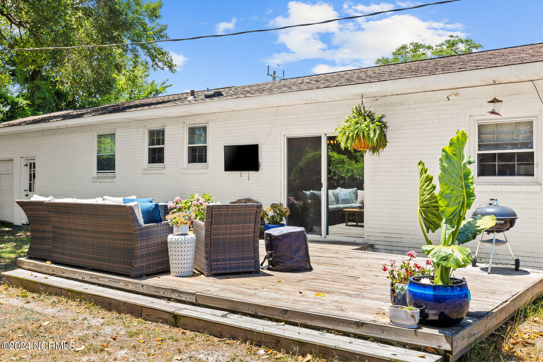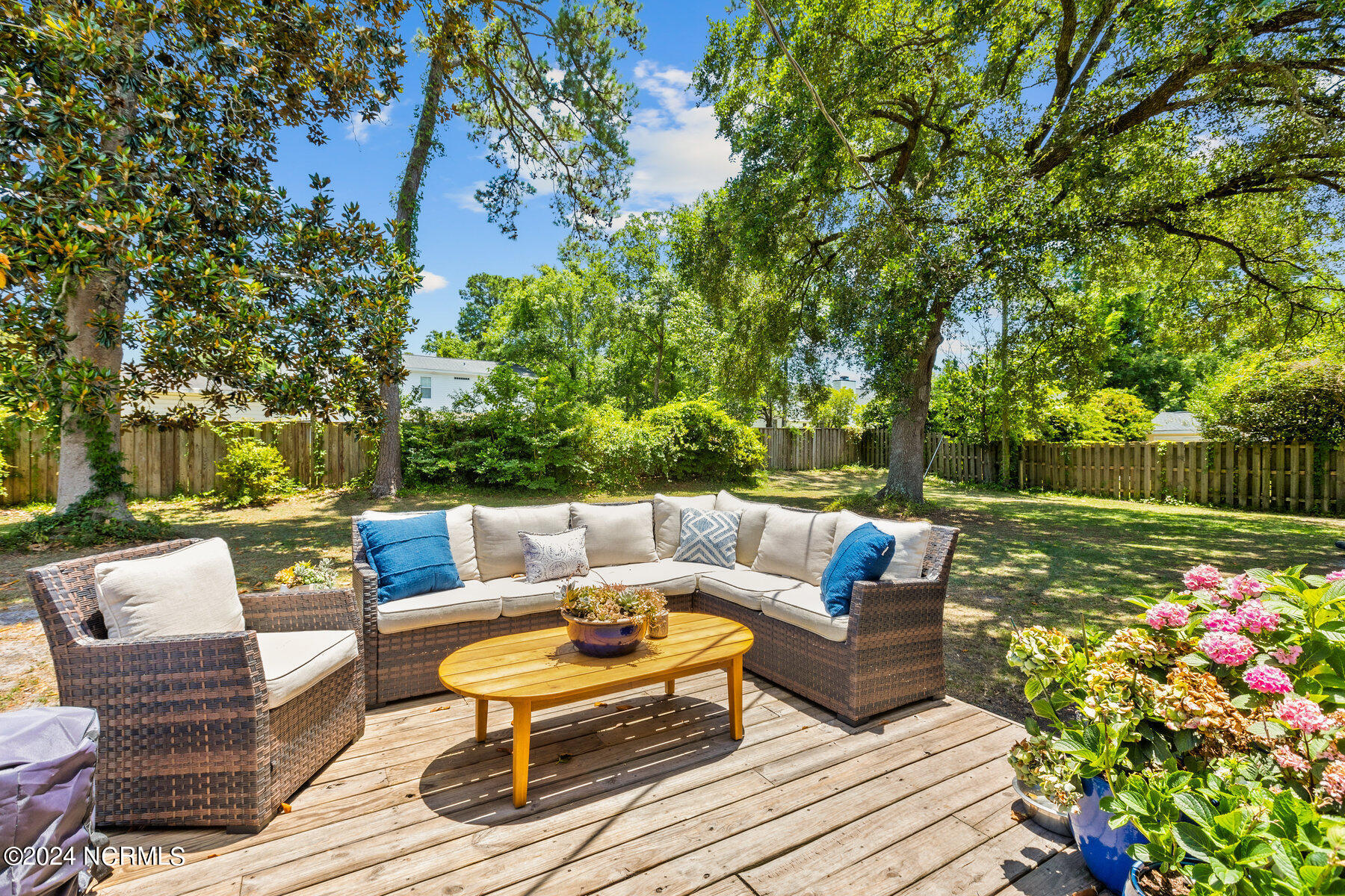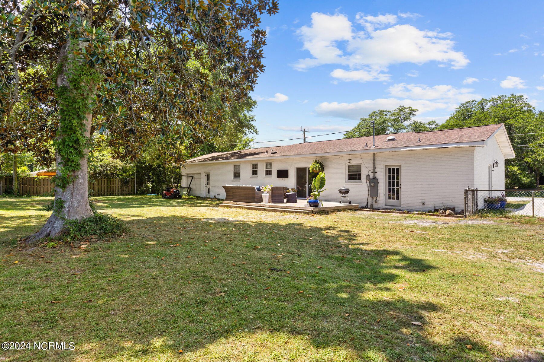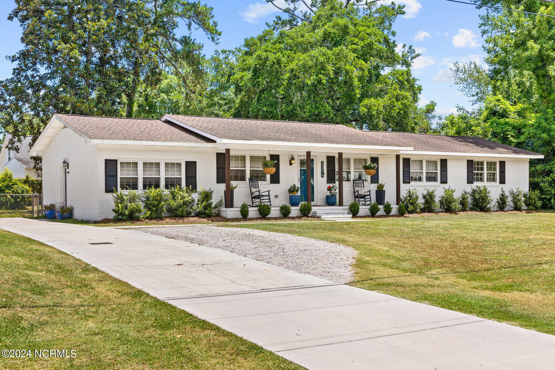 With over 1,600 square feet of living space, this coastal ranch with a charming front porch offers three comfortable bedrooms and 1.5 bathrooms. Up-to-date and includes brand new AC unit installed 8/29/2024 with warranty that transfers to new owner, it exudes southern charm and modern comfort, making it the perfect place to call home. As you step inside, you'll be greeted with classic hardwood floors that flow seamlessly throughout the living areas and bedrooms. The open floor concept creates an inviting and airy atmosphere, enhanced by an abundance of natural light streaming through large windows. The home features a generous den, perfect for relaxing or entertaining guests. An additional living space used as an office and sitting area. For your storage needs, a one-car garage is conveniently located at the rear of the property. The fully fenced-in yard provides a private oasis with a beautiful oak tree, ideal for outdoor activities and gatherings. Don't miss out on this wonderful home in a fantastic location, minutes from Wrightsville Beach!