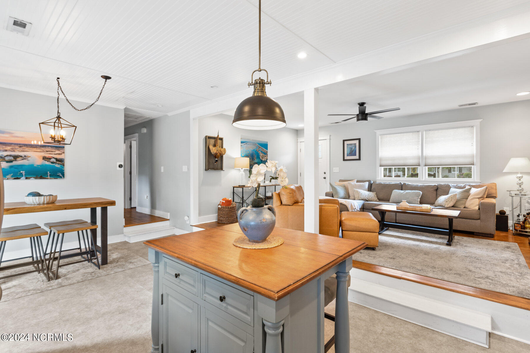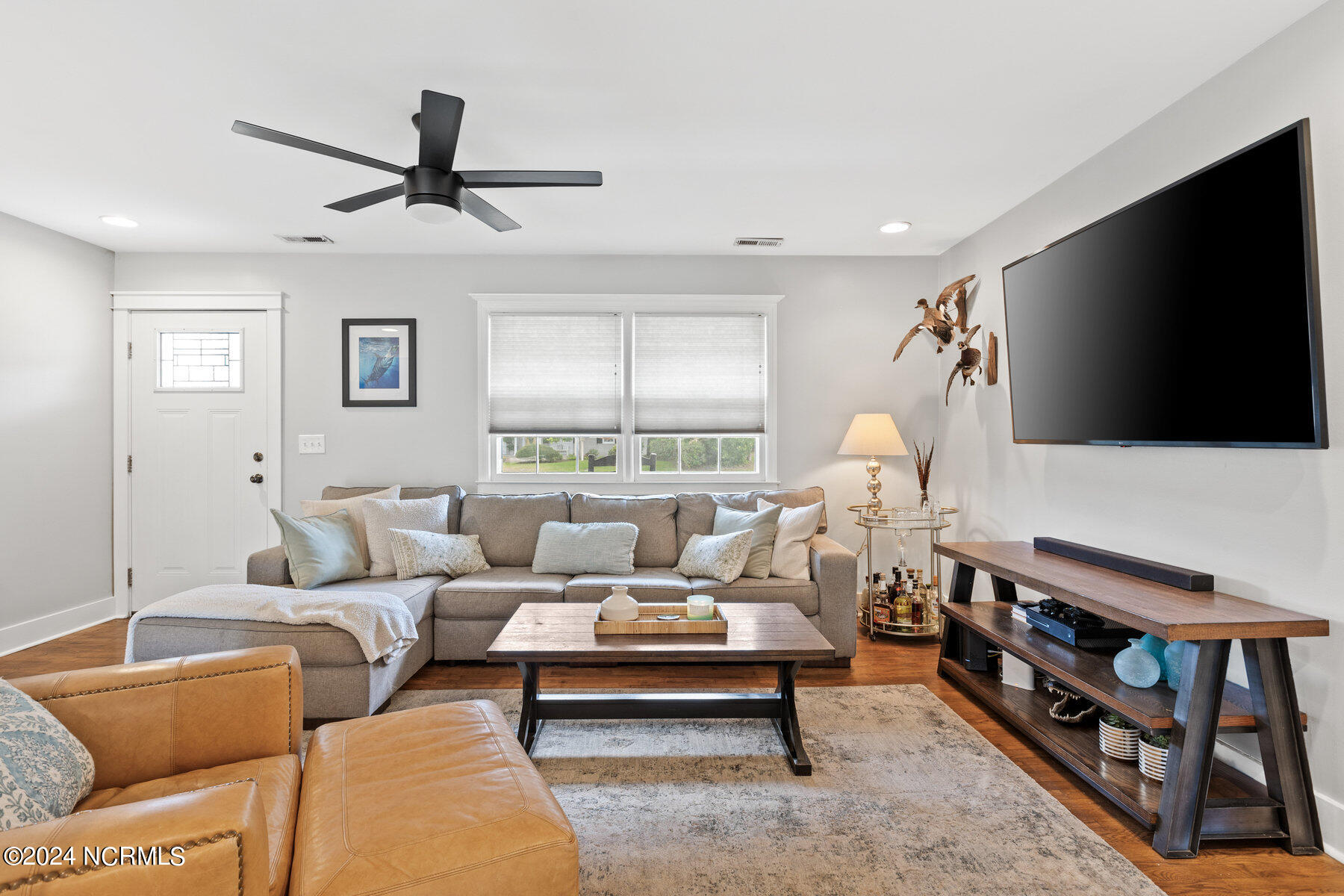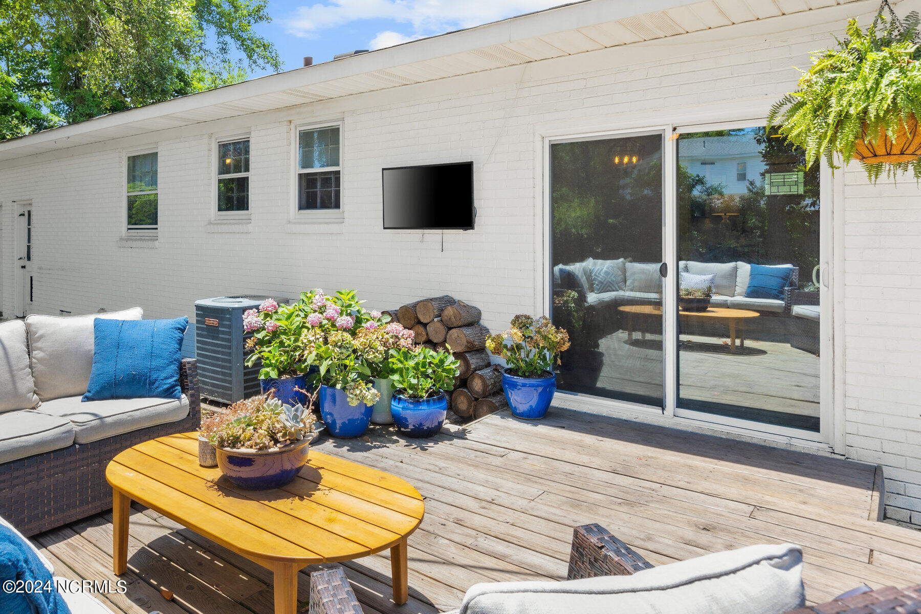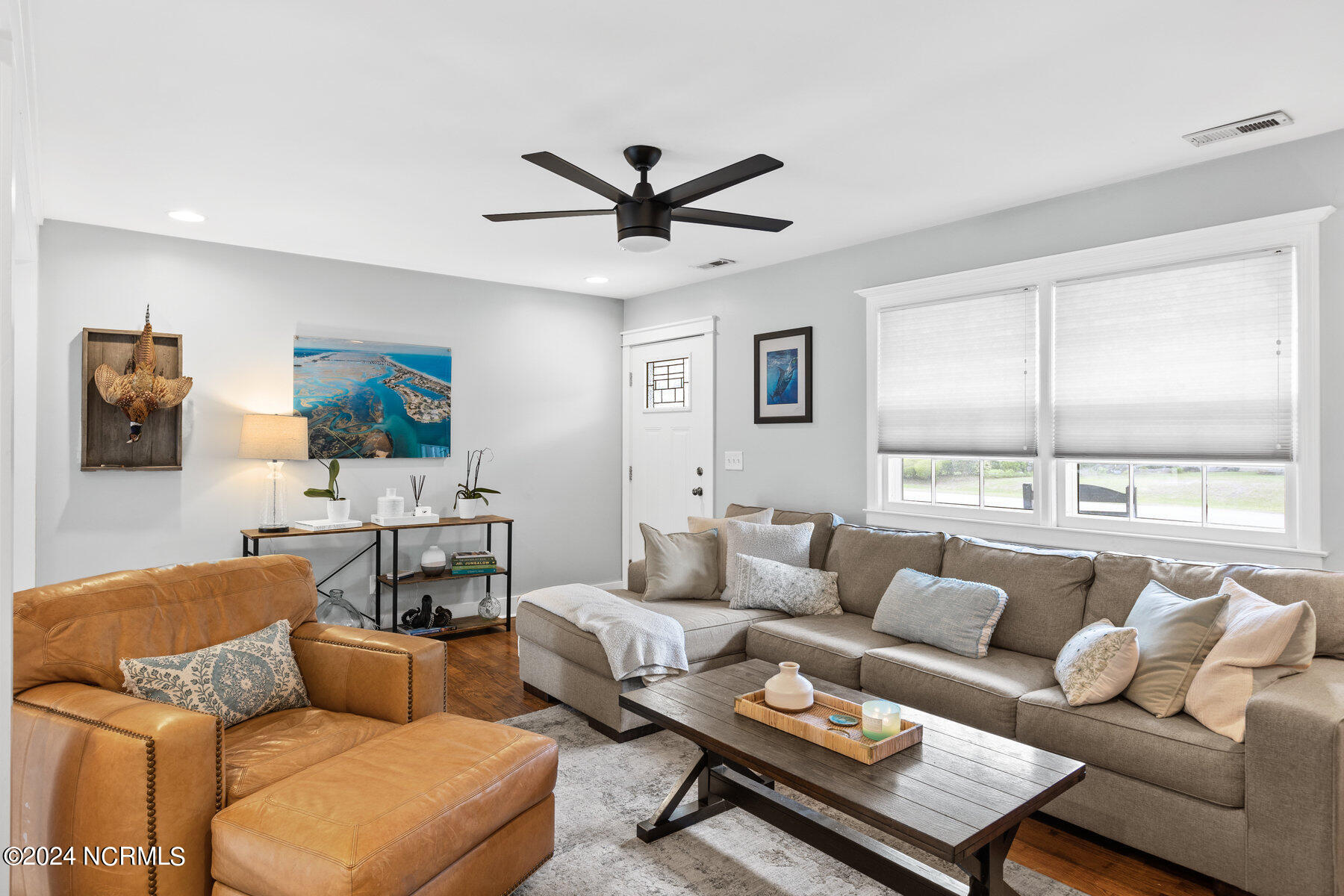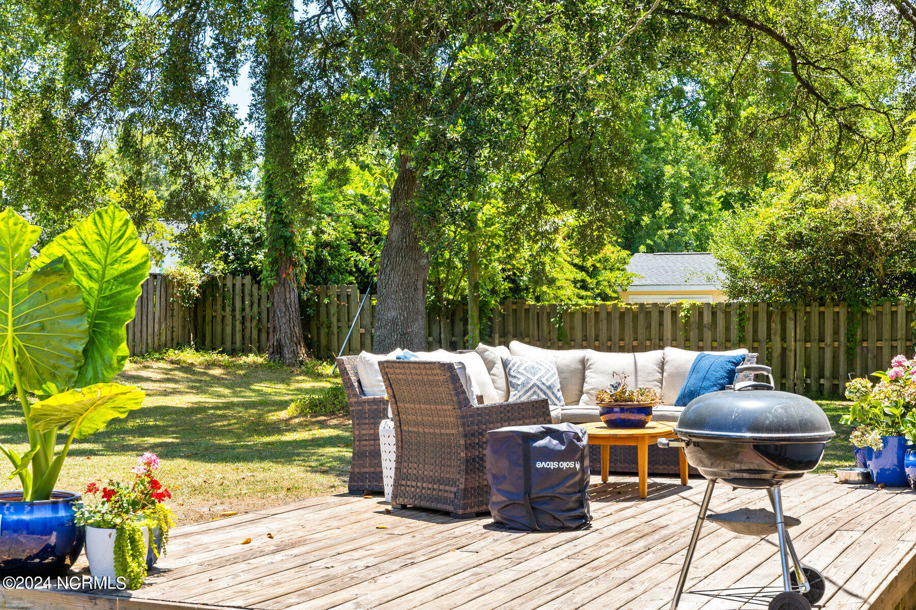 With over 1,600 square feet of living space, this coastal ranch with a charming front porch offers three comfortable bedrooms and 1.5 bathrooms. Up-to-date and includes brand new AC unit installed 8/29/2024 with warranty that transfers to new owner, it exudes southern charm and modern comfort, making it the perfect place to call home. As you step inside, you'll be greeted with classic hardwood floors that flow seamlessly throughout the living areas and bedrooms. The open floor concept creates an inviting and airy atmosphere, enhanced by an abundance of natural light streaming through large windows. The home features a generous den, perfect for relaxing or entertaining guests. An additional living space used as an office and sitting area. For your storage needs, a one-car garage is conveniently located at the rear of the property. The fully fenced-in yard provides a private oasis with a beautiful oak tree, ideal for outdoor activities and gatherings. Don't miss out on this wonderful home in a fantastic location, minutes from Wrightsville Beach!