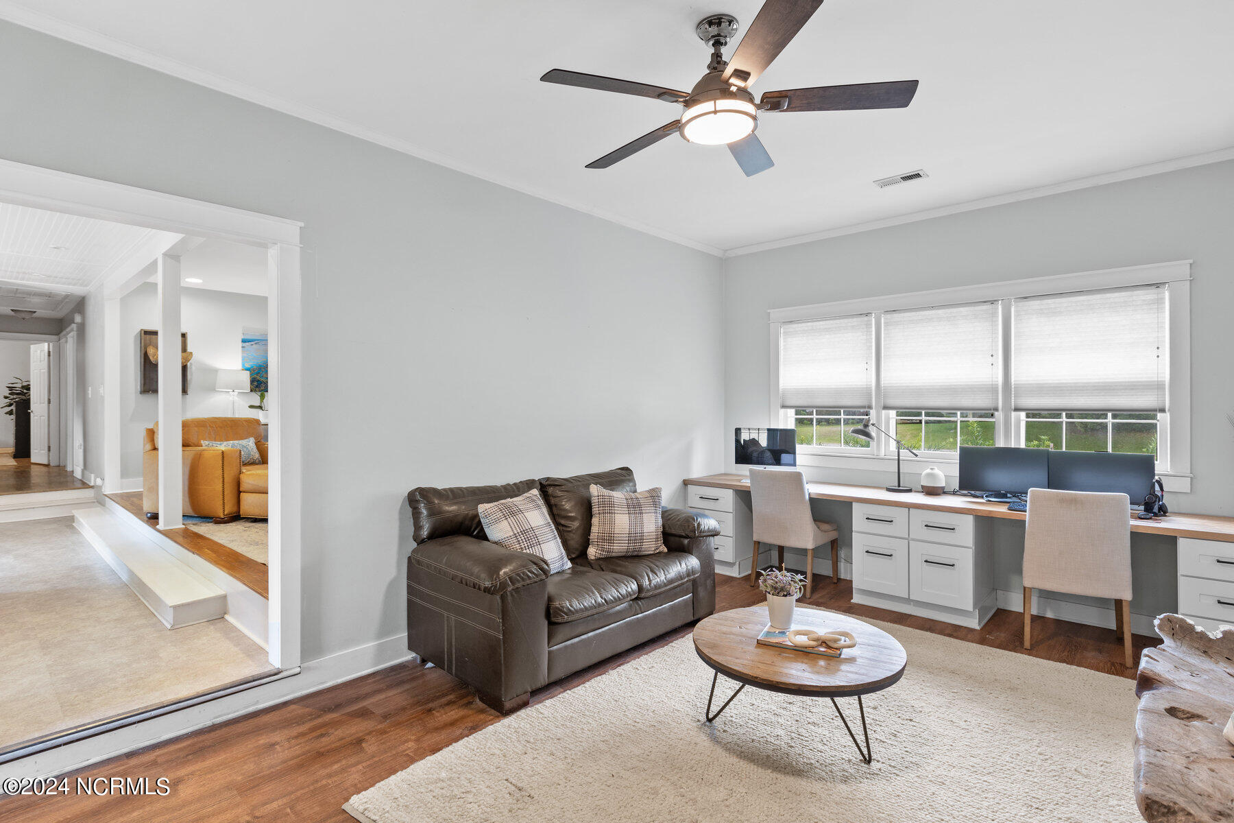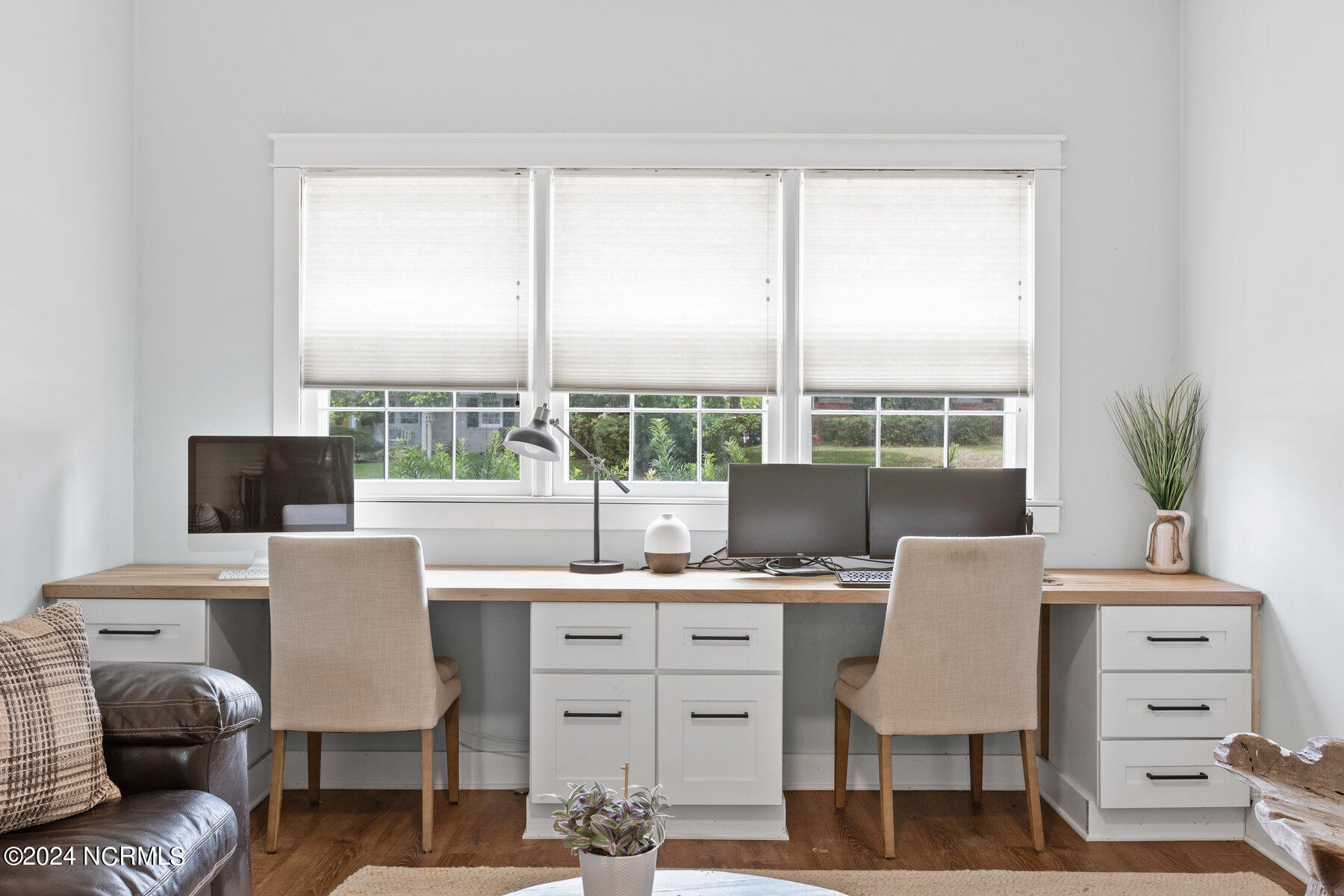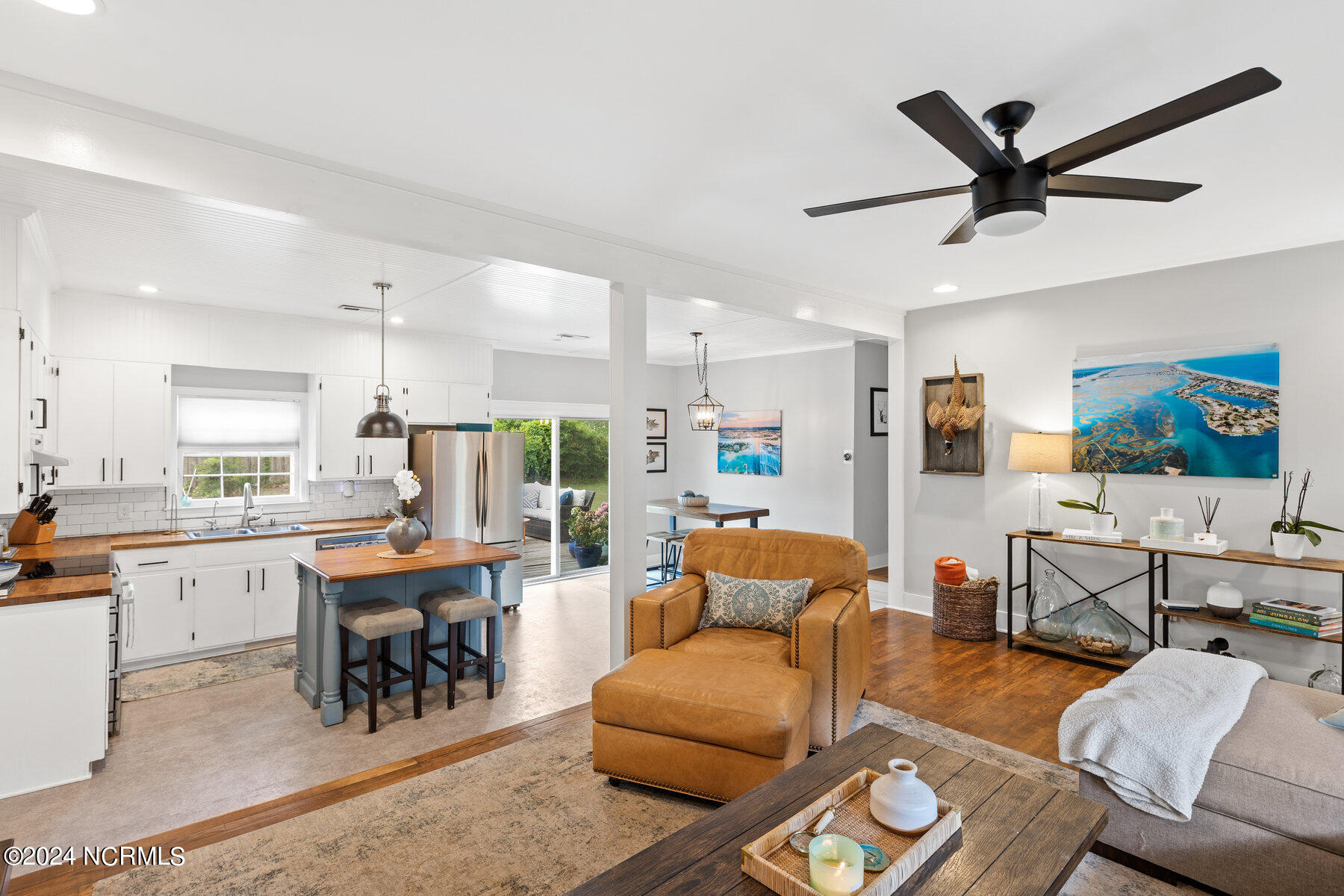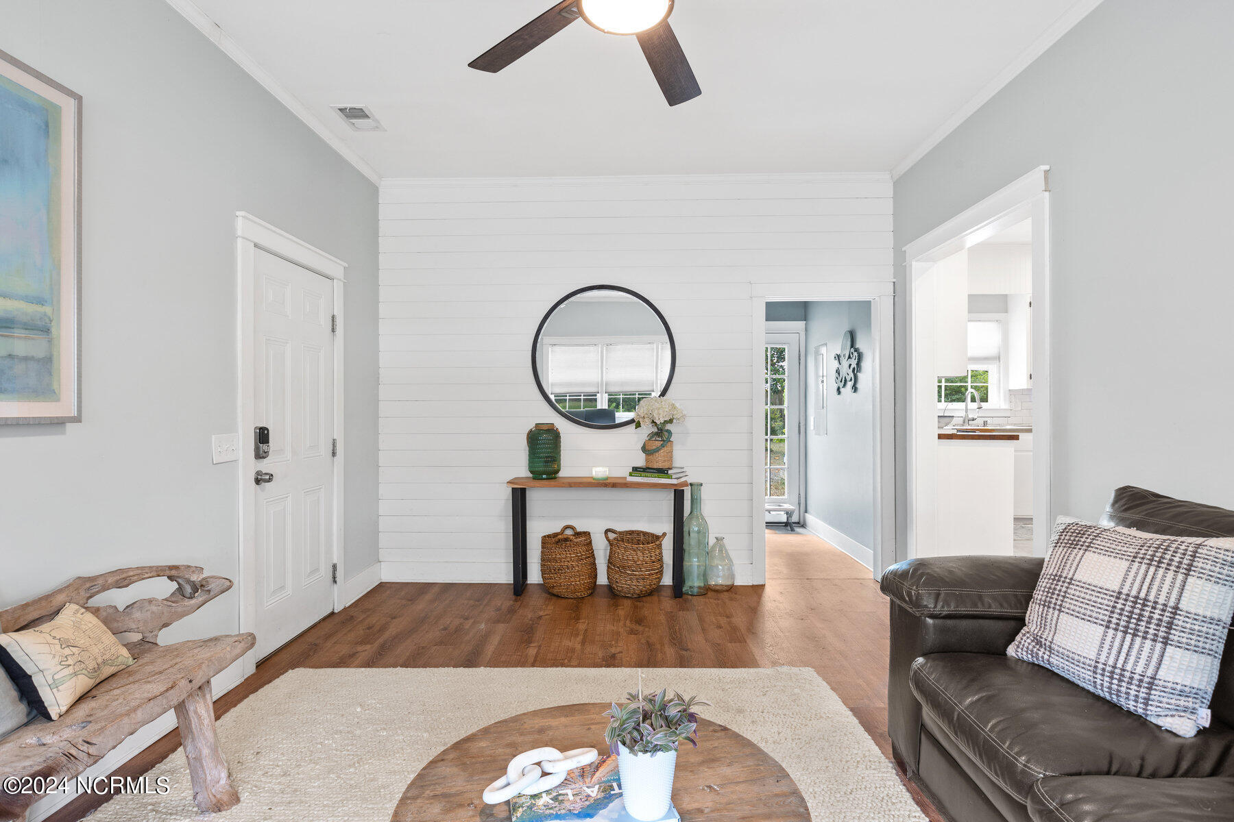 With over 1,600 square feet of living space, this coastal ranch with a charming front porch offers three comfortable bedrooms and 1.5 bathrooms. Up-to-date and includes brand new AC unit installed 8/29/2024 with warranty that transfers to new owner, it exudes southern charm and modern comfort, making it the perfect place to call home. As you step inside, you'll be greeted with classic hardwood floors that flow seamlessly throughout the living areas and bedrooms. The open floor concept creates an inviting and airy atmosphere, enhanced by an abundance of natural light streaming through large windows. The home features a generous den, perfect for relaxing or entertaining guests. An additional living space used as an office and sitting area. For your storage needs, a one-car garage is conveniently located at the rear of the property. The fully fenced-in yard provides a private oasis with a beautiful oak tree, ideal for outdoor activities and gatherings. Don't miss out on this wonderful home in a fantastic location, minutes from Wrightsville Beach!