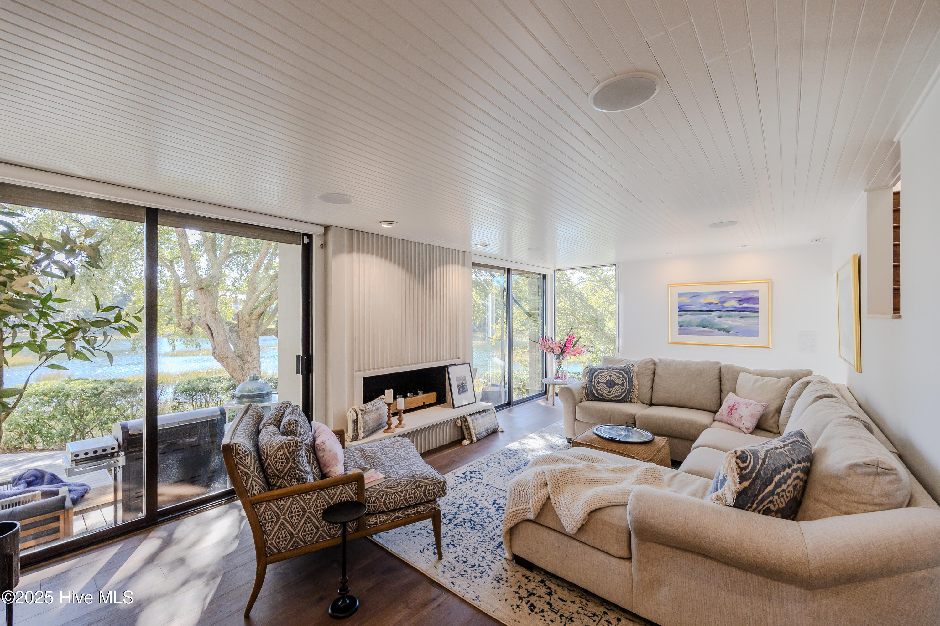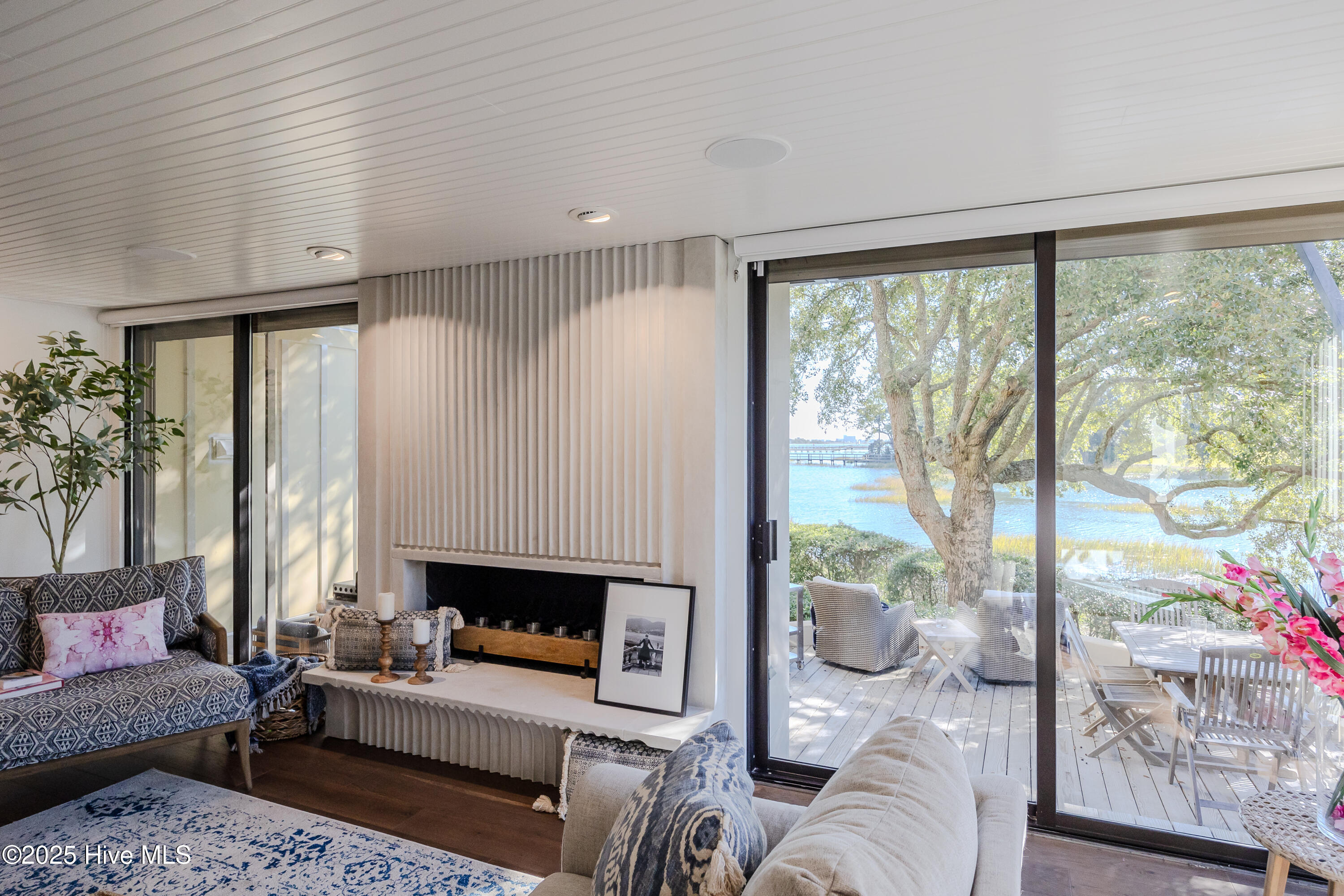 The interior was fully renovated with high-end finishes, natural textures, and thoughtful design that blends comfort with understated elegance. Surrounded by water on two sides, this townhome offers a peaceful and immersive coastal setting rarely found in Wilmington.