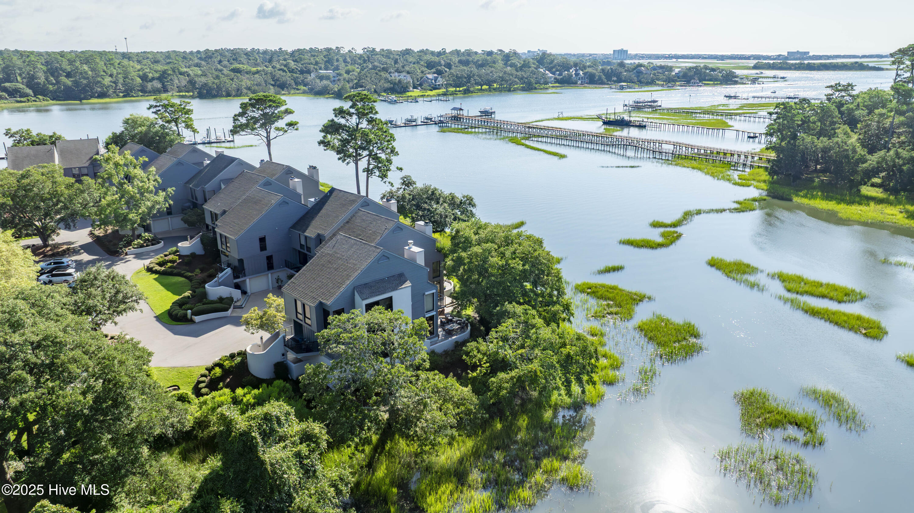 This beautifully renovated, luxury end-unit townhome is tucked away in the private waterfront community of Bradley Oaks. Bordering the marsh, the home offers unmatched privacy with serene views of oak trees, native wildlife, and coastal sunlight to the south. To the east, floor-to-ceiling windows fill the space with natural light and provide sweeping views of Bradley Creek, the Intracoastal Waterway, and Wrightsville Beach.