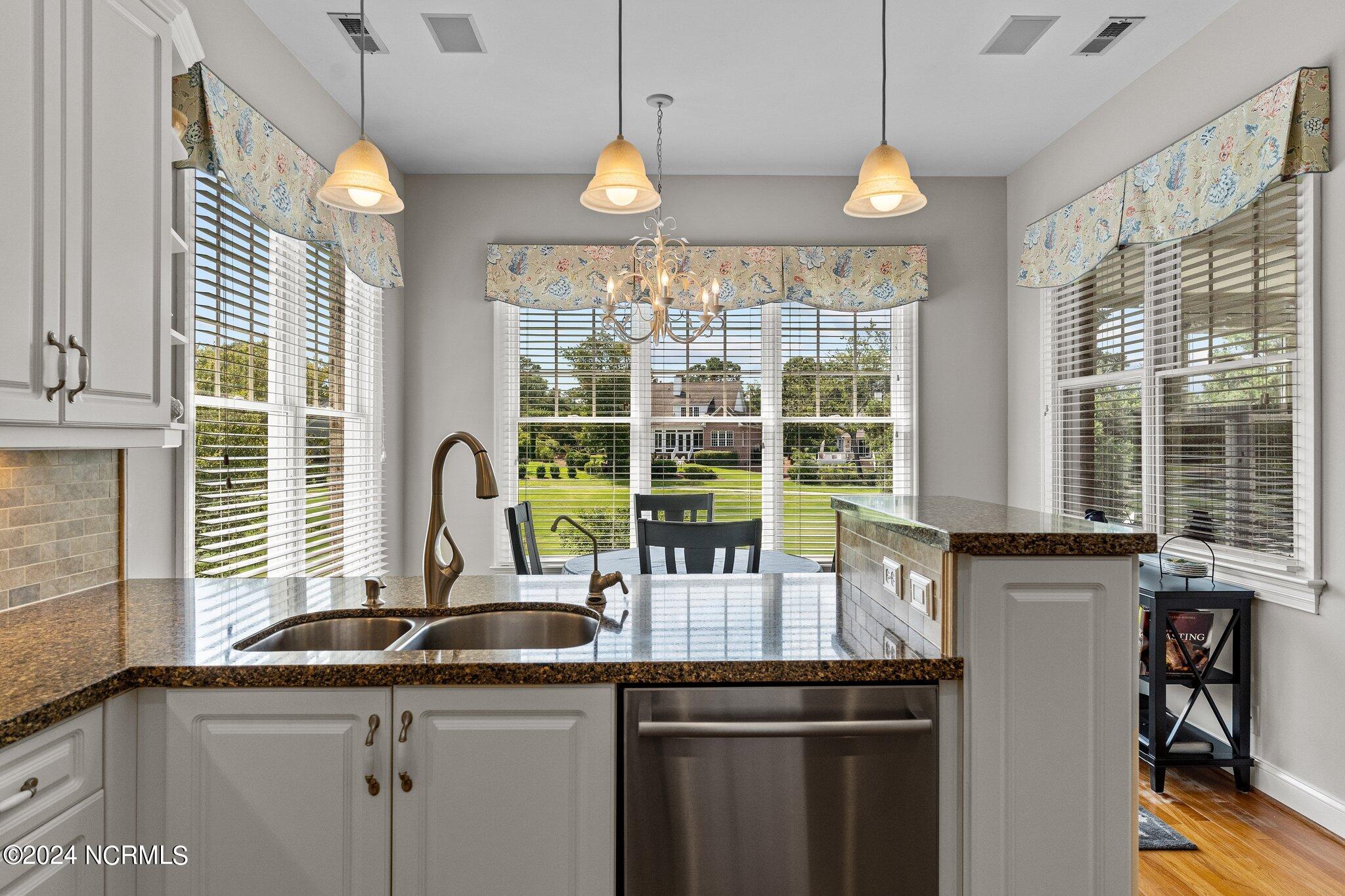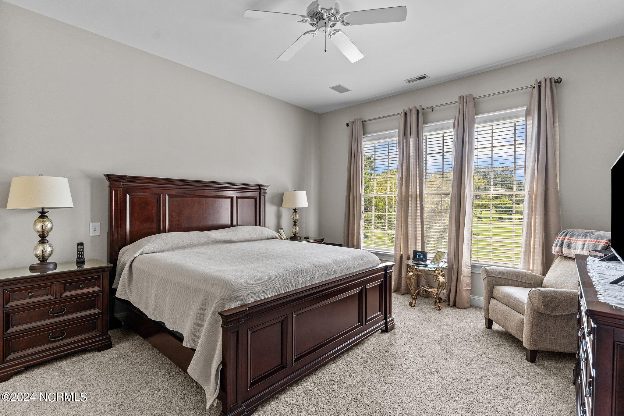 The kitchen is a chef's dream, equipped with top-of-the-line appliances, a reverse osmosis water system, and a butler's pantry with ample cabinetry and a wine rack. The adjacent breakfast nook and sunroom provide stunning views of the golf course, making every meal a scenic experience. The first-level master suite is a highlight, boasting two walk-in closets and an attached laundry room for added convenience.Additional features include a shared well for irrigation, ensuring lush and well-maintained grounds. Outdoor enthusiasts will appreciate the short walk to the Intracoastal Waterway (ICWW) for activities such as kayaking, picnics, or boating. For those seeking further amenities, membership to Porters Neck Country Club is available for separate purchase. This membership offers access to golf, fitness facilities, dining options, a pool, tennis, and pickleball, enhancing the lifestyle offered by this exceptional home.