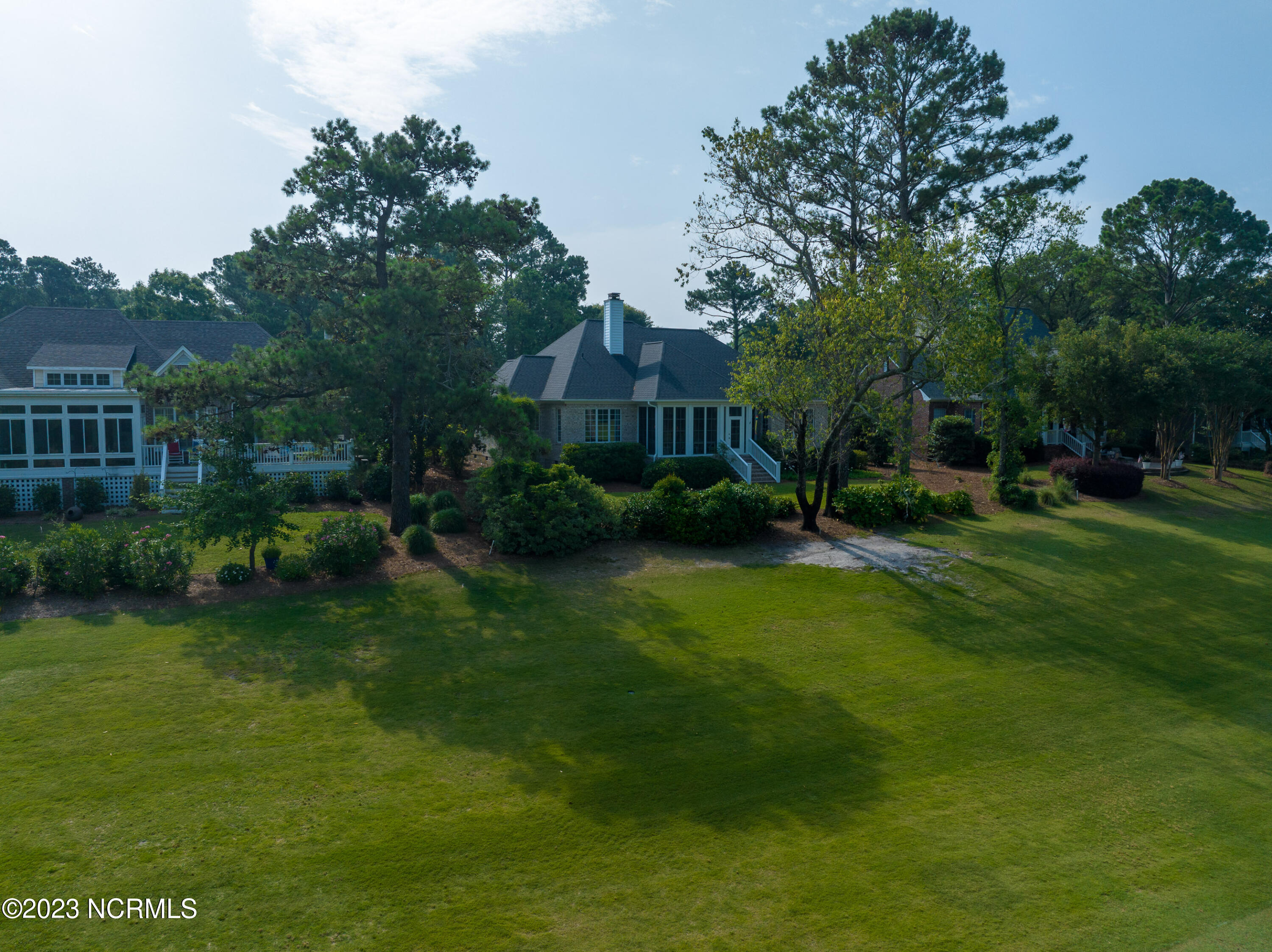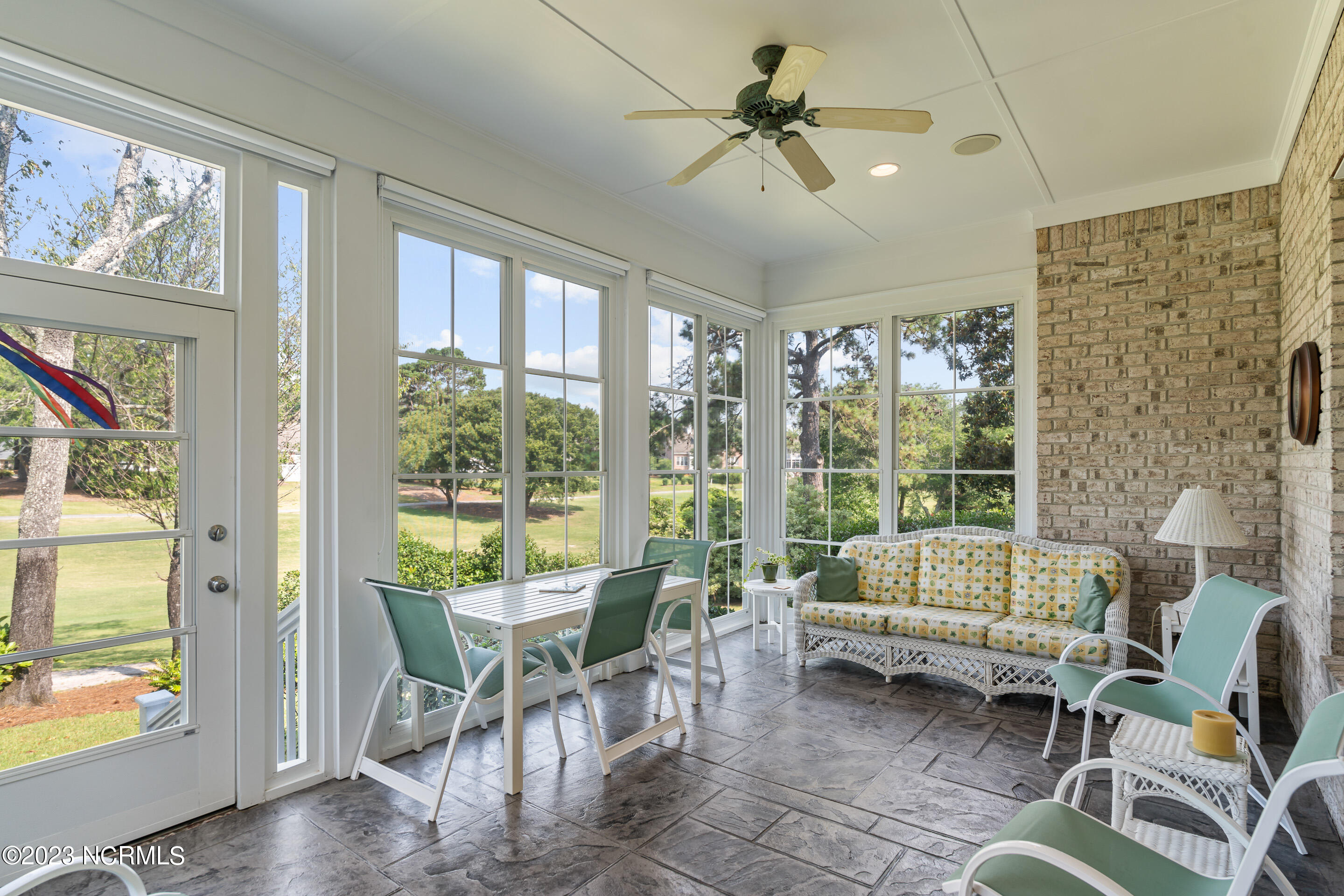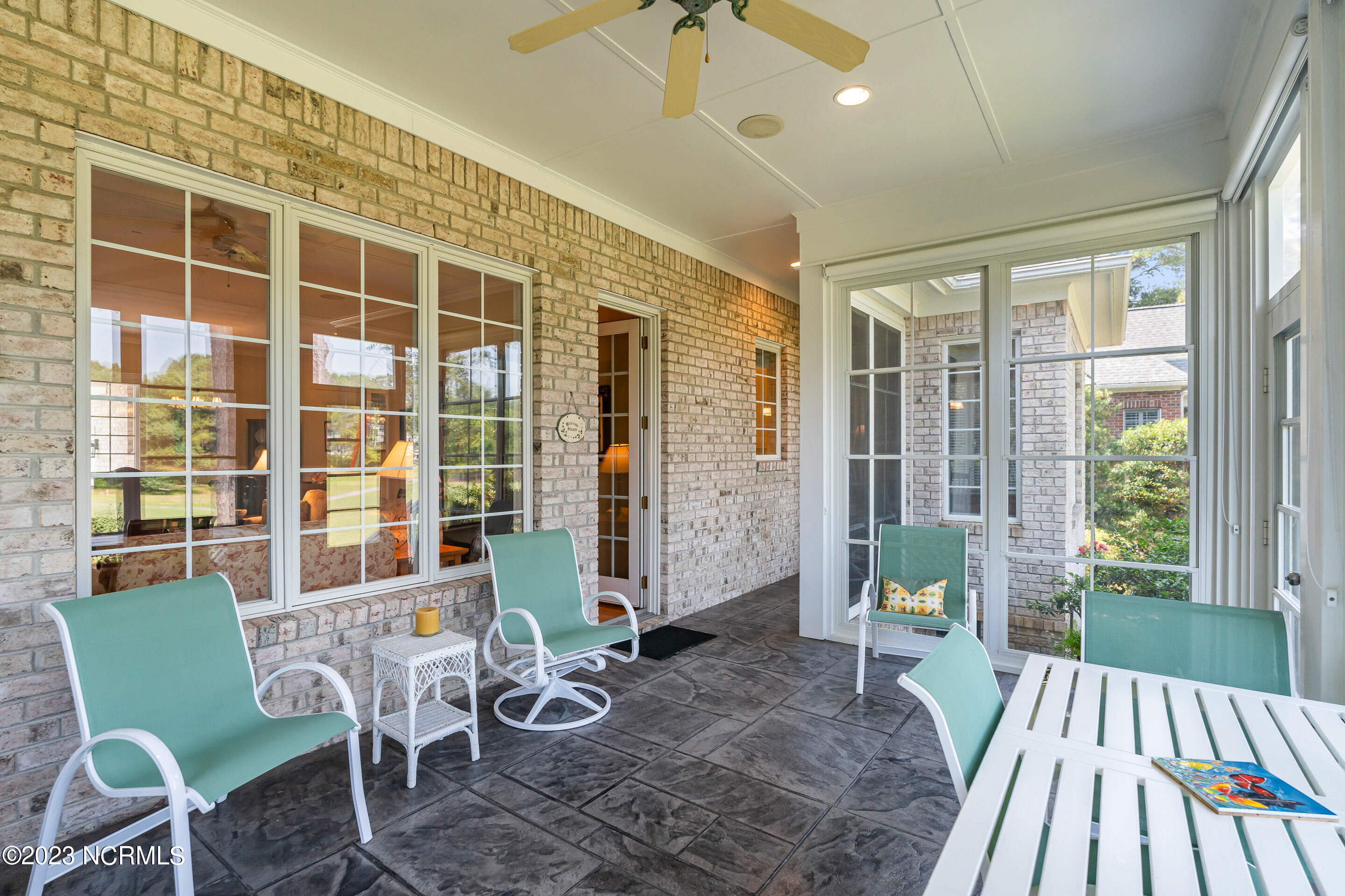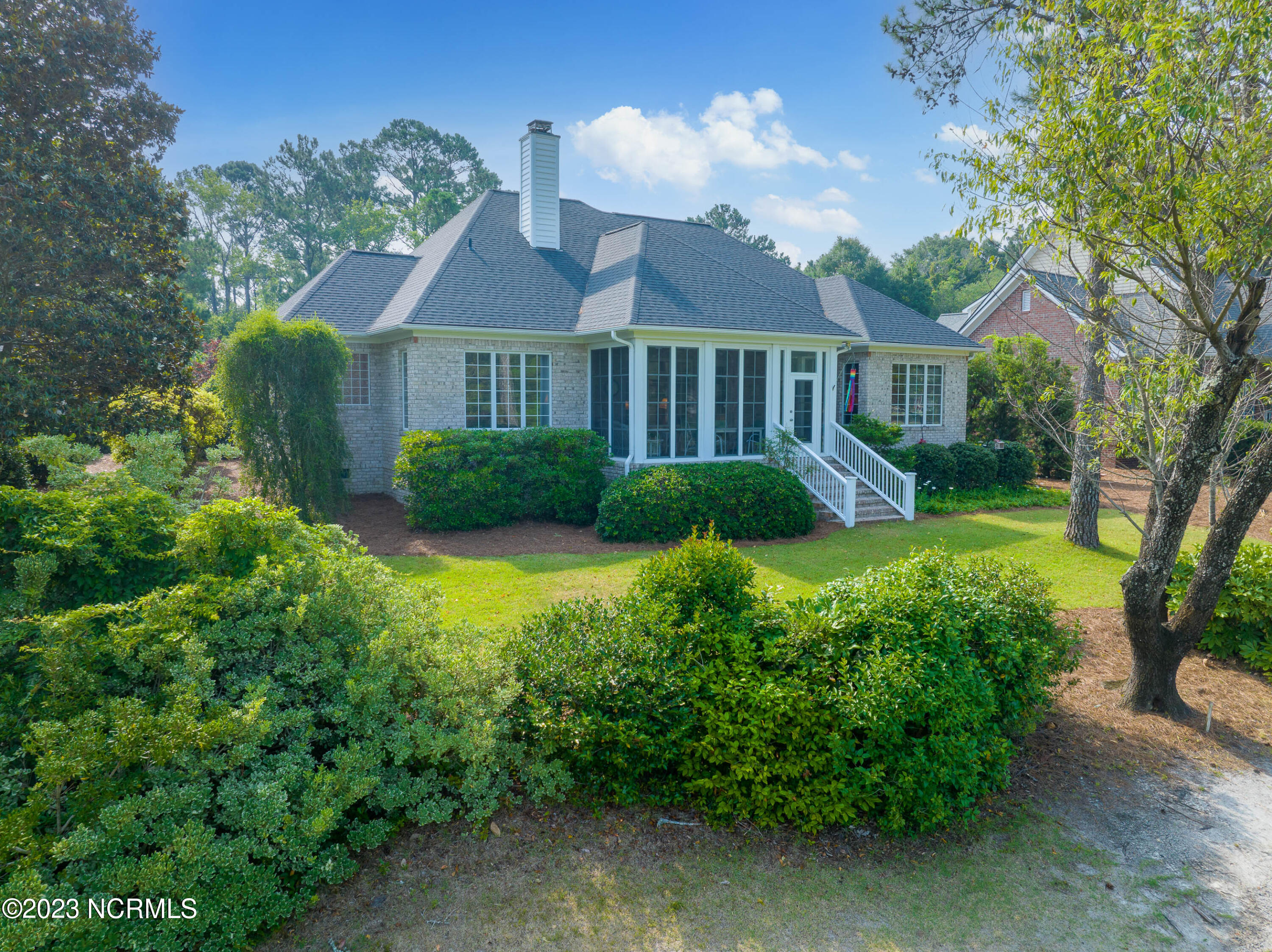 Welcome to this elegant brick home situated on an elevated lot overlooking the 17th hole in the sought-after gated community of Porters Neck Plantation. This three-bed/three-bath home has a welcoming foyer that leads into the sun-filled living room complete with a fireplace and built-in bookshelves. The spacious kitchen opens to the breakfast nook and additional seating area overlooking the 17th hole. Step out into the private and spacious sunroom to relax at the end of a long day and enjoy the serene golf course views after dusk. Enjoy primarily one-level living with three of the four bedrooms on the main level. The master suite boasts golf course views, a large walk-in closet, tub and walk-in shower. Enjoy the privacy of the oversized bonus room perfect for an office or media room. Plenty of storage is available with the walk-in attic spaces. The roof was replaced in 2019 and a termite bond in place. Brand new HVAC, central vacuum and shared well for irrigation. Enjoy the added privacy from the front porch with no house directly across the street on the unbuildable lot. Just a short walk to the Intracoastal Waterway where you can kayak, picnic, or boat. Membership to Porters Neck Country Club is available for separate purchase. Amenities include golf, fitness, dining, pool, tennis, and Pickleball.
