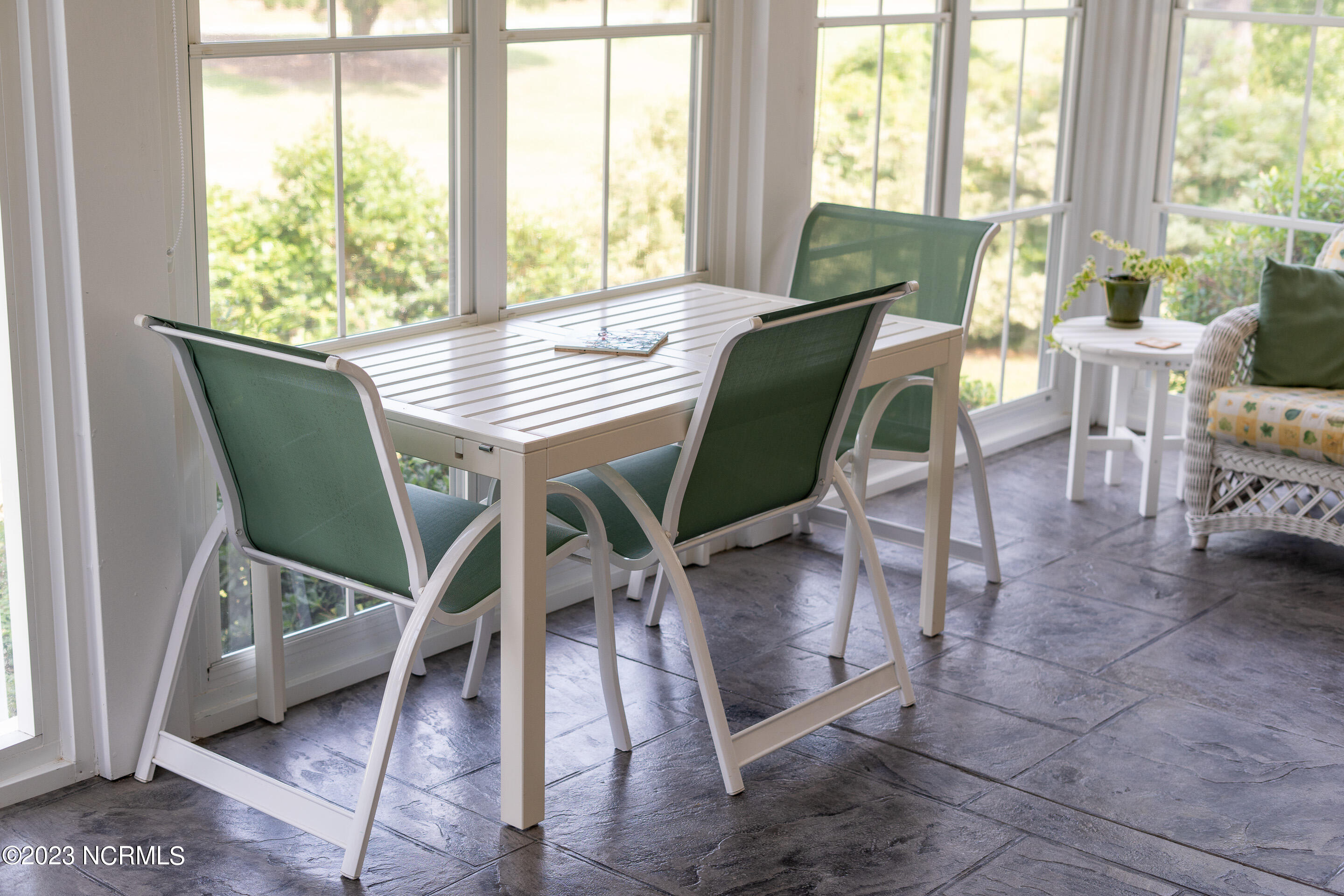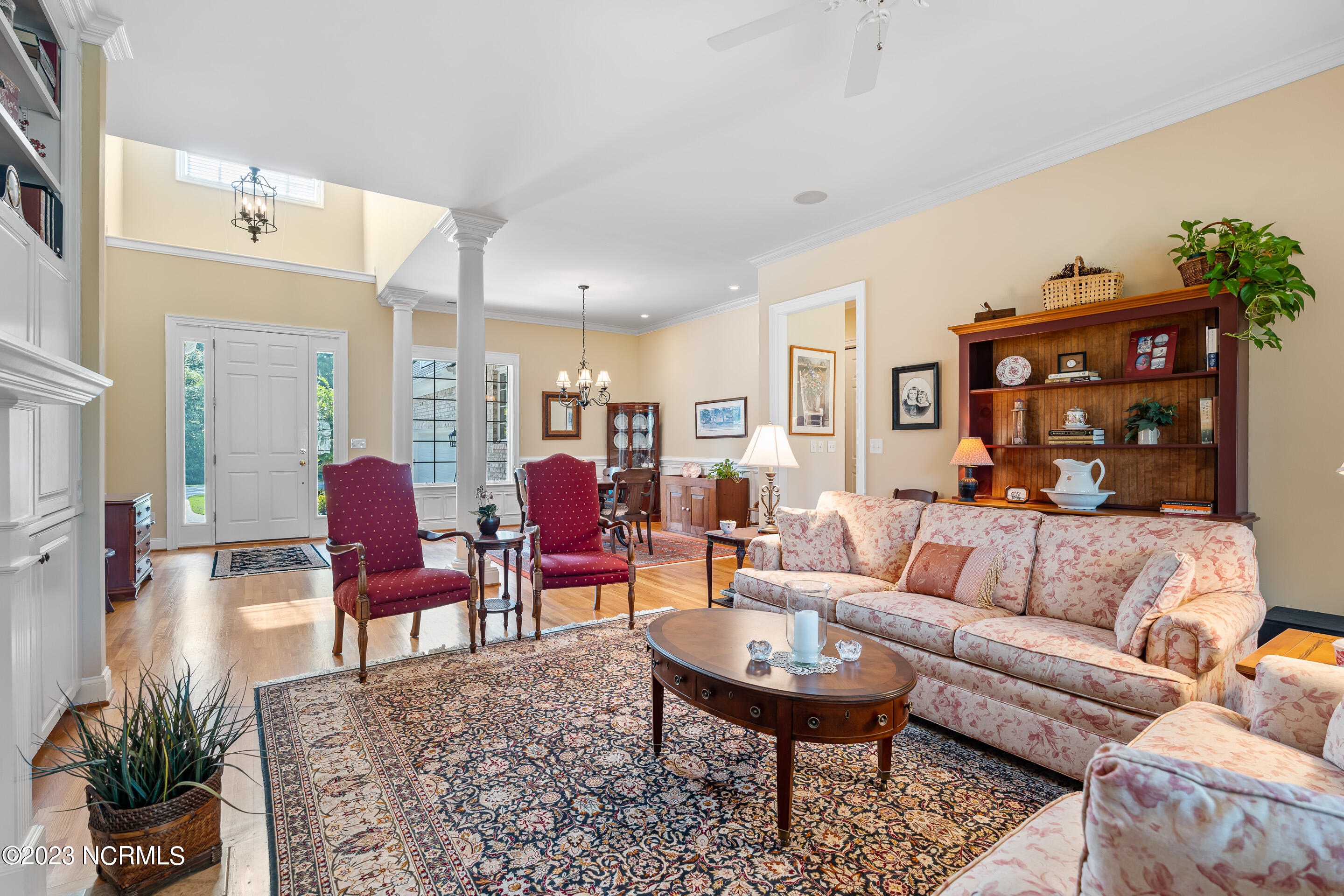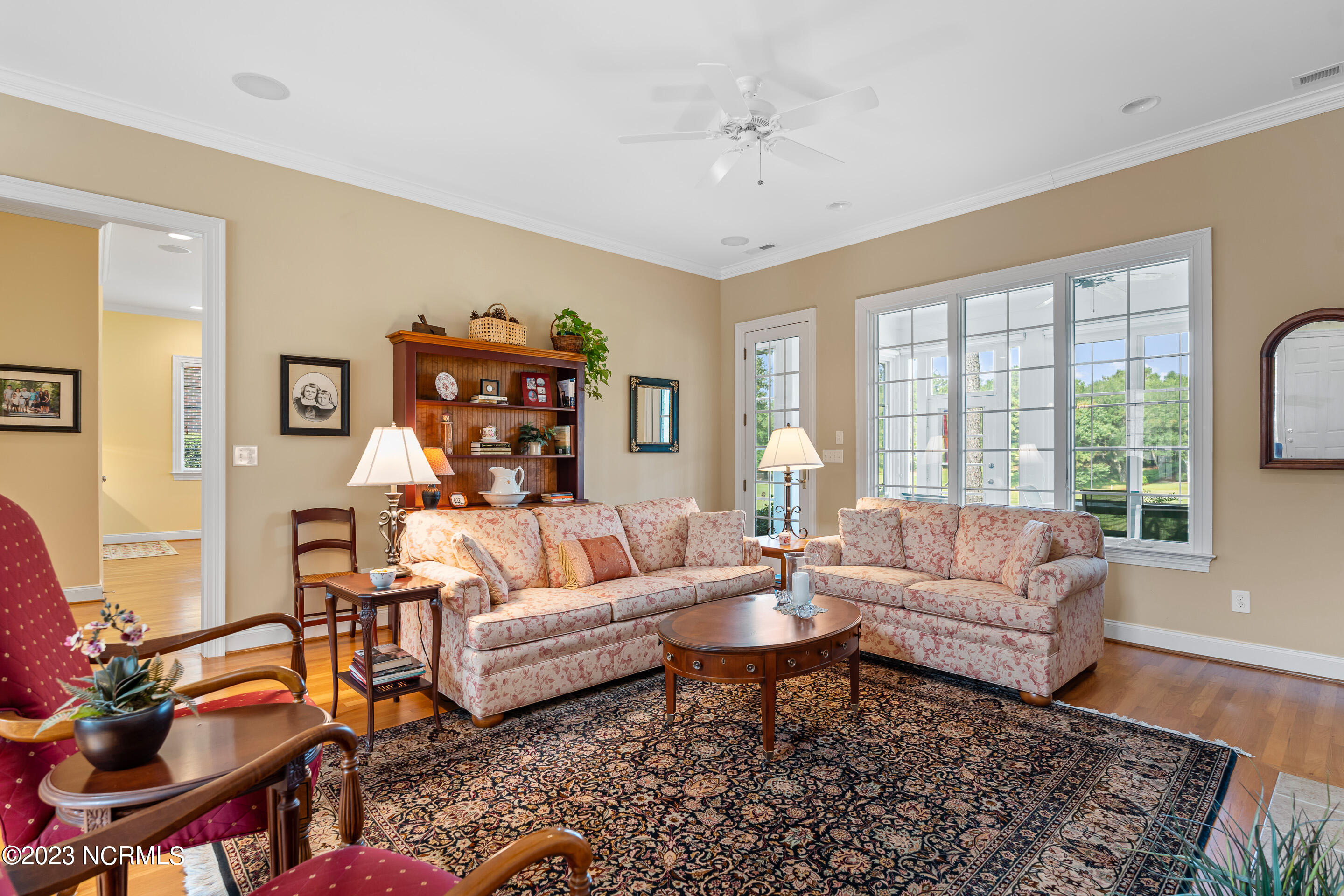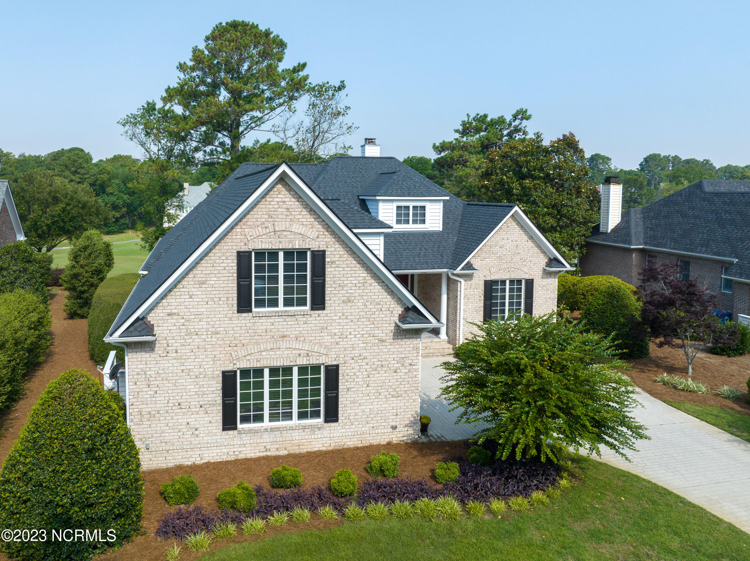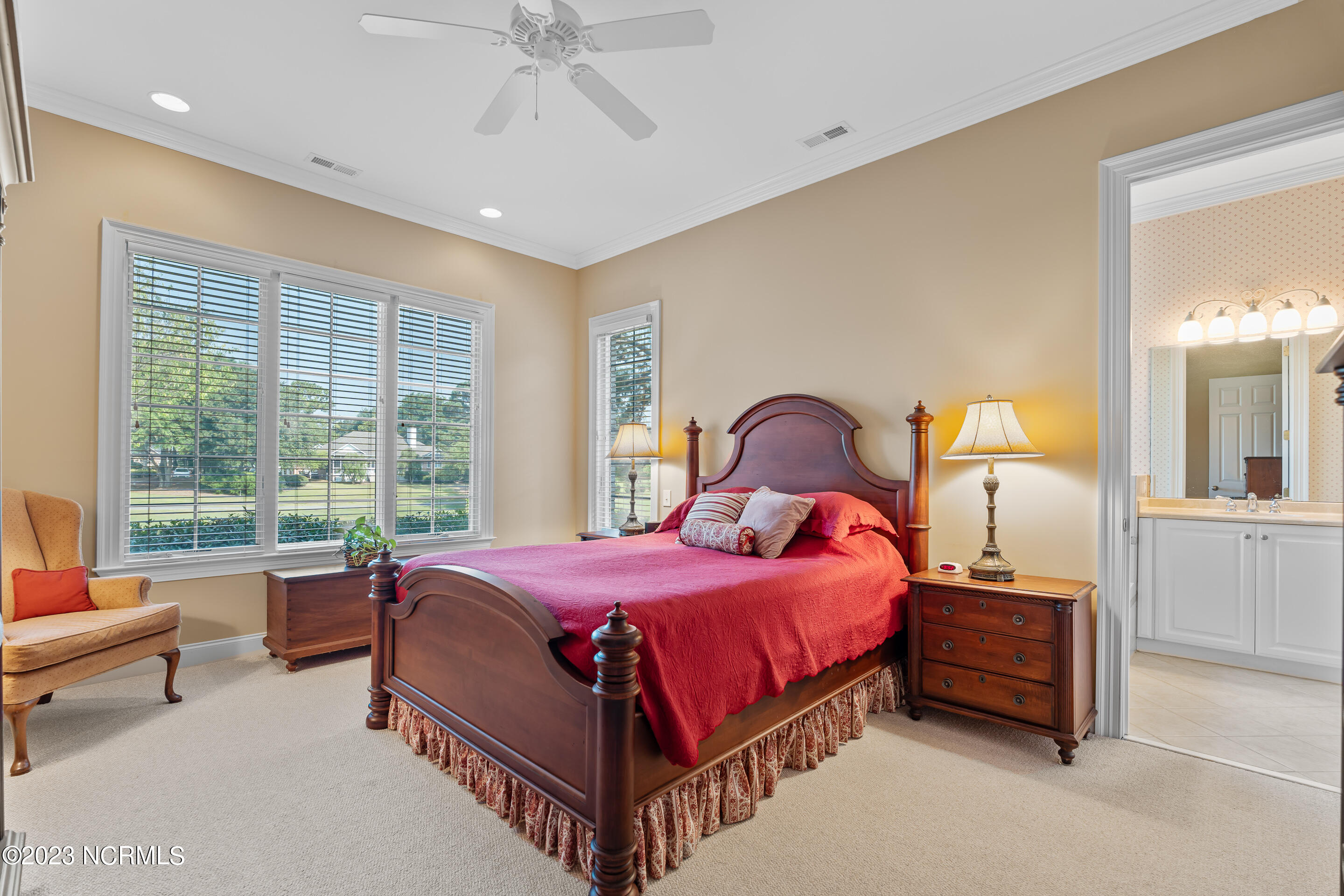 Welcome to this elegant brick home situated on an elevated lot overlooking the 17th hole in the sought-after gated community of Porters Neck Plantation. This three-bed/three-bath home has a welcoming foyer that leads into the sun-filled living room complete with a fireplace and built-in bookshelves. The spacious kitchen opens to the breakfast nook and additional seating area overlooking the 17th hole. Step out into the private and spacious sunroom to relax at the end of a long day and enjoy the serene golf course views after dusk. Enjoy primarily one-level living with three of the four bedrooms on the main level. The master suite boasts golf course views, a large walk-in closet, tub and walk-in shower. Enjoy the privacy of the oversized bonus room perfect for an office or media room. Plenty of storage is available with the walk-in attic spaces. The roof was replaced in 2019 and a termite bond in place. Brand new HVAC, central vacuum and shared well for irrigation. Enjoy the added privacy from the front porch with no house directly across the street on the unbuildable lot. Just a short walk to the Intracoastal Waterway where you can kayak, picnic, or boat. Membership to Porters Neck Country Club is available for separate purchase. Amenities include golf, fitness, dining, pool, tennis, and Pickleball.