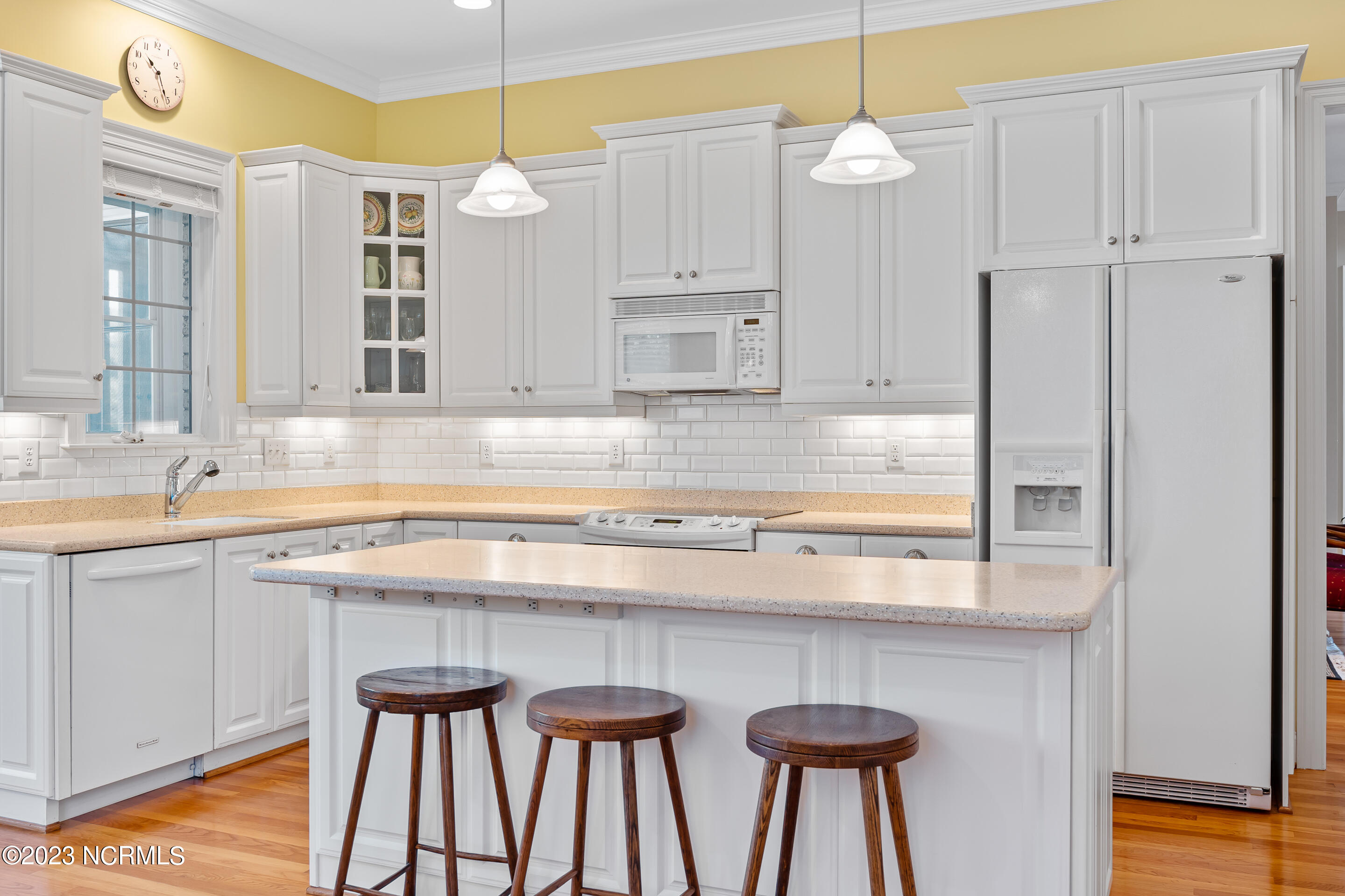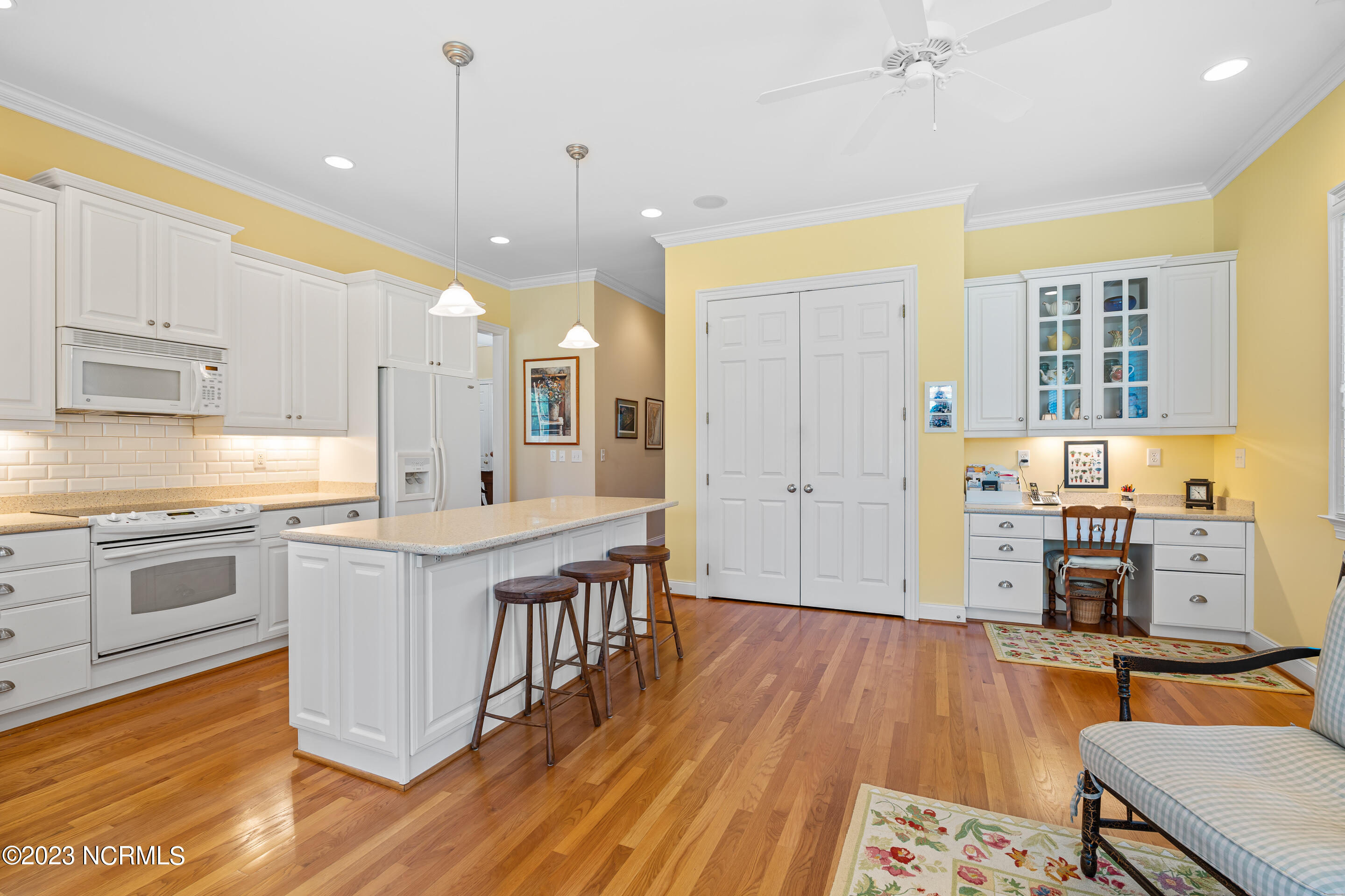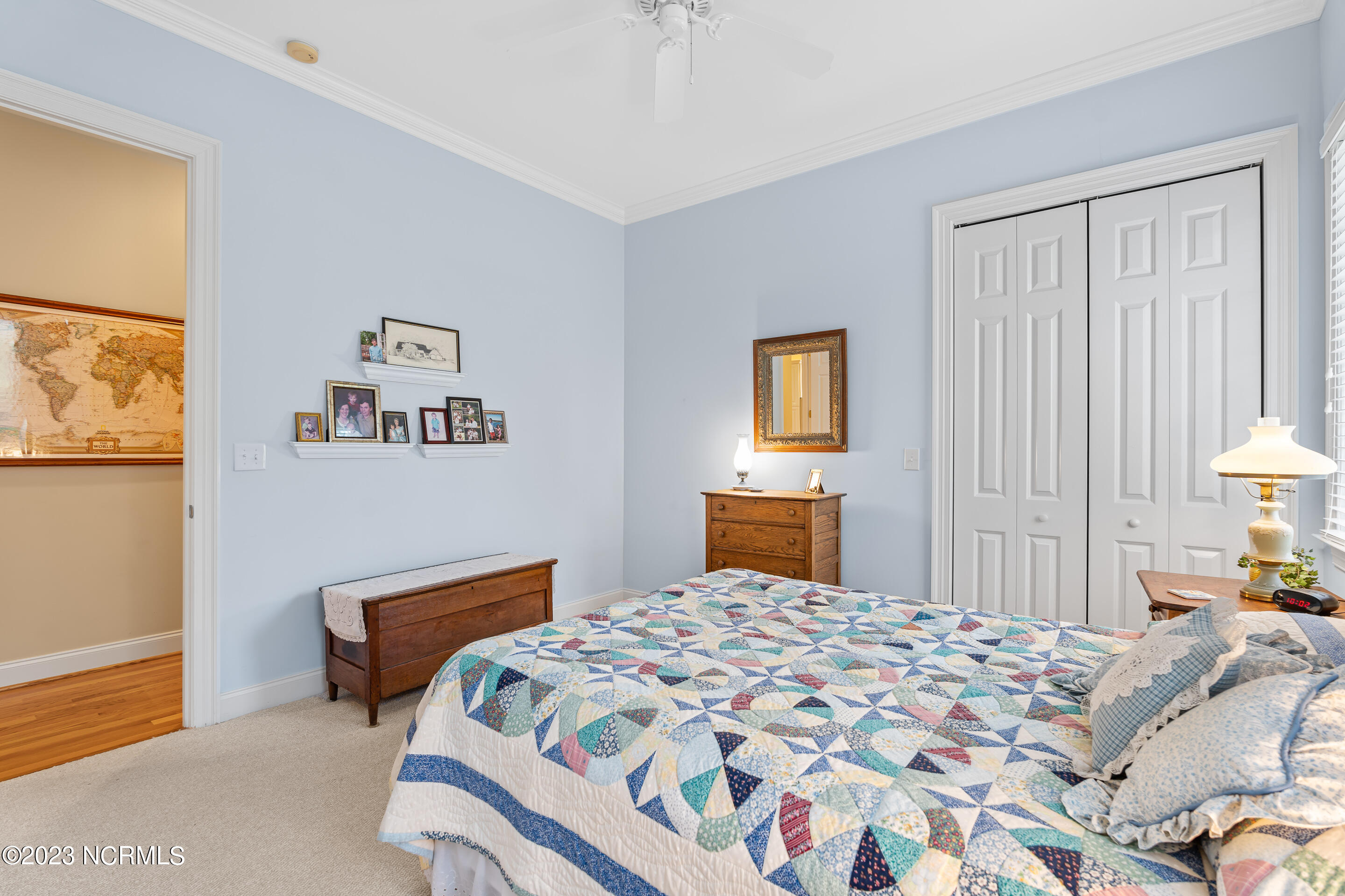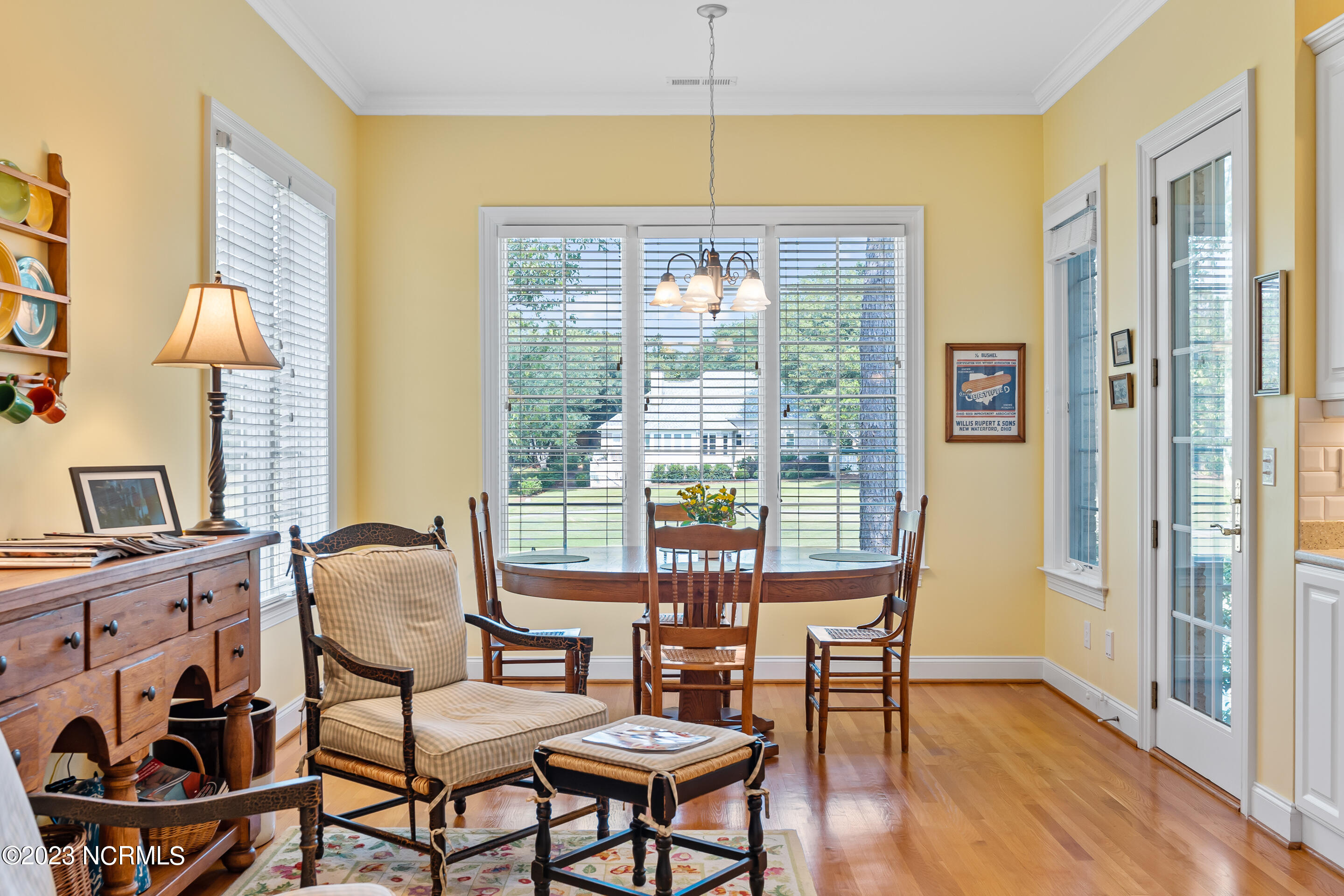 Welcome to this elegant brick home situated on an elevated lot overlooking the 17th hole in the sought-after gated community of Porters Neck Plantation. This three-bed/three-bath home has a welcoming foyer that leads into the sun-filled living room complete with a fireplace and built-in bookshelves. The spacious kitchen opens to the breakfast nook and additional seating area overlooking the 17th hole. Step out into the private and spacious sunroom to relax at the end of a long day and enjoy the serene golf course views after dusk. Enjoy primarily one-level living with three of the four bedrooms on the main level. The master suite boasts golf course views, a large walk-in closet, tub and walk-in shower. Enjoy the privacy of the oversized bonus room perfect for an office or media room. Plenty of storage is available with the walk-in attic spaces. The roof was replaced in 2019 and a termite bond in place. Brand new HVAC, central vacuum and shared well for irrigation. Enjoy the added privacy from the front porch with no house directly across the street on the unbuildable lot. Just a short walk to the Intracoastal Waterway where you can kayak, picnic, or boat. Membership to Porters Neck Country Club is available for separate purchase. Amenities include golf, fitness, dining, pool, tennis, and Pickleball.